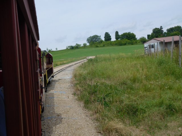 Fazit: Nach knapp 20 Minuten waren wir wieder angekommen. Mir hat die Fahrt ziemlich gut gefallen. Man bekommt einen schönen Einblick in das ländliche Gebiet in der Nähe des Parks. Es war schön idyllisch und ruhig und so war das eine schön entspannende Fahrt, bei der man auch hin und wieder etwas Überraschendes zu Gesicht bekommt. Nicht die Beste, aber auf jeden Fall eine der schönsten Parkeisenbahn-Fahrten der Tour. Wer in diesen Park kommt, sollte sie wirklich auf keinen Fall auslassen!
