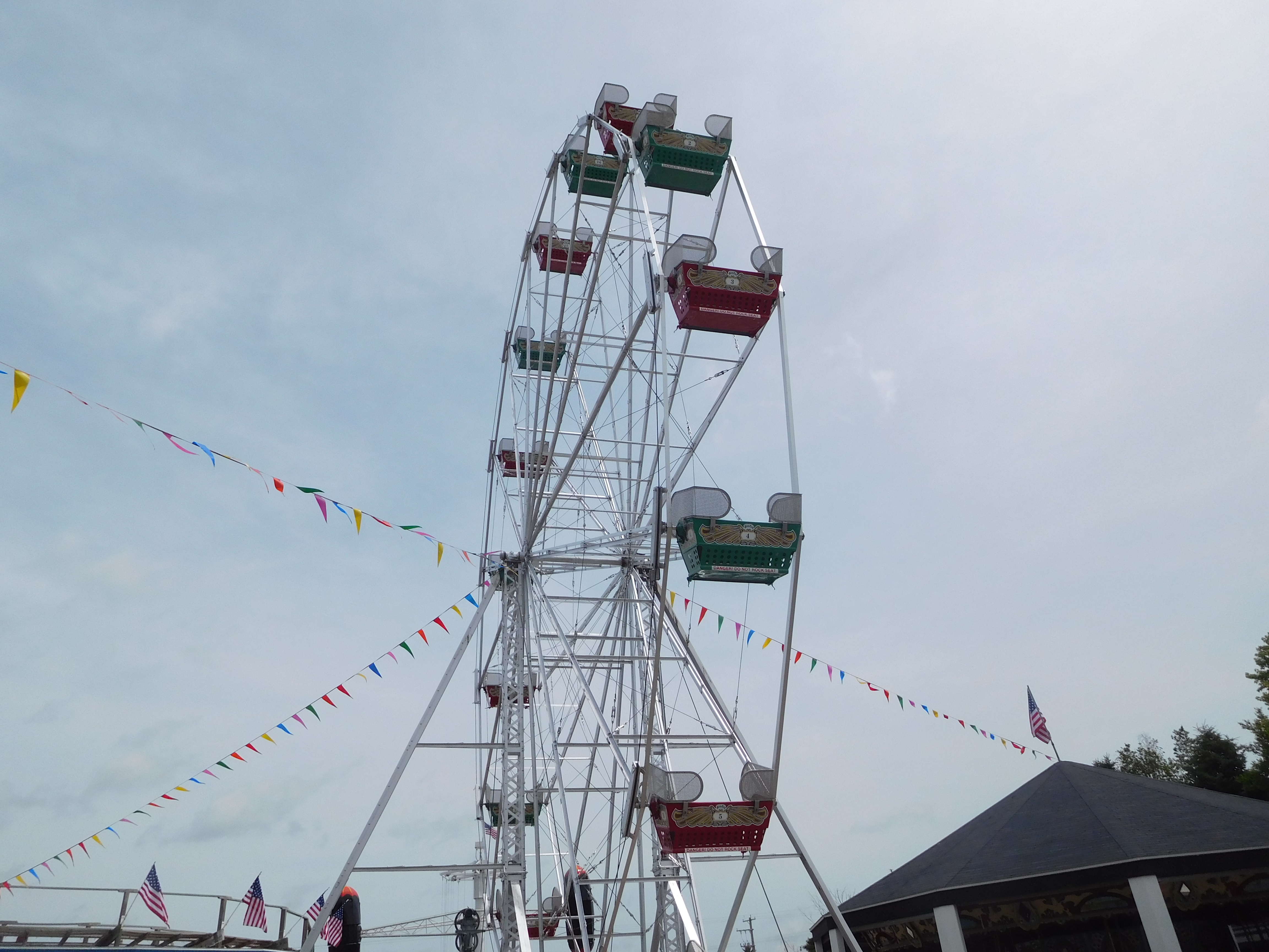 Leider ist der Name auf der Parkhomepage nicht herauszufinden. Warum High Thrill? Die erste interessante Auffälligkeit war, dass der Ride Op das Riesenrad per Handbremse zum Stillstand brachte.