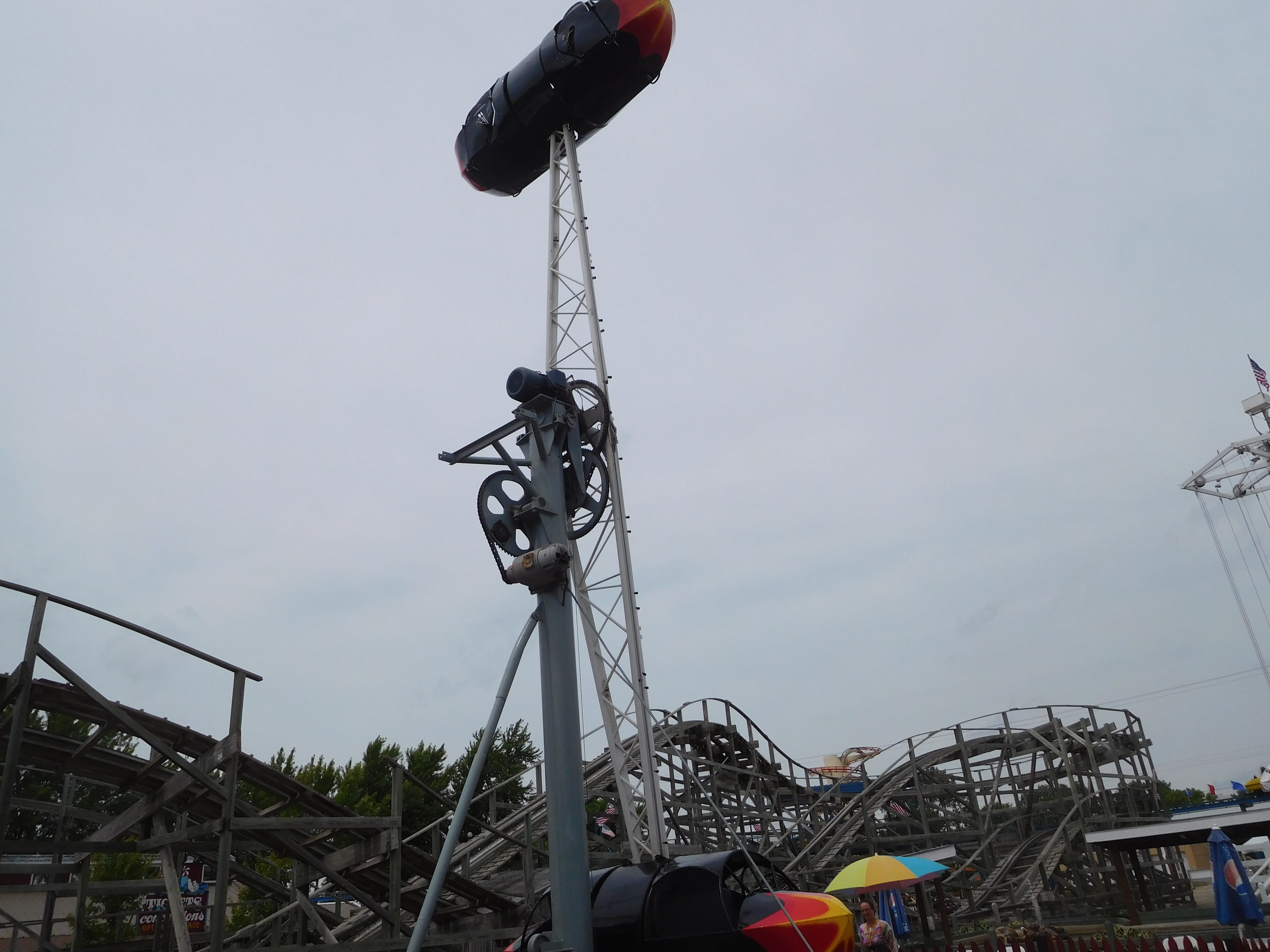 Dass ich erst noch zwei Wiederholungsfahrten absolvierte, lag auch daran, dass ich vor der nächsten Anlage etwas Respekt hatte. Doch wie auch schon bei Mad Mouse wurde mir versichert, dass es nicht so schlimm ist, wie es aussieht. Daher begab ich mich nun doch dorthin.