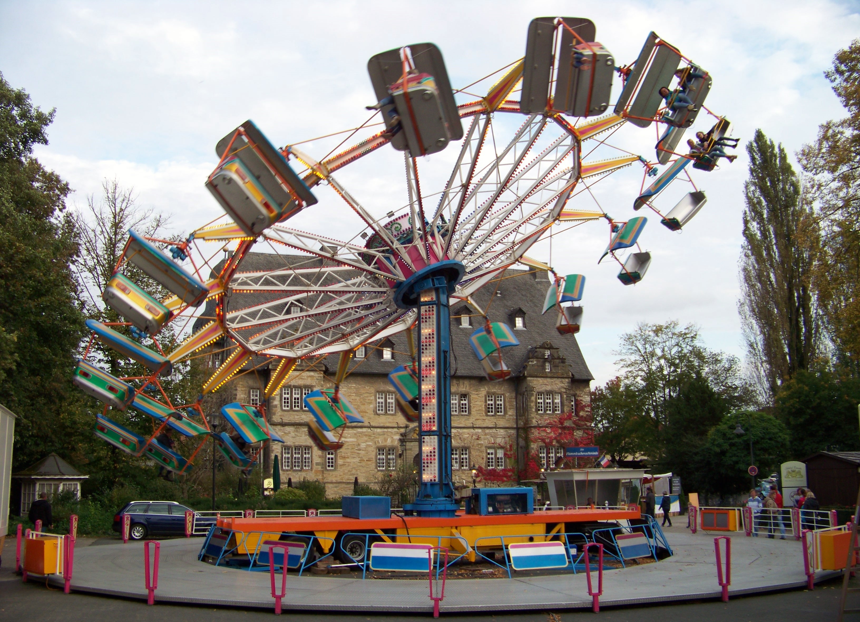 An der Hauptzufahrt zum Schlossgelände hat – wie jedes Jahr – der Break Dancer von Schneider seinen Stammplatz bezogen.
