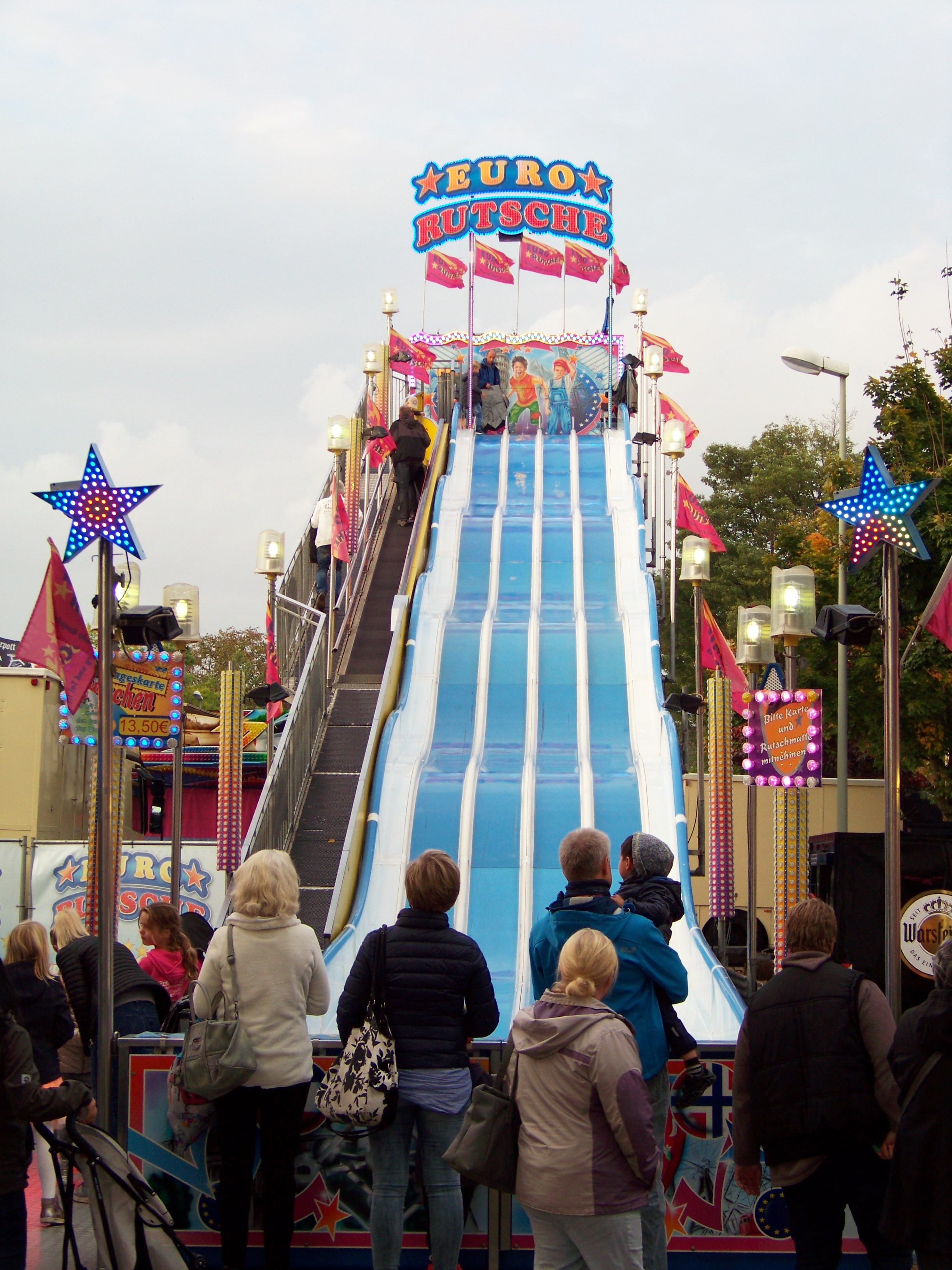 Entfernt man sich vom Schloss, kommt man in Richtung des Hauptplatzes an der Festhalle und der Euro-Rutsche von Kutschenbauer vorbei.