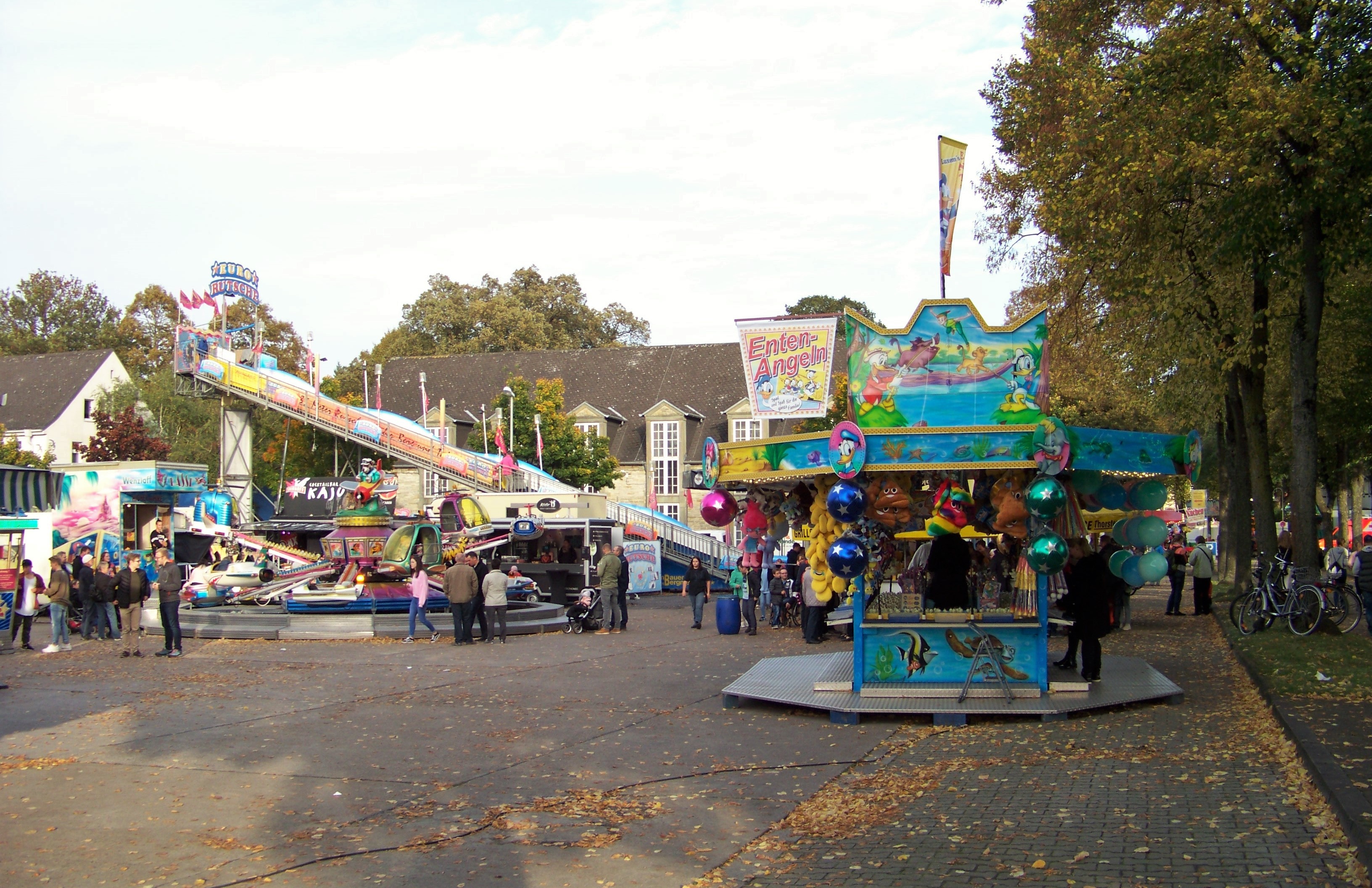 Den Rundgang beginne ich auf dem Vorplatz des Erwitter Schlosses (steht übrigens aktuell zum Verkauf als echtes Schnäppchen für 1,8 Mio. €). Den Fahrgeschäftsplatz nimmt hier der Scirocco von Wenzlaff ein und wurde gestern am Familientag ganz gut angenommen.