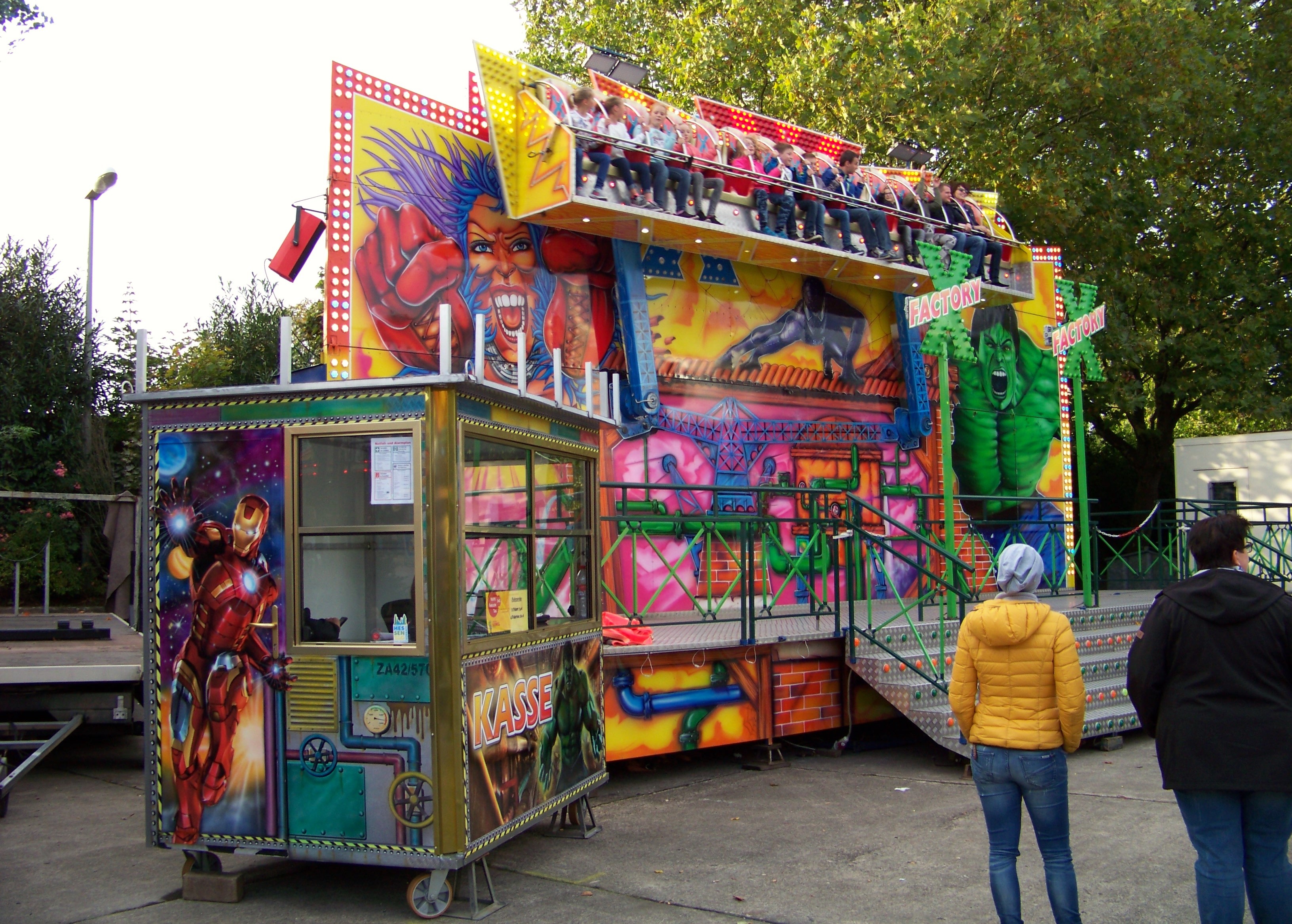 Geht man vom Break Dance aus tiefer auf den Hauptplatz, stehen das Laufgeschäft „Geisterhaus“ von Mikli und der kleine Scheibenwischer X-Factory von Hölzer auf Reihe.