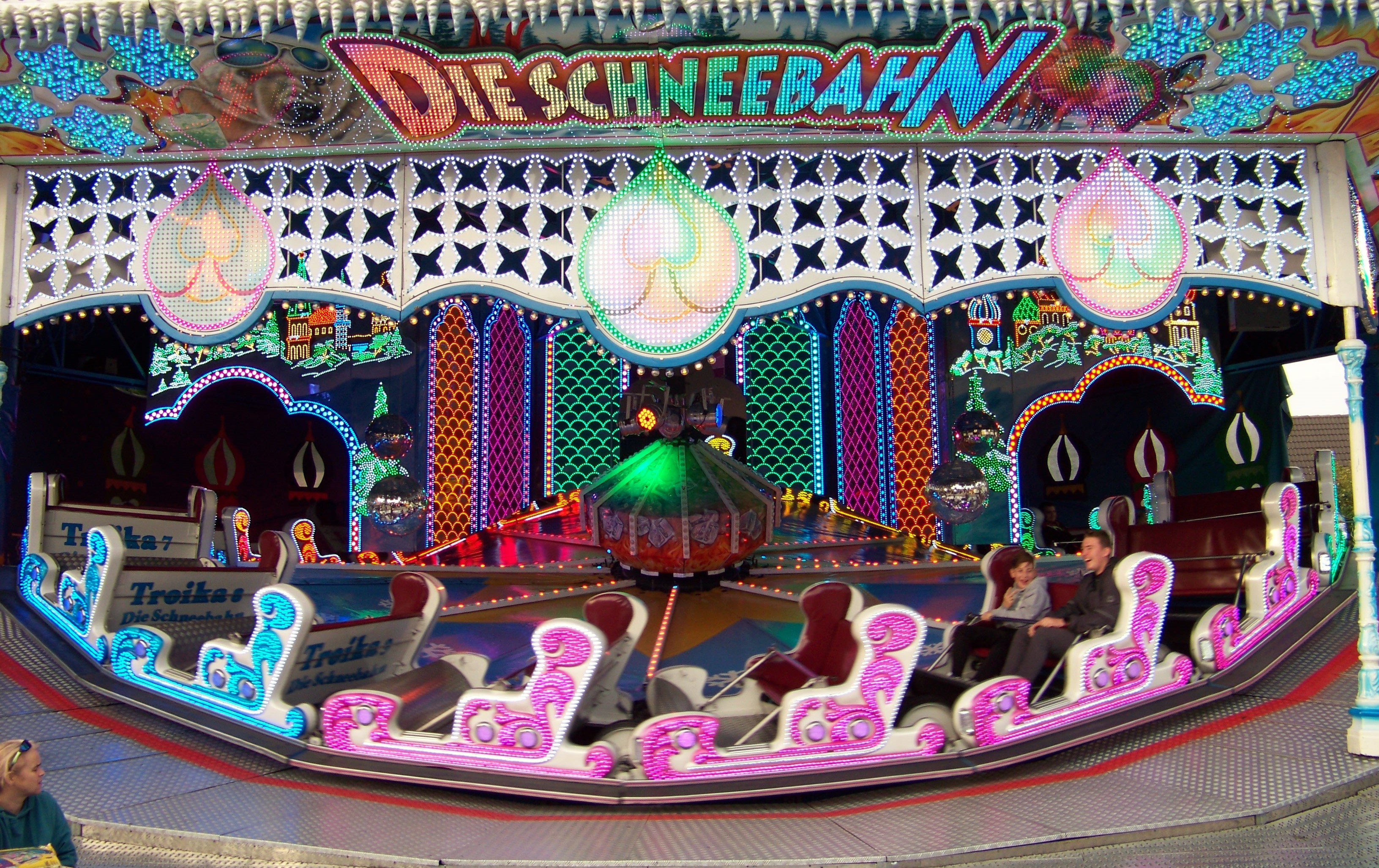 In der Reihe gegenüber findet man den Autoscooter von Müller und vor Kopf am Platzende die Troika von Ahrend, der ich bei dem tollen Betreiben etwas mehr Fahrgäste gegönnt hätte.