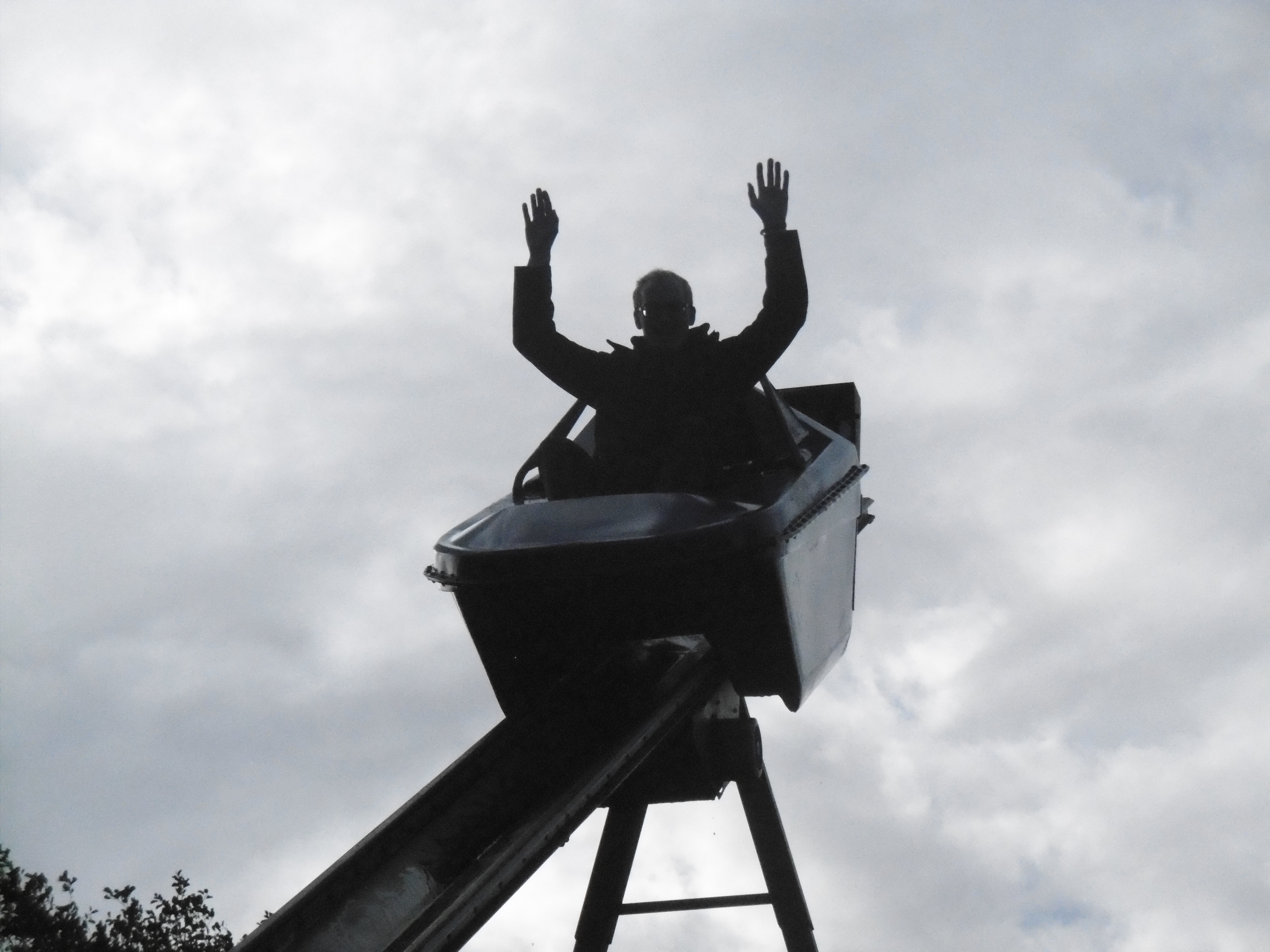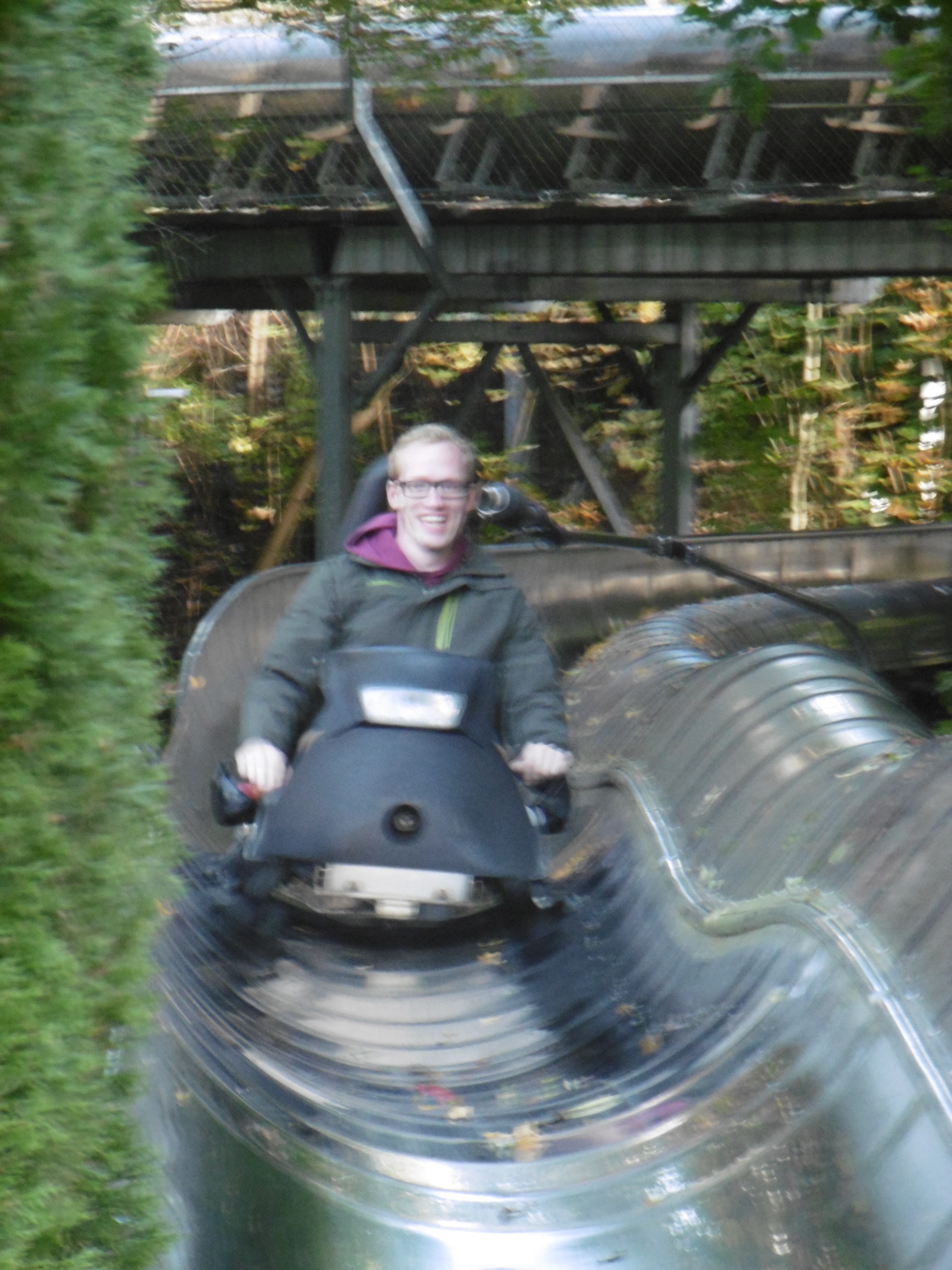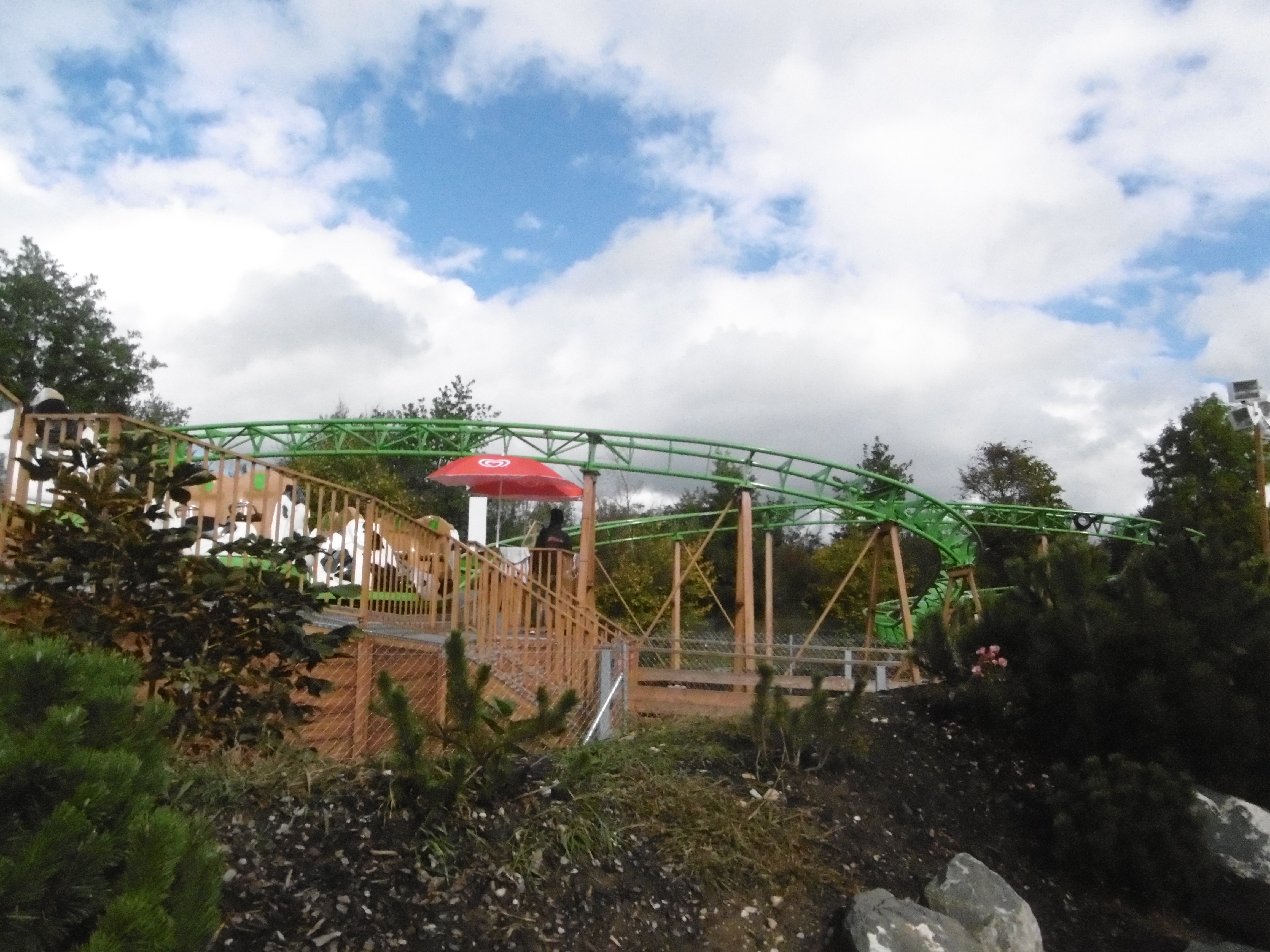 Komet wurde aber leider nicht bis zu einem Winkel beschleunigt, bei dem das Aufstehen von selbst abläuft, wie es bspw. in der Bärenhöhle der Fall gewesen war. Anschließend wartete auch die letzte „Achterbahn“ des Parks auf uns. Da Jonas bislang noch keinen