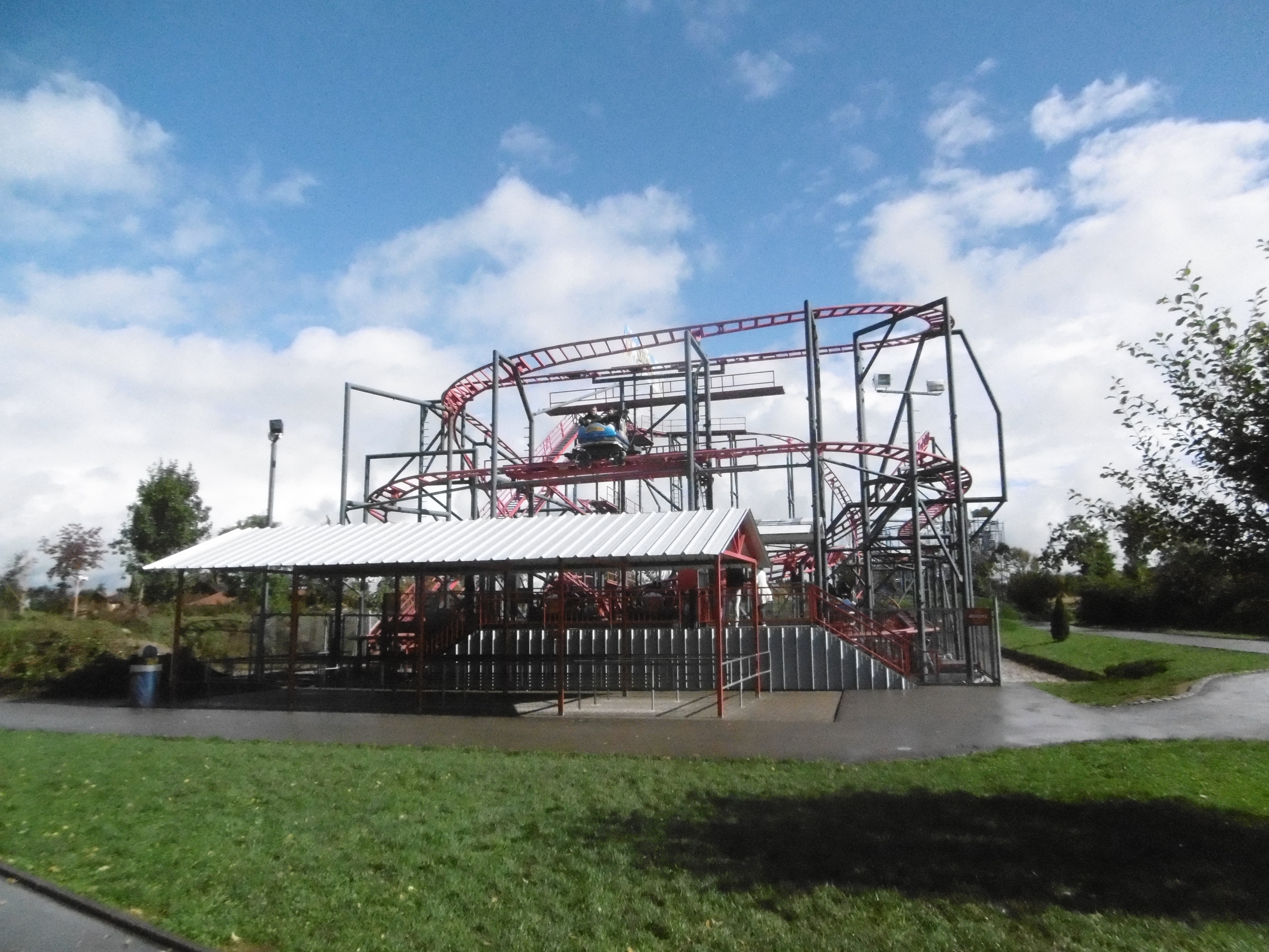 Mein dritter (wenn ich das Ding im Energylandia gefahren wäre, sogar mein vierter) 3 Looper von SBF. Aufgrund der Leere konnte ich so zum ersten Mal eine Fahrt mit 2:0 Beladung erleben. So macht die Fahrt sogar richtig viel Spaß, da der Wagen doch einigermaßen zum Drehen kommt und ich mit dieser zusätzlichen Energie in den „Abfahrten“ auch mal gerne in den Bügel gedrückt wurde.