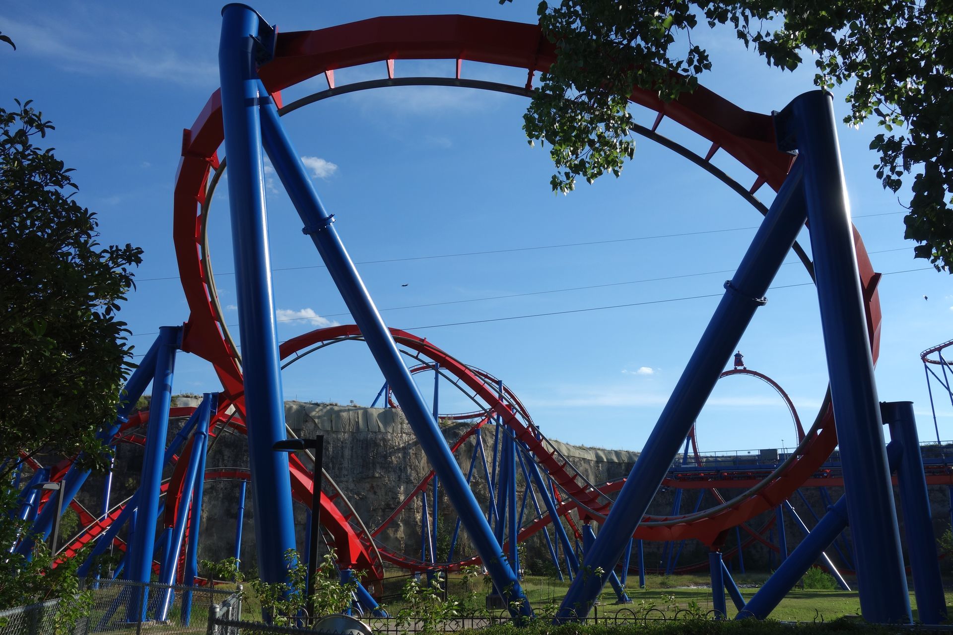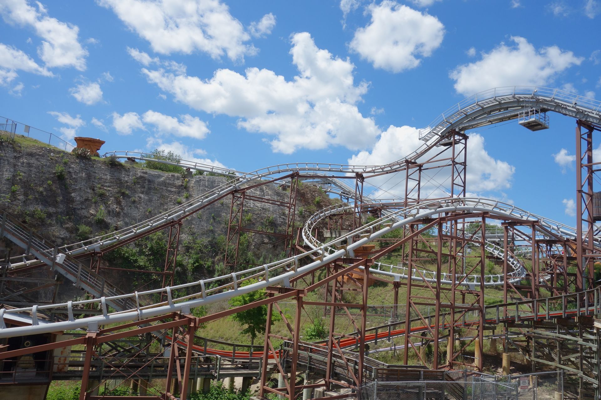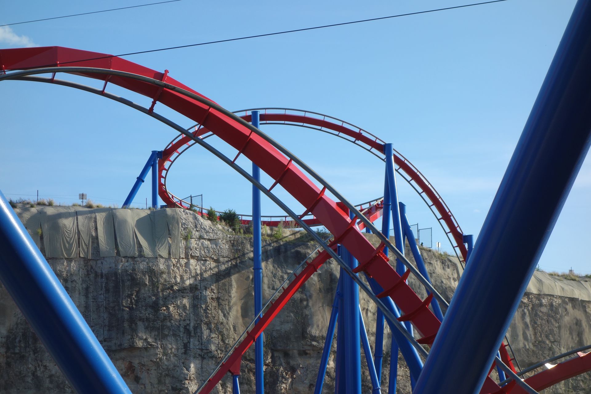 Und ganz hinten, kurz vor der Felswand, steht auch noch eine Achterbahn. Die war nur gerade geschlossen.