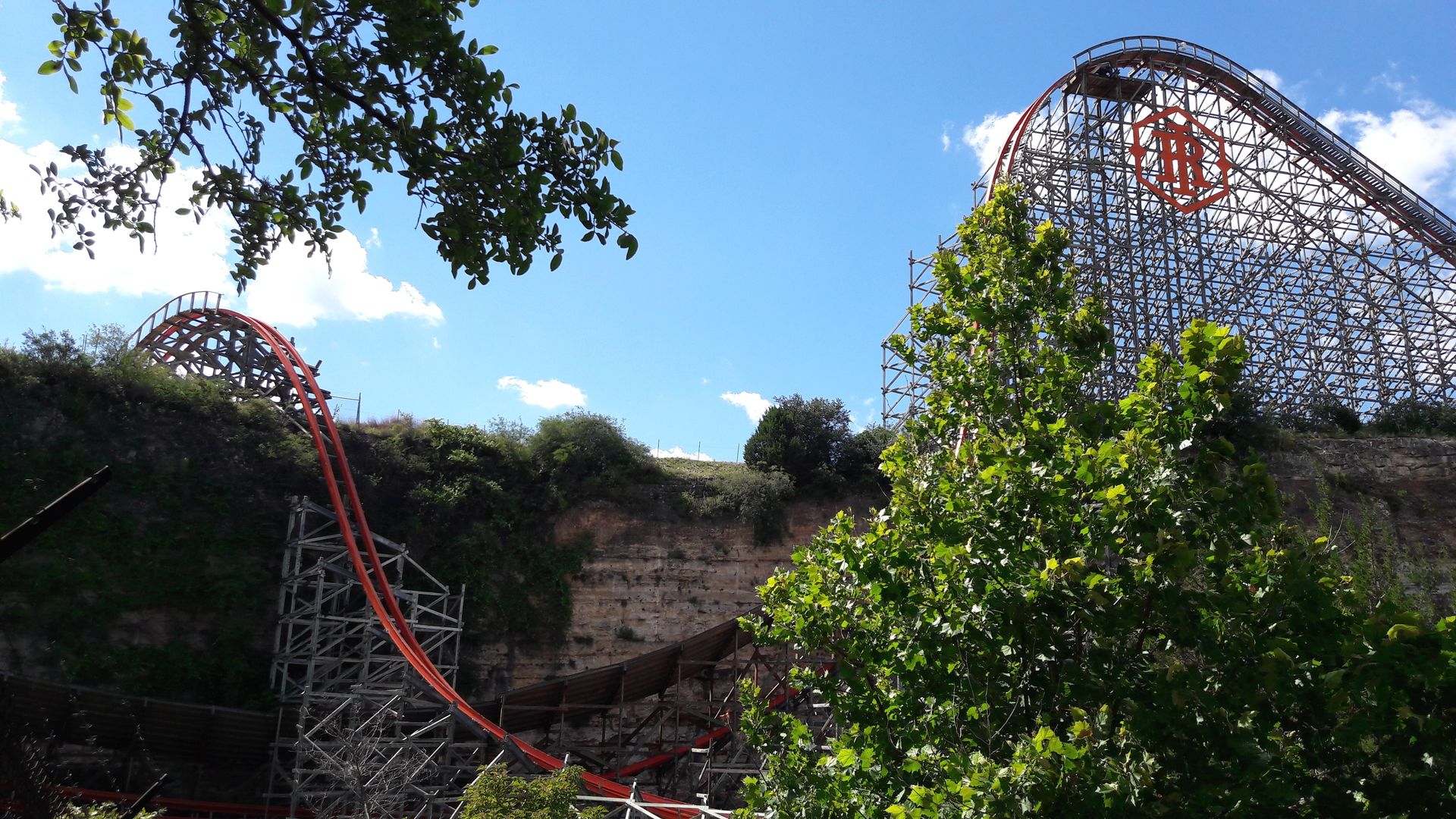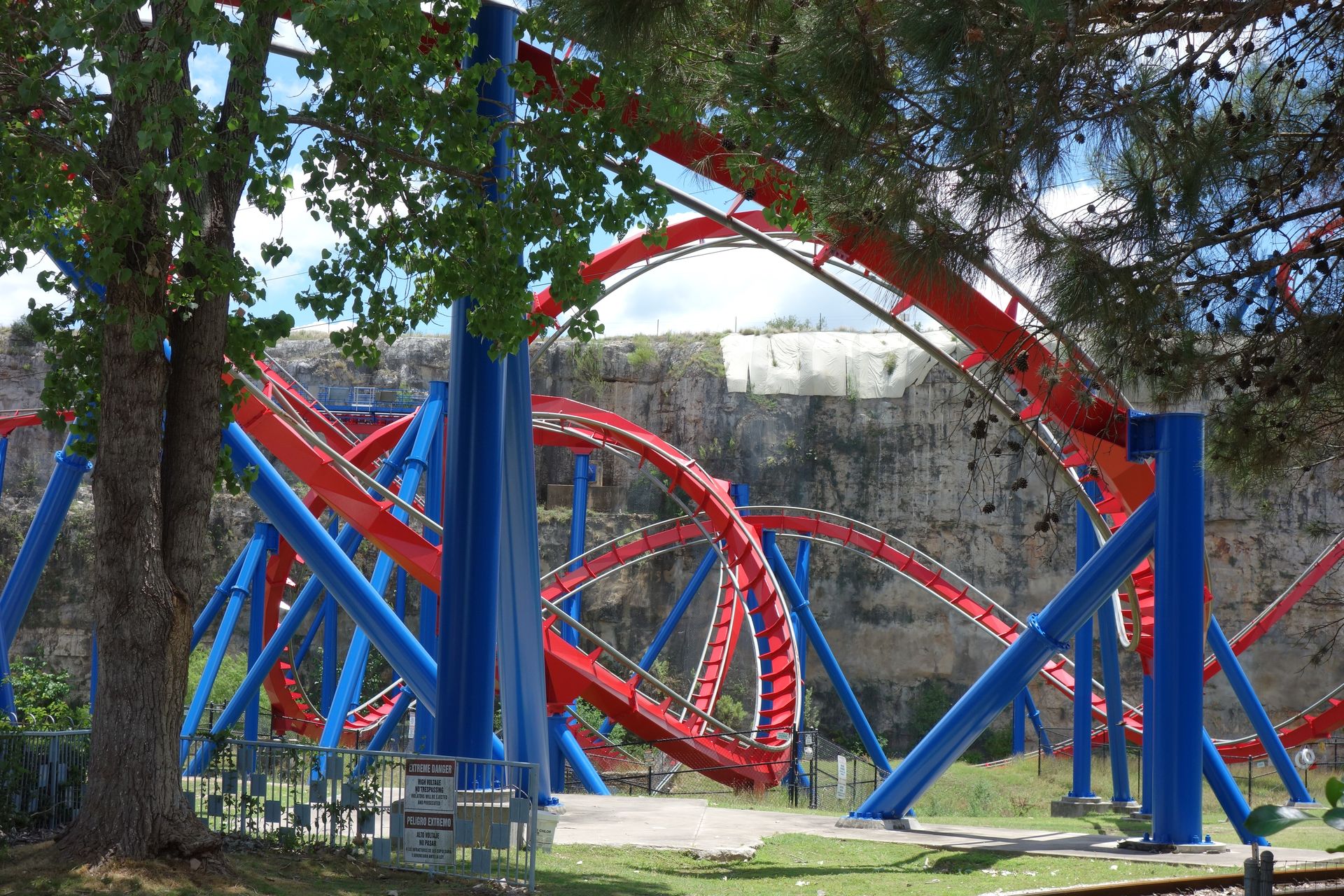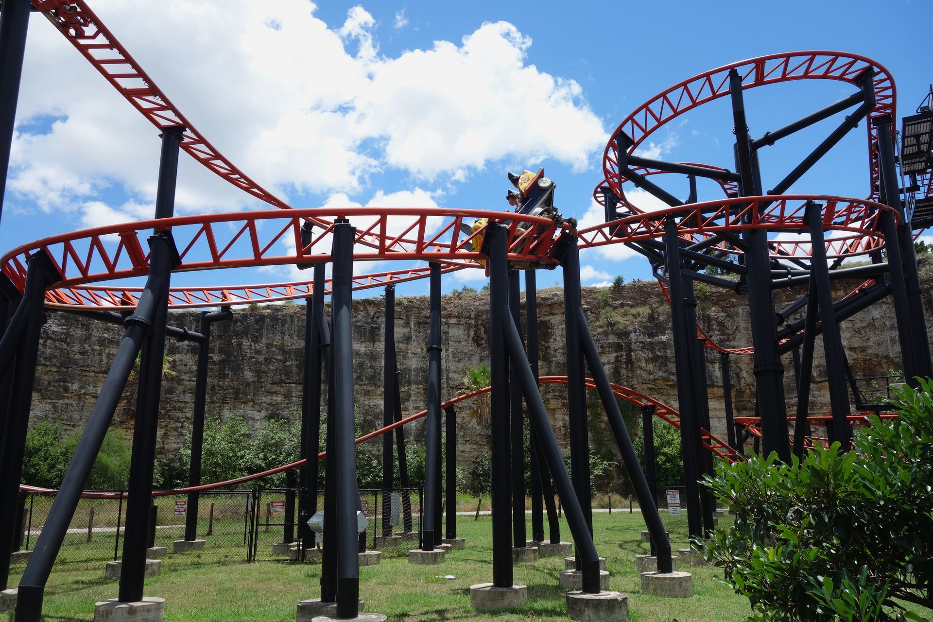 Und ganz hinten, kurz vor der Felswand, steht auch noch eine Achterbahn. Die war nur gerade geschlossen.