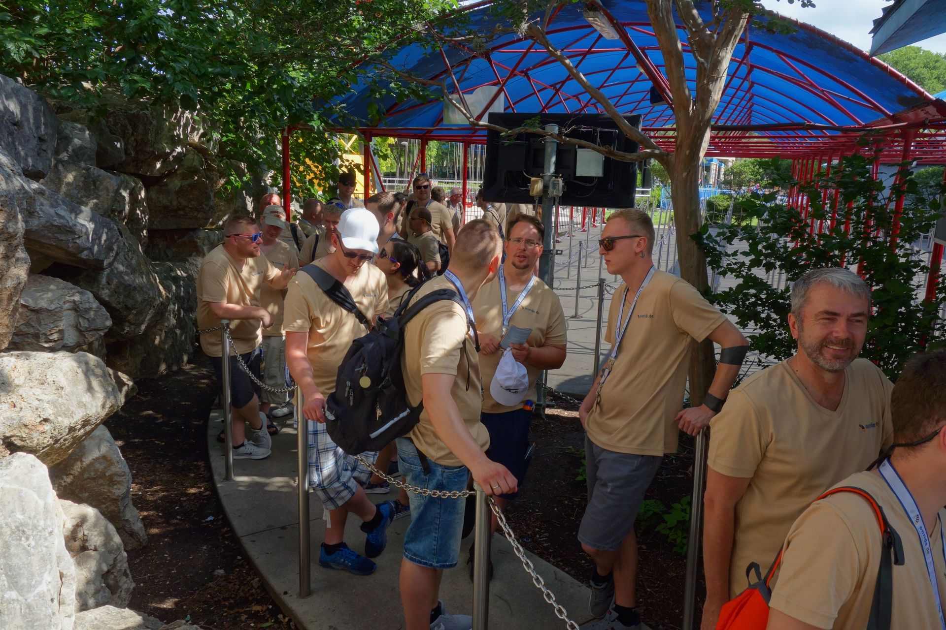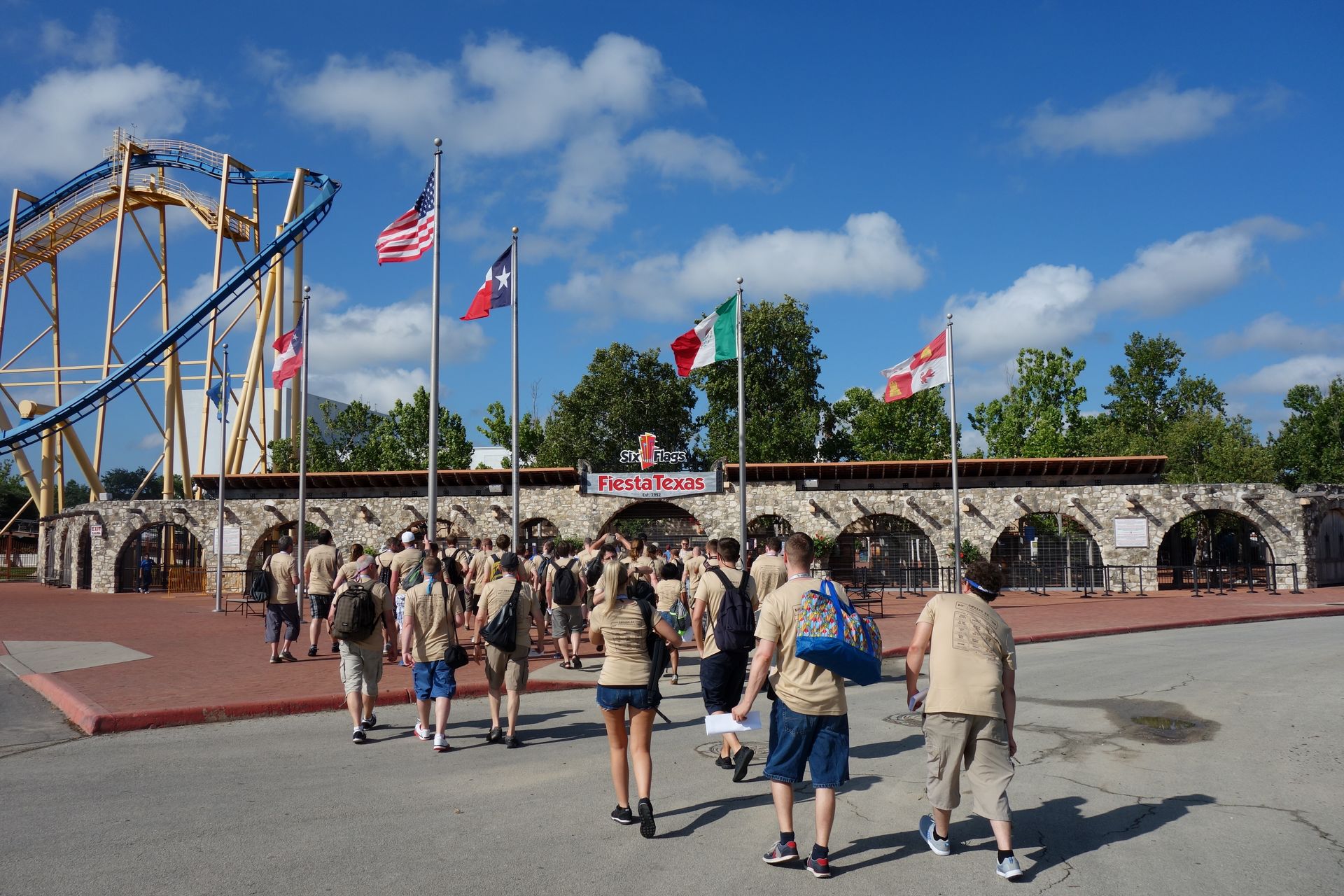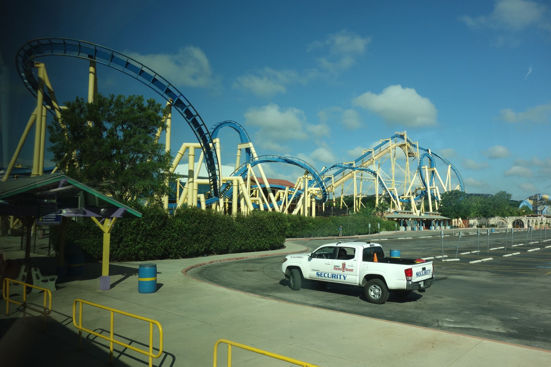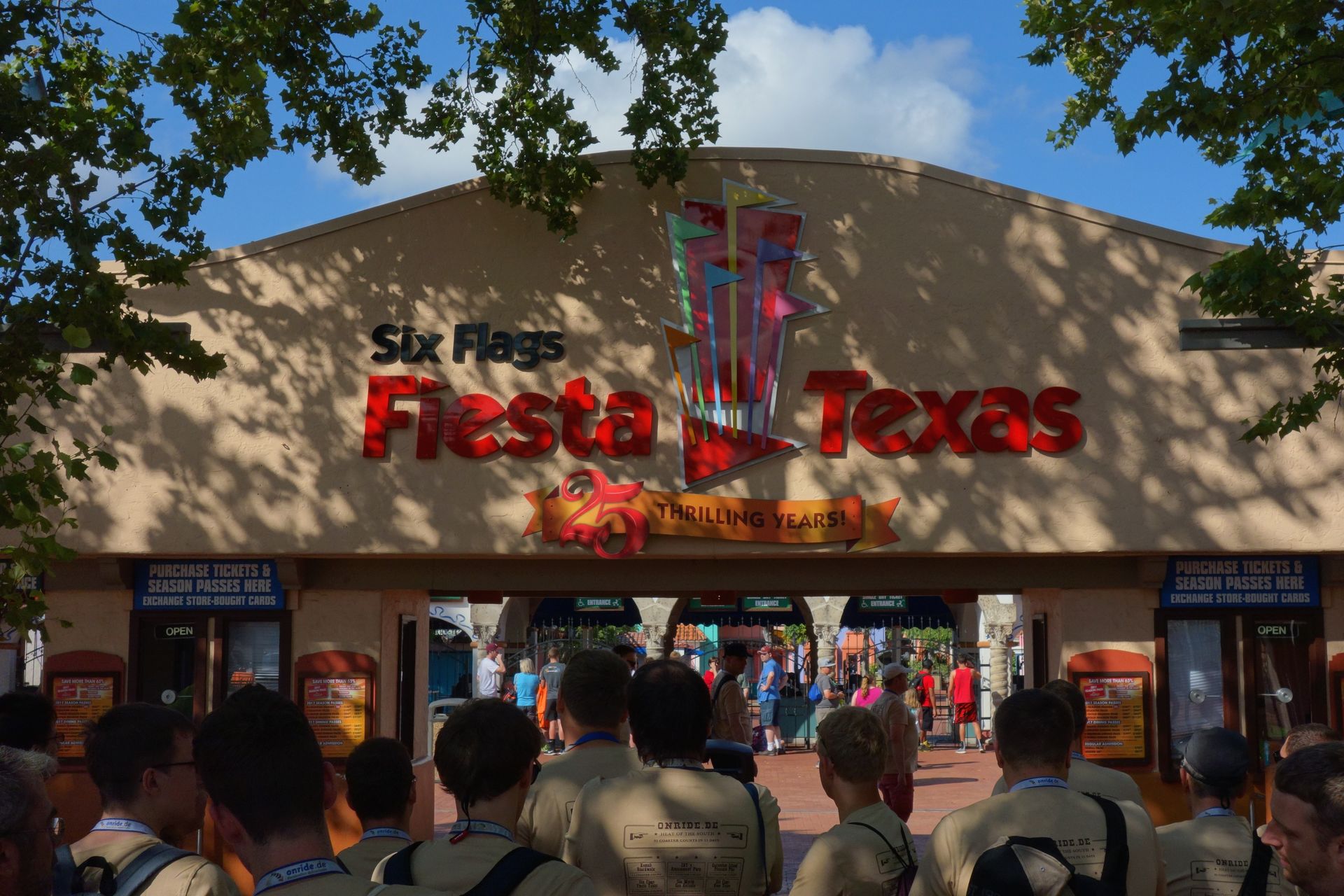 Nachdem die ersten drei Tourtage mit eher kleineren Parks und dem Wasserpark Schlitterbahn recht entspannt verliefen, sollte es am vierten Tag einer Coastertour in den USA deutlich würdiger werden. Mit Fiesta Texas stand nämlich der erste von vier Parks der Six-Flags-Gruppe auf dem Programm und damit auch der erste wirklich große Park der Tour. Außerdem war uns ein erstklassiges Programm versprochen worden, sodass dieser Tag zum T-Shirt-Day auserkoren worden war.