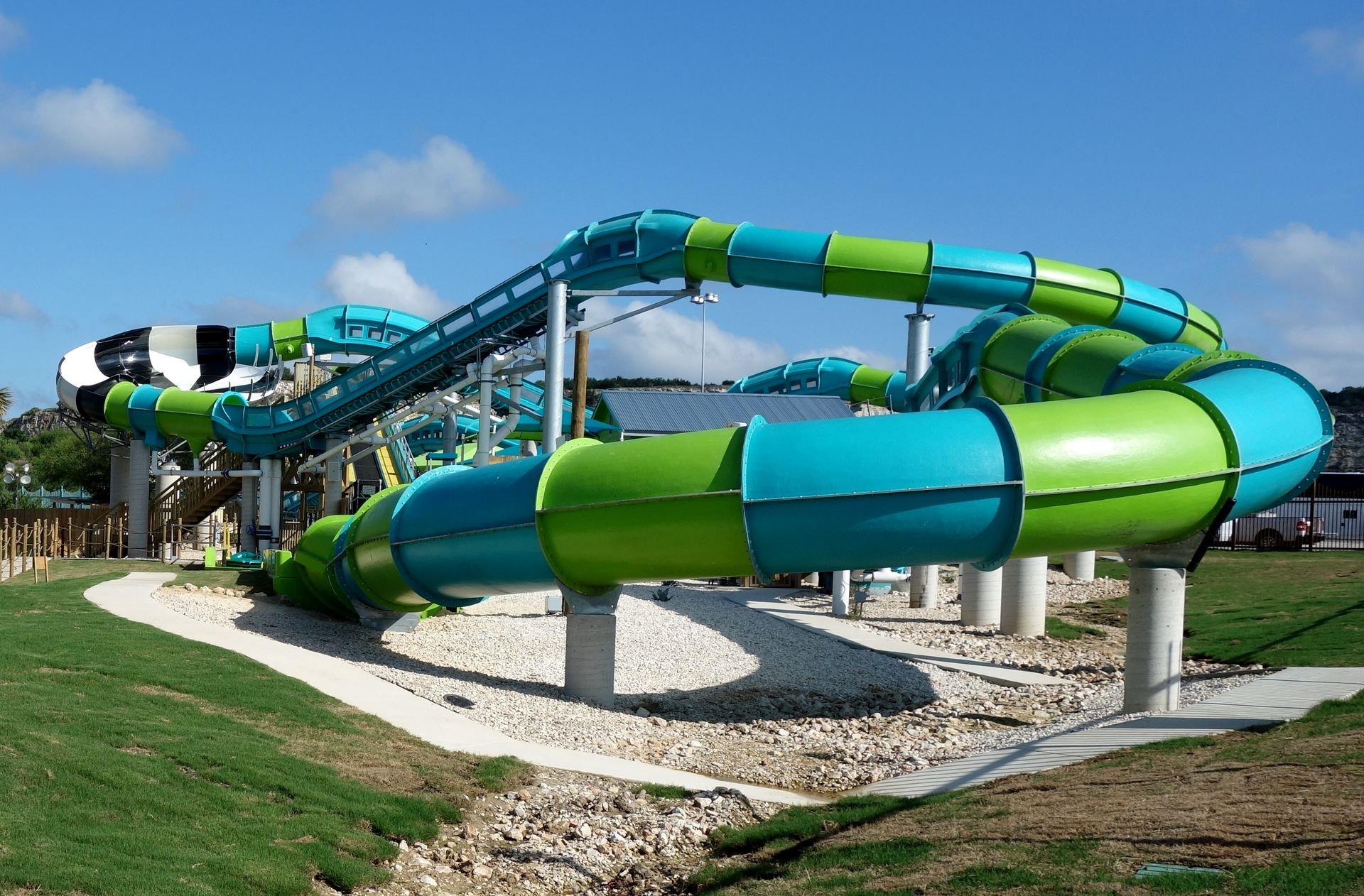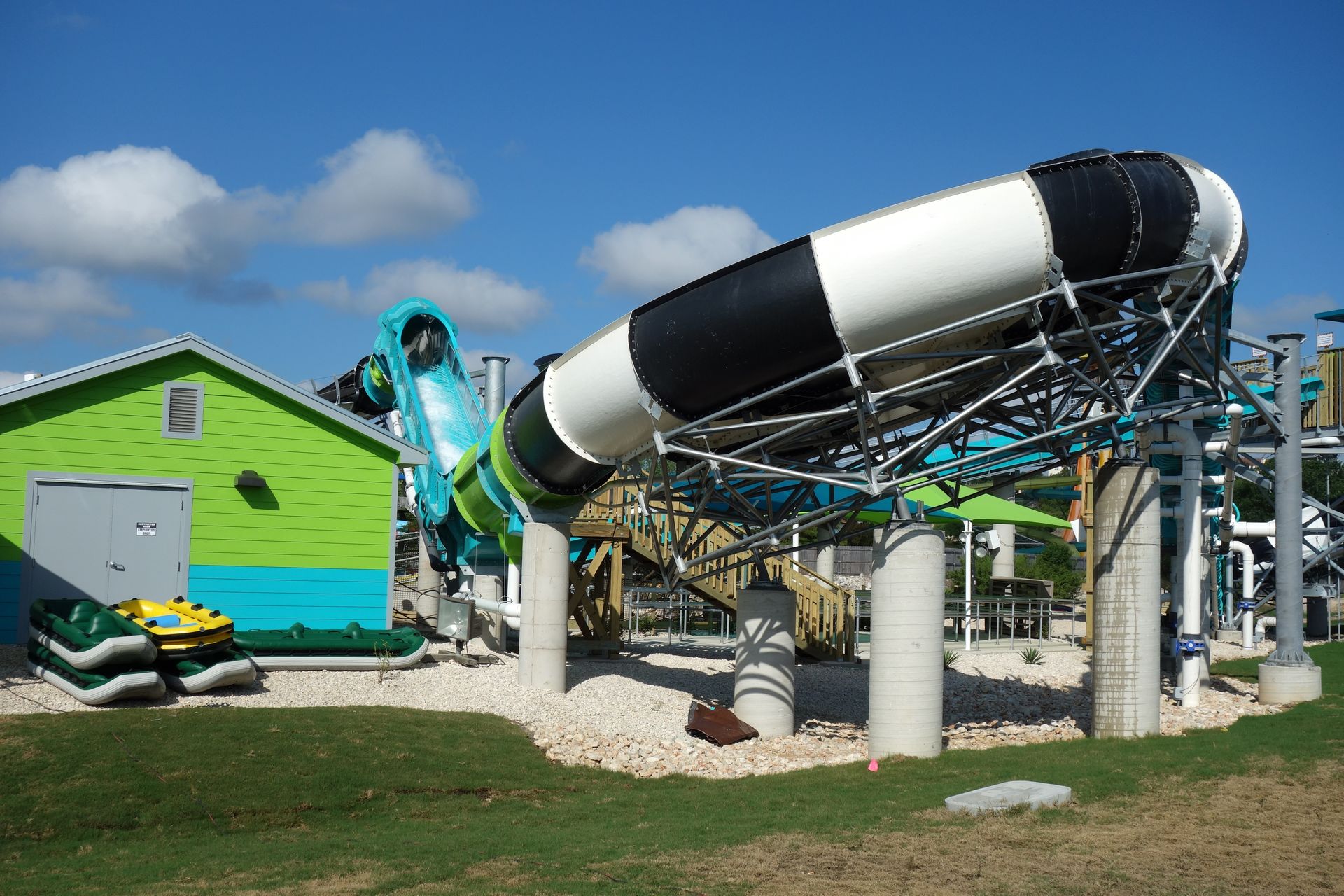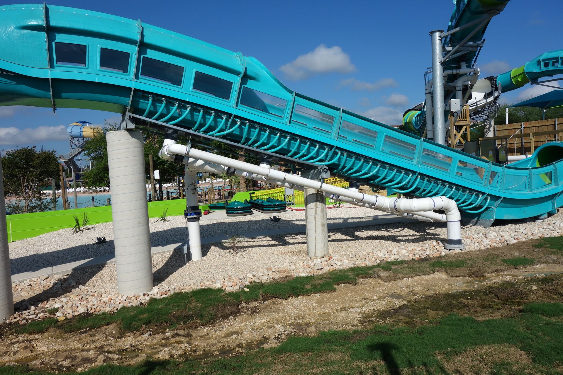 Ein Water Coaster von Proslide mit angeblich neu entwickelten Wasserstrahl-Antrieben.