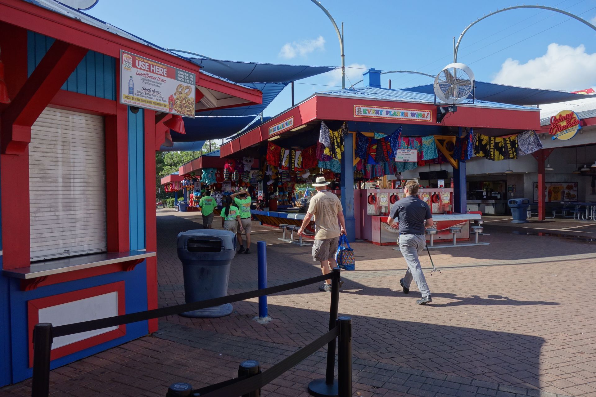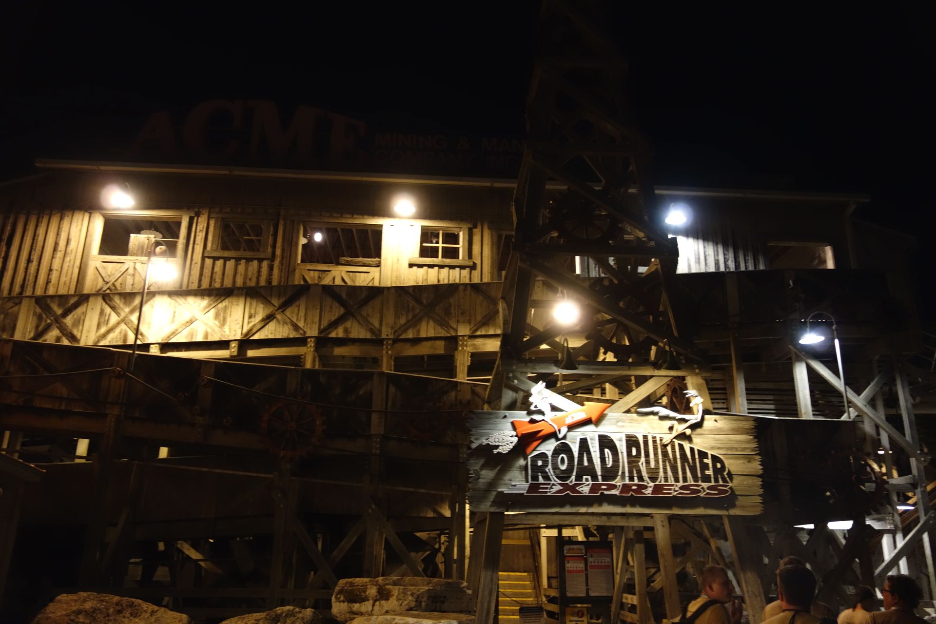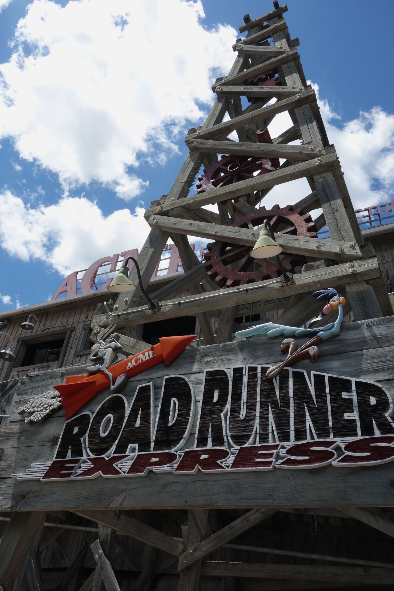 Stattdessen besorgte ich mir an einem Stand wieder so einen Becher, den man die gesamte Saison in allen Parks der Gruppe kostenlos auffüllen lassen kann. Dann stellte ich mich beim Road Runner Express an. Allerdings dauerte es dort doch etwas länger als erhofft und ich musste mich nach einigen Minuten doch wieder durch die Wartenden zurück kämpfen. Denn die beiden Zeiger der Uhr näherten sich langsam der 12, das Mittagessen wartete also gleich auf uns. Zeit verschenkt, aber das sollte nach den bisherigen Erfahrungen des Tages nicht weiter tragisch sein. Die Wartezeiten hielten sich schließlich in Grenzen.