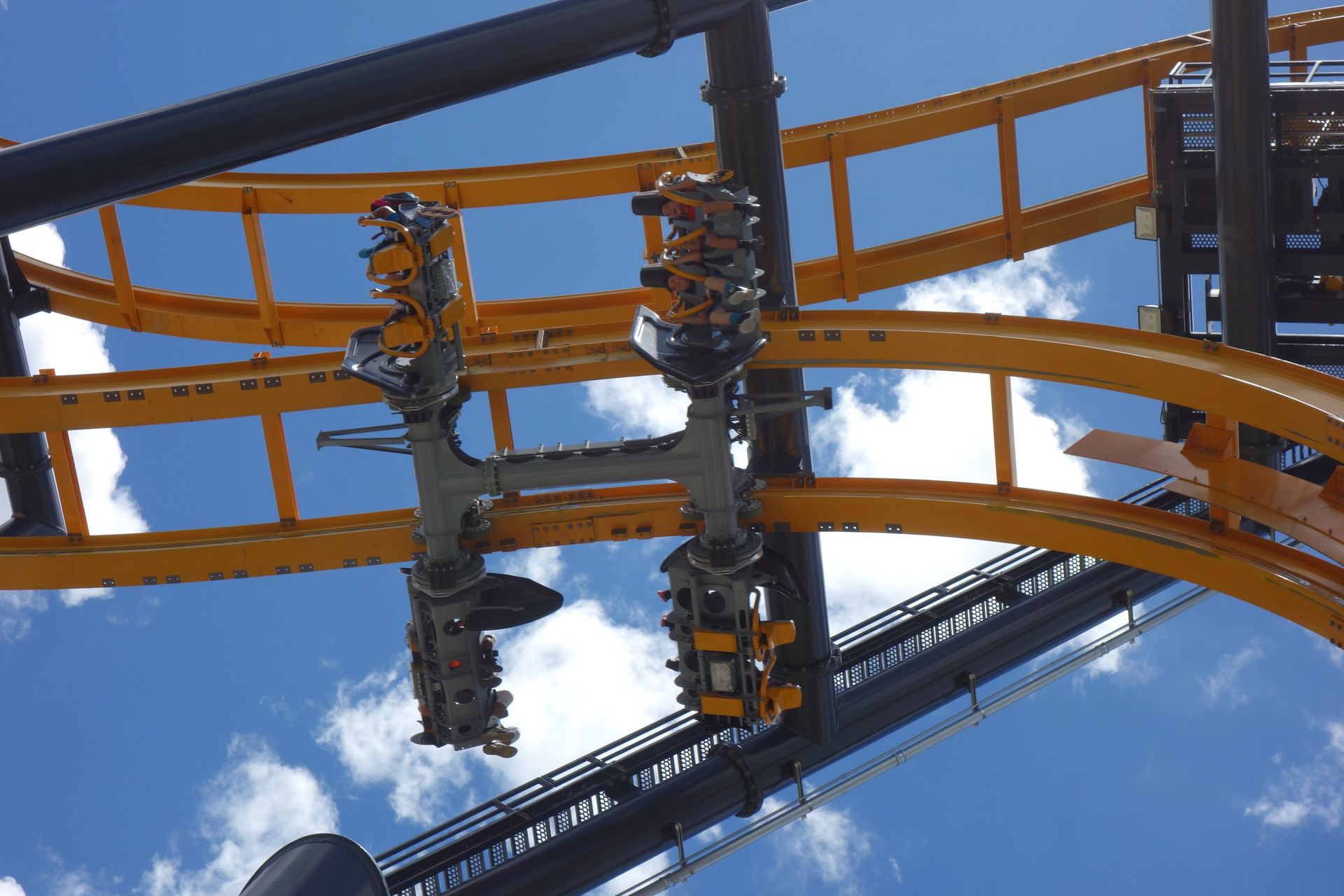 Helix wieder über die Klippe hinausfährt und quasi urplötzlich den Boden unter den Schienen verliert. Entsprechend geht es wieder in die Tiefe, ehe sich der Zug in eine Zero-
