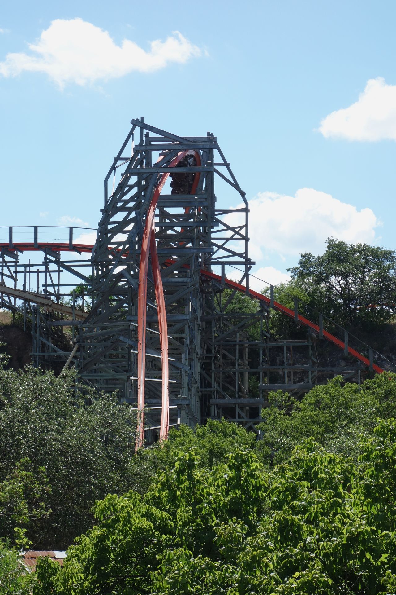 First Drop allerdings von 51 auf nur noch 38 Meter verkürzt. Auch die berühmte Wackel-Auffahrt in die 900°-