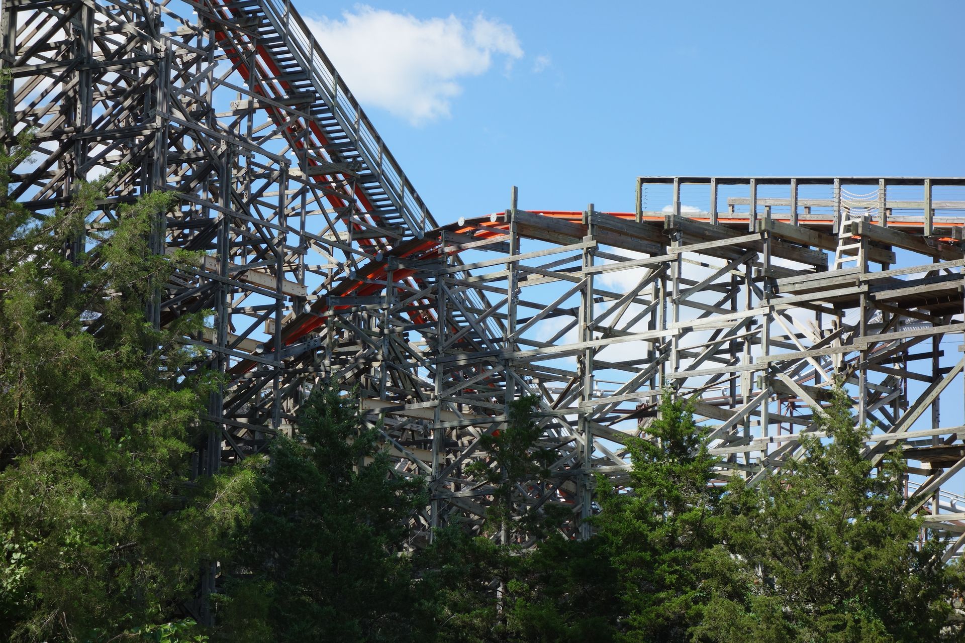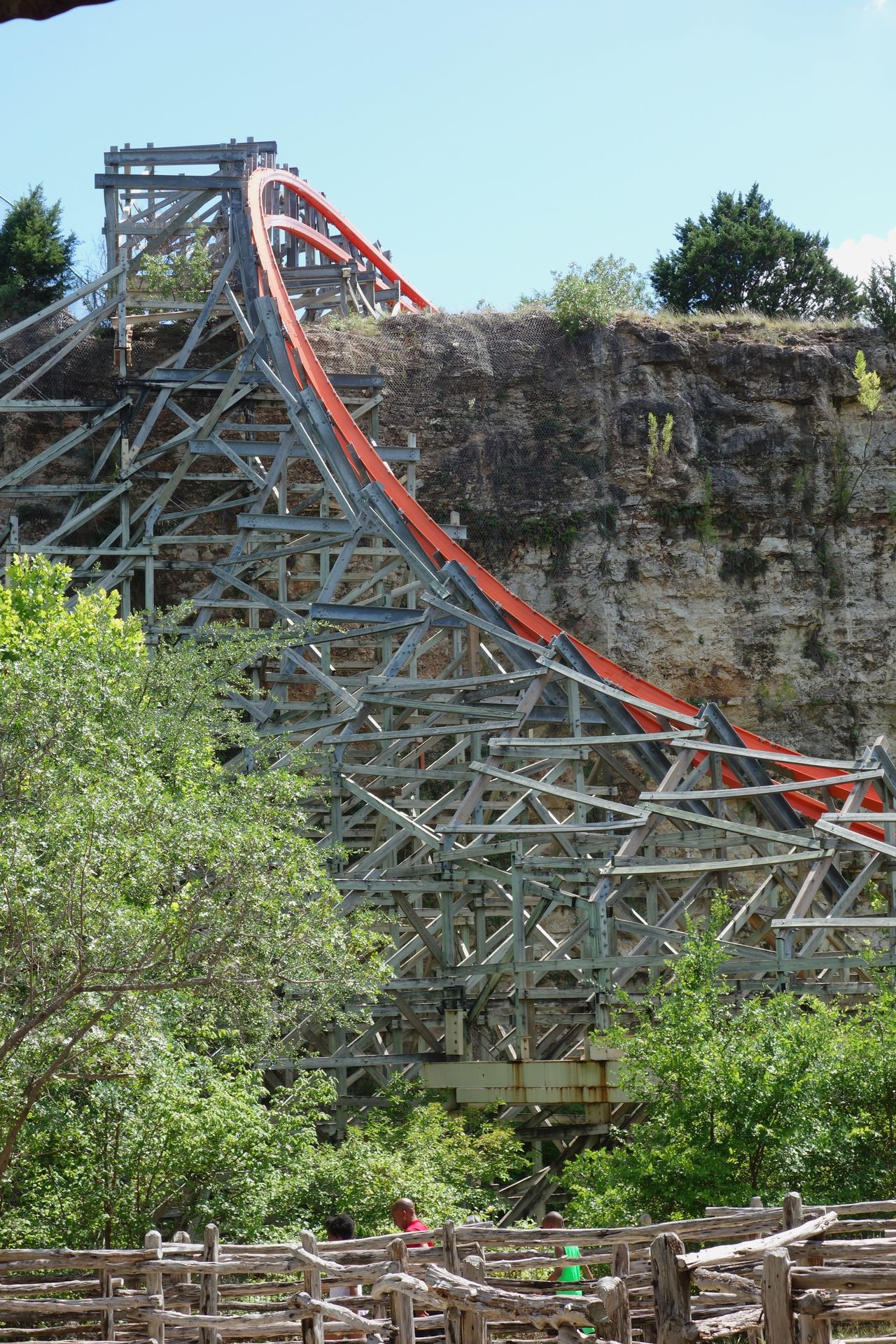 First Drop zunächst eine kleine S-Kurve, sodass wenigstens ein Bent die volle Höhe überbrückte. So war der Rattler zu seiner Eröffnung ohne Zweifel die höchste und schnellste Holzachterbahn der Welt. Schon 1994 wurde der