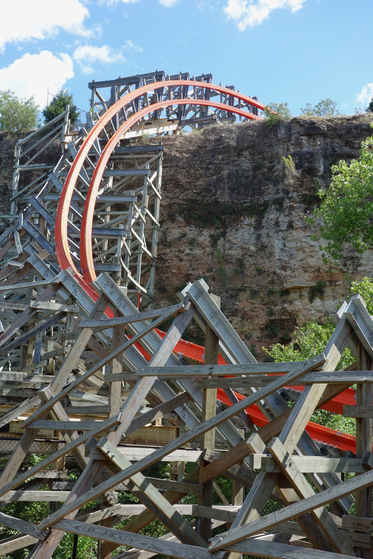 Airtime, die man auf den ersten Blick nicht unbedingt erwartet. Rasante und dennoch irgendwie harmonische Kurven mit völlig aberwitzigen Bankings. Eine schöne Rolle an der passenden Stelle. Und das alles mit absolut butterweichen Fahreigenschaften, perfekt in die Landschaft eingepasst. Wobei letzteres ja nicht der Verdienst von