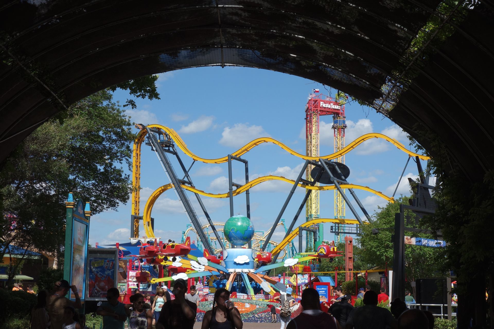 Wir steuerten noch die Achterbahn direkt am Eingang des Parks an.