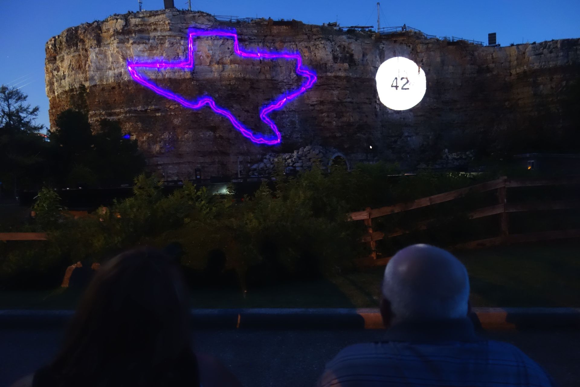 Kurz vor Ende des Countdowns kamen dann die texanische Flagge und der Umriss des Staates hinzu.