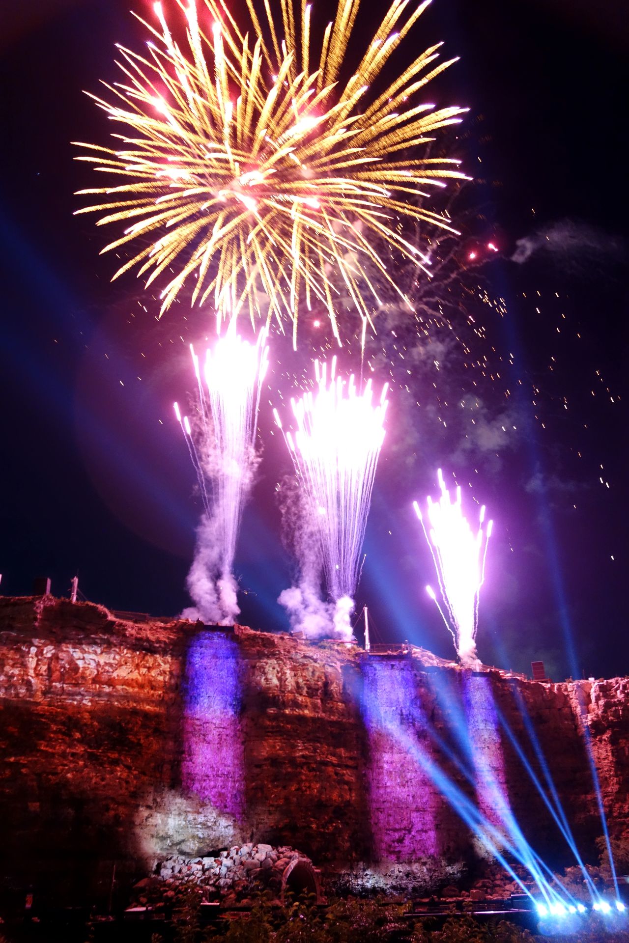 Feuer, Wasser, Feuerwerk - nur von der Projektion sieht man nicht mehr so viel.