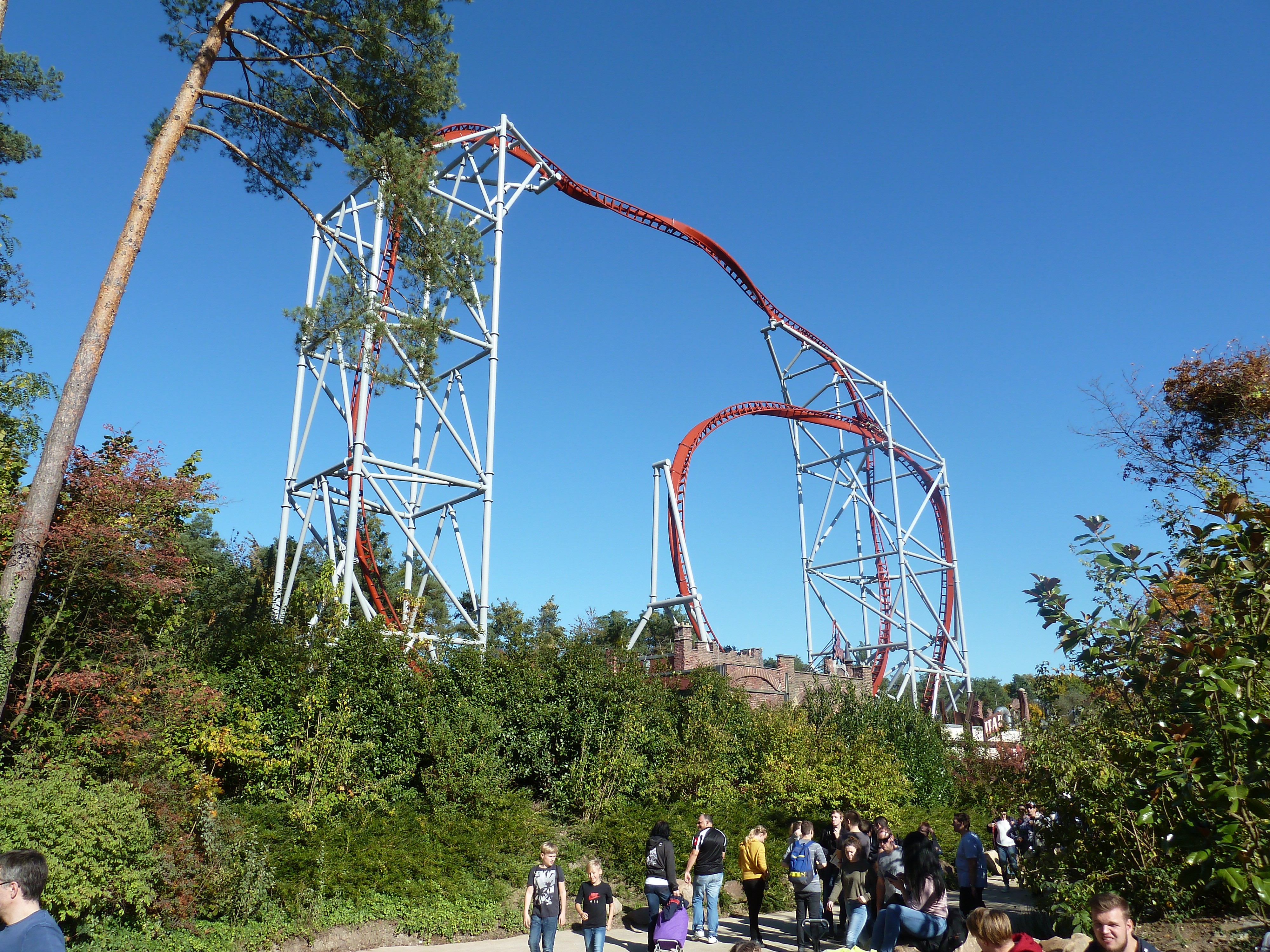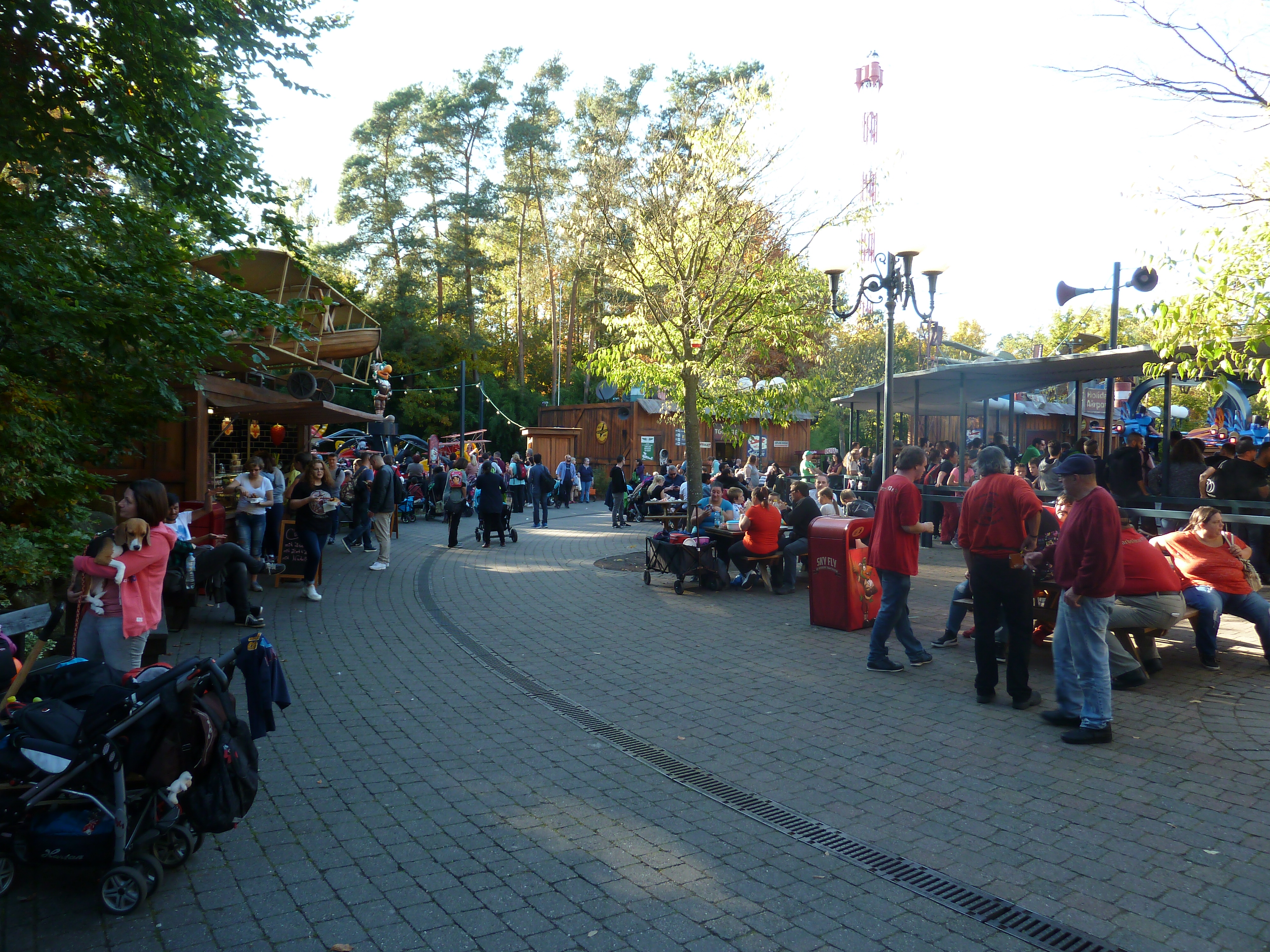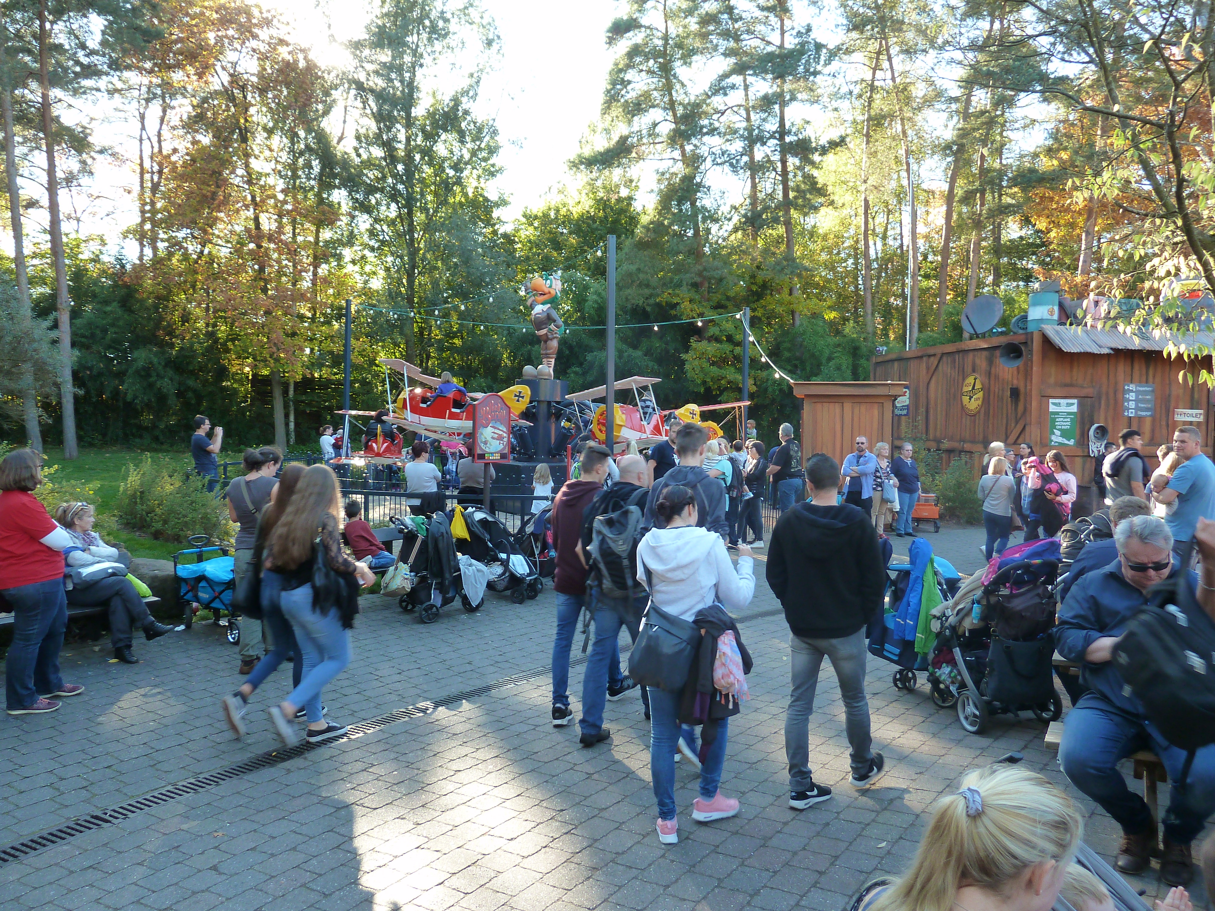 am Samstag brummte der HP. Der Parkplatz war zu 100% belegt gewesen. Es war ein buntes Treiben im Park wie auf einer Kirmes gewesen. Kein Wunder, es war das letzte Ferien-WE in RP, Ferien in Hessen und halt Halloween mit Öffnungszeiten bis 23 Uhr. Bereits morgens konnte der Shuttle Bus vom Hasslocher S-Bahnhof (braucht 10 Minuten zum Park, Taxi 18 Euro) nicht alle Gäste befördern und musste einer Extra-Tour einlegen. Ich hatte einen Aufenthalt bis 21 geplant gehabt, bin dann aber entnervt um 18 Uhr nach Haue gefahren. Leider musste man sich (wieder) über die Operations ärgern: Sky Scream war bis mittags down gewesen, die EGF gnadenlos im 1-Zug-Betrieb, eine Freifallspur kaputt. Habe demnach meinen Express Pass für Sky Scream aufgewendet und bei dem Prachtwetter fotografiert. Ist Euch bewusst, dass man im Besitz der Plopsa GoldCard bei einem jeden! Besuch einen Express Pass bekommt? Hier eine kleine Auswahl mit den Eindrücken des Goldenen Oktobers im Holiday Park: