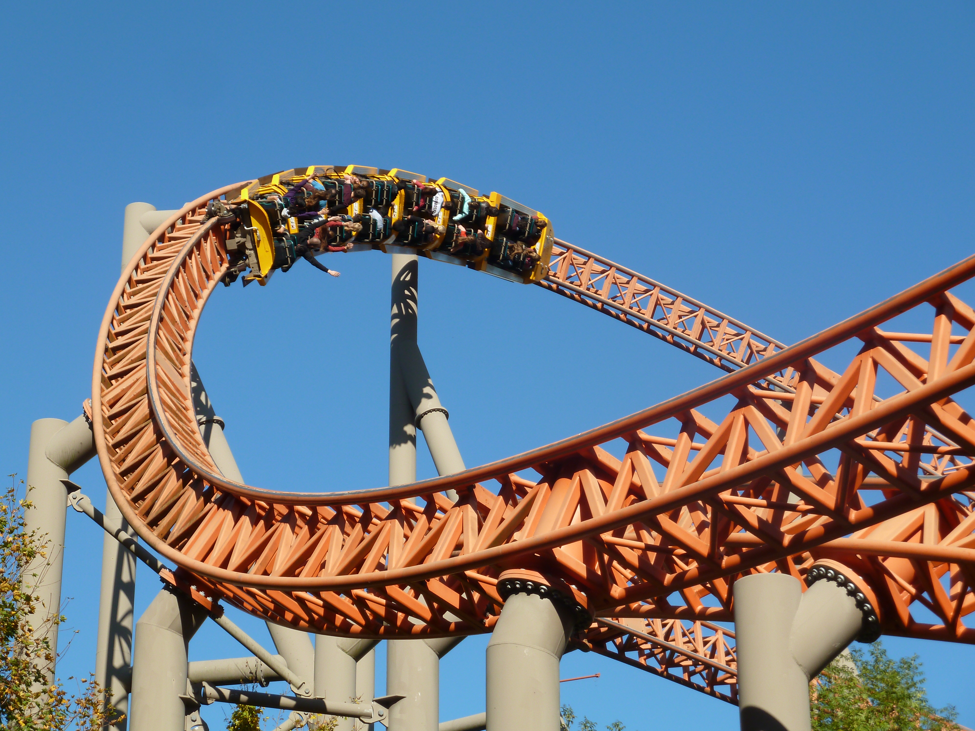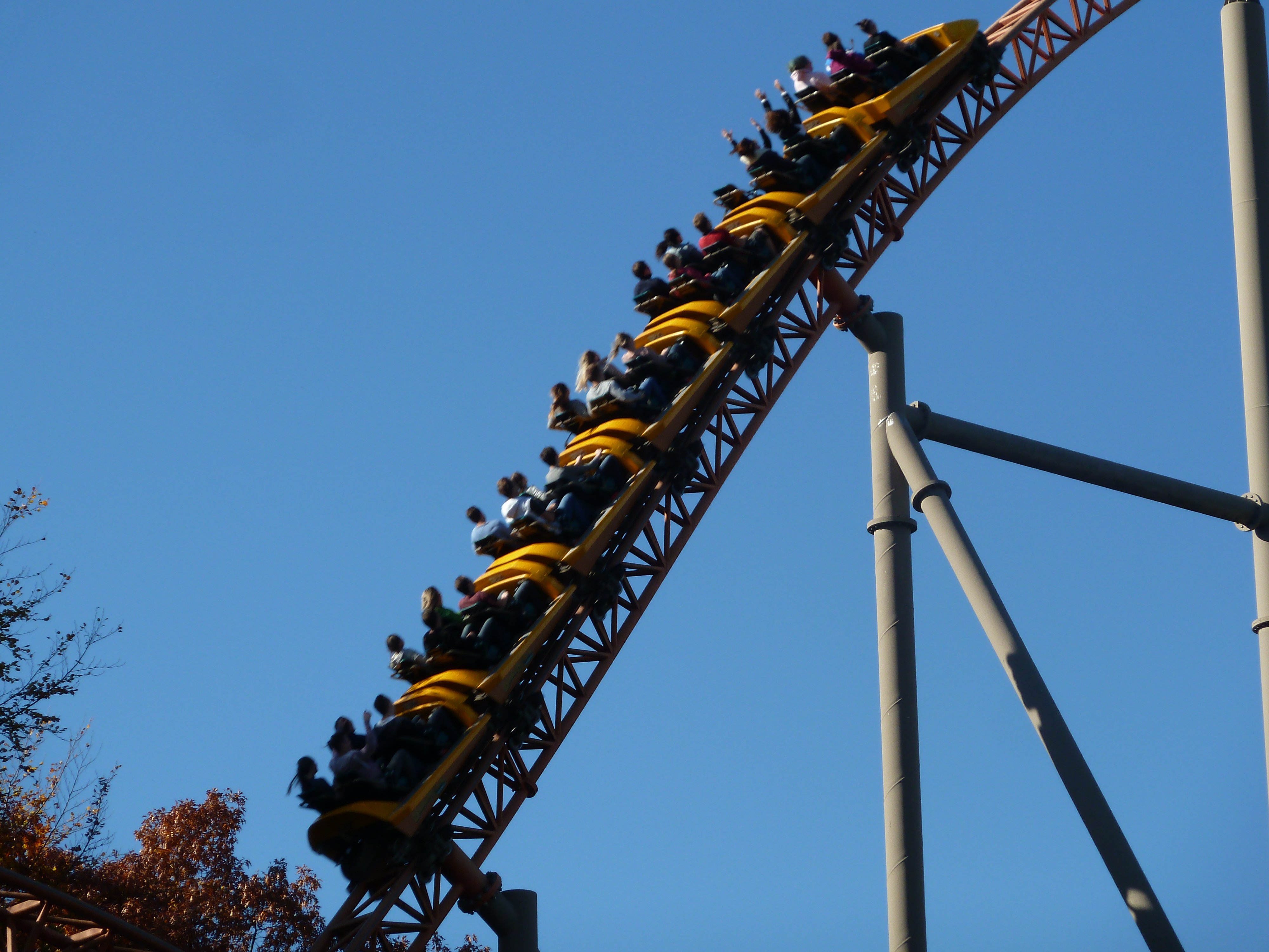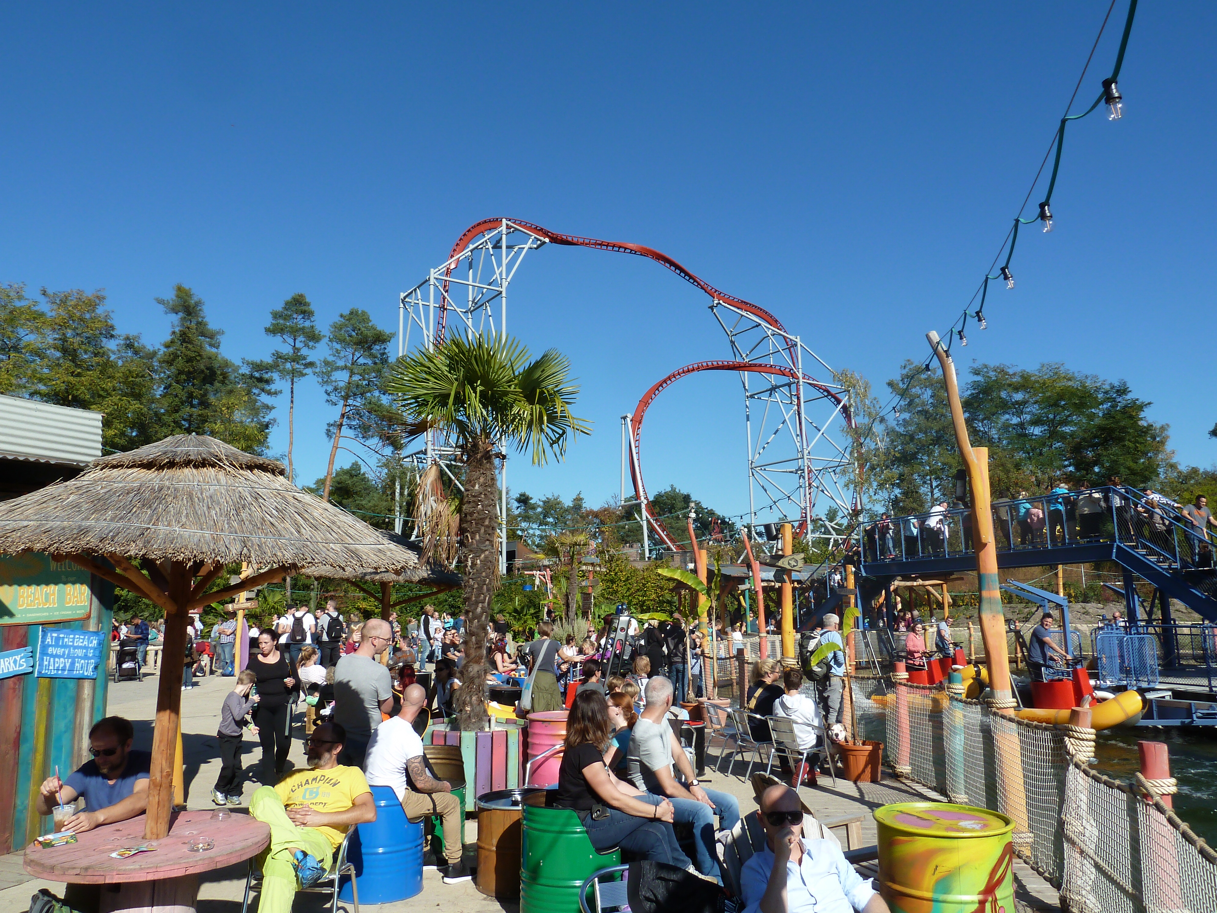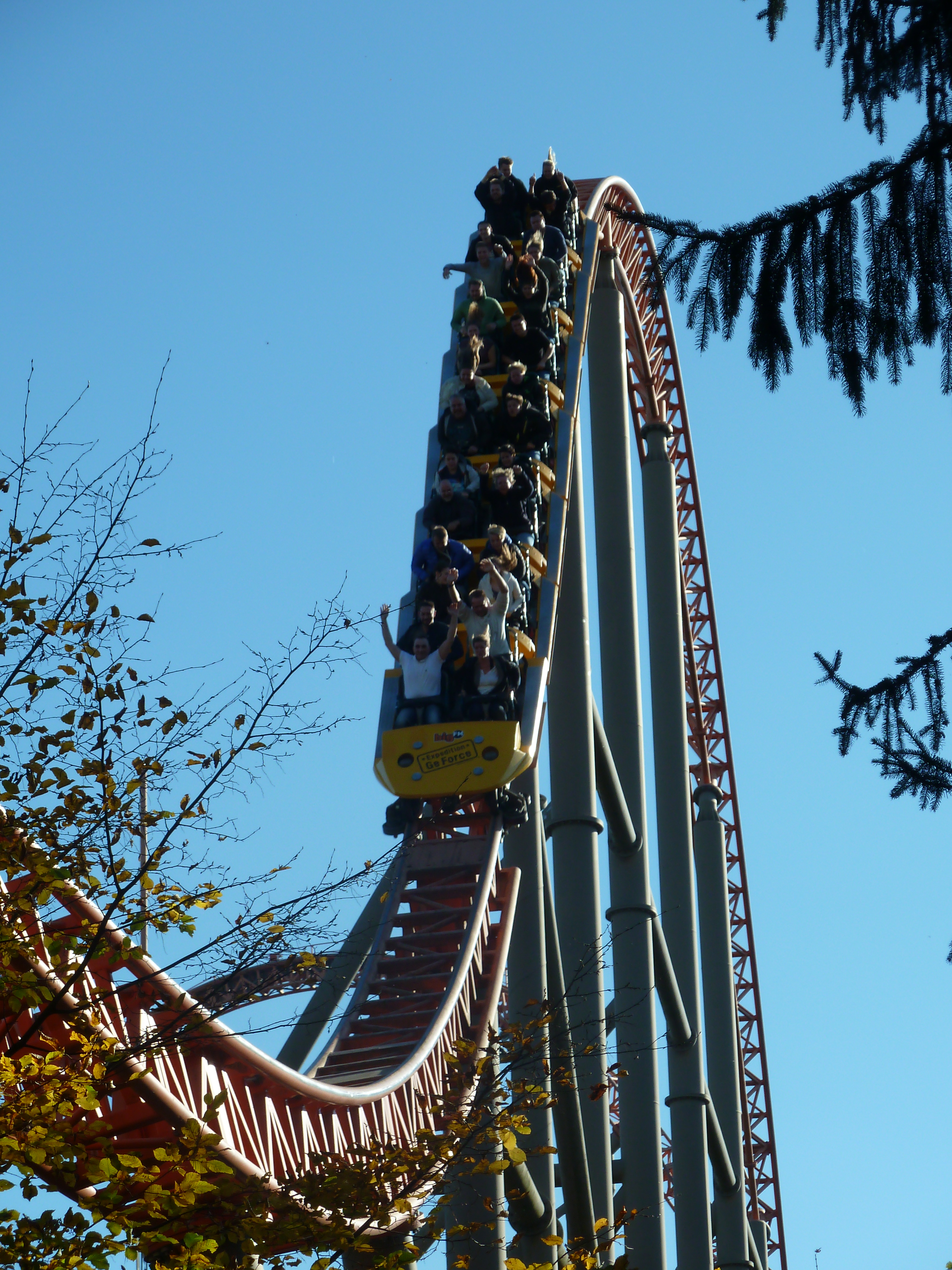 am Samstag brummte der HP. Der Parkplatz war zu 100% belegt gewesen. Es war ein buntes Treiben im Park wie auf einer Kirmes gewesen. Kein Wunder, es war das letzte Ferien-WE in RP, Ferien in Hessen und halt Halloween mit Öffnungszeiten bis 23 Uhr. Bereits morgens konnte der Shuttle Bus vom Hasslocher S-Bahnhof (braucht 10 Minuten zum Park, Taxi 18 Euro) nicht alle Gäste befördern und musste einer Extra-Tour einlegen. Ich hatte einen Aufenthalt bis 21 geplant gehabt, bin dann aber entnervt um 18 Uhr nach Haue gefahren. Leider musste man sich (wieder) über die Operations ärgern: Sky Scream war bis mittags down gewesen, die EGF gnadenlos im 1-Zug-Betrieb, eine Freifallspur kaputt. Habe demnach meinen Express Pass für Sky Scream aufgewendet und bei dem Prachtwetter fotografiert. Ist Euch bewusst, dass man im Besitz der Plopsa GoldCard bei einem jeden! Besuch einen Express Pass bekommt? Hier eine kleine Auswahl mit den Eindrücken des Goldenen Oktobers im Holiday Park: