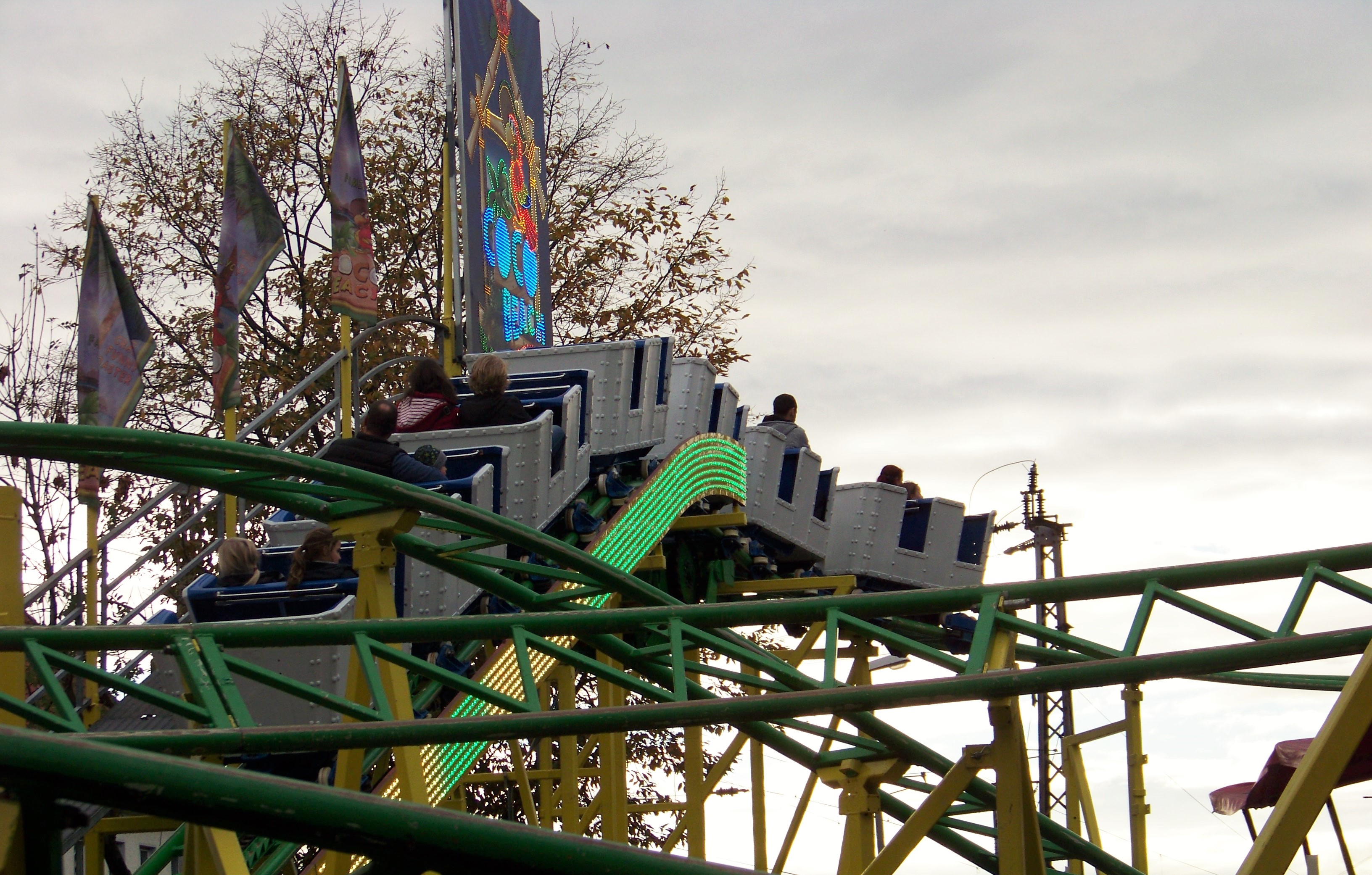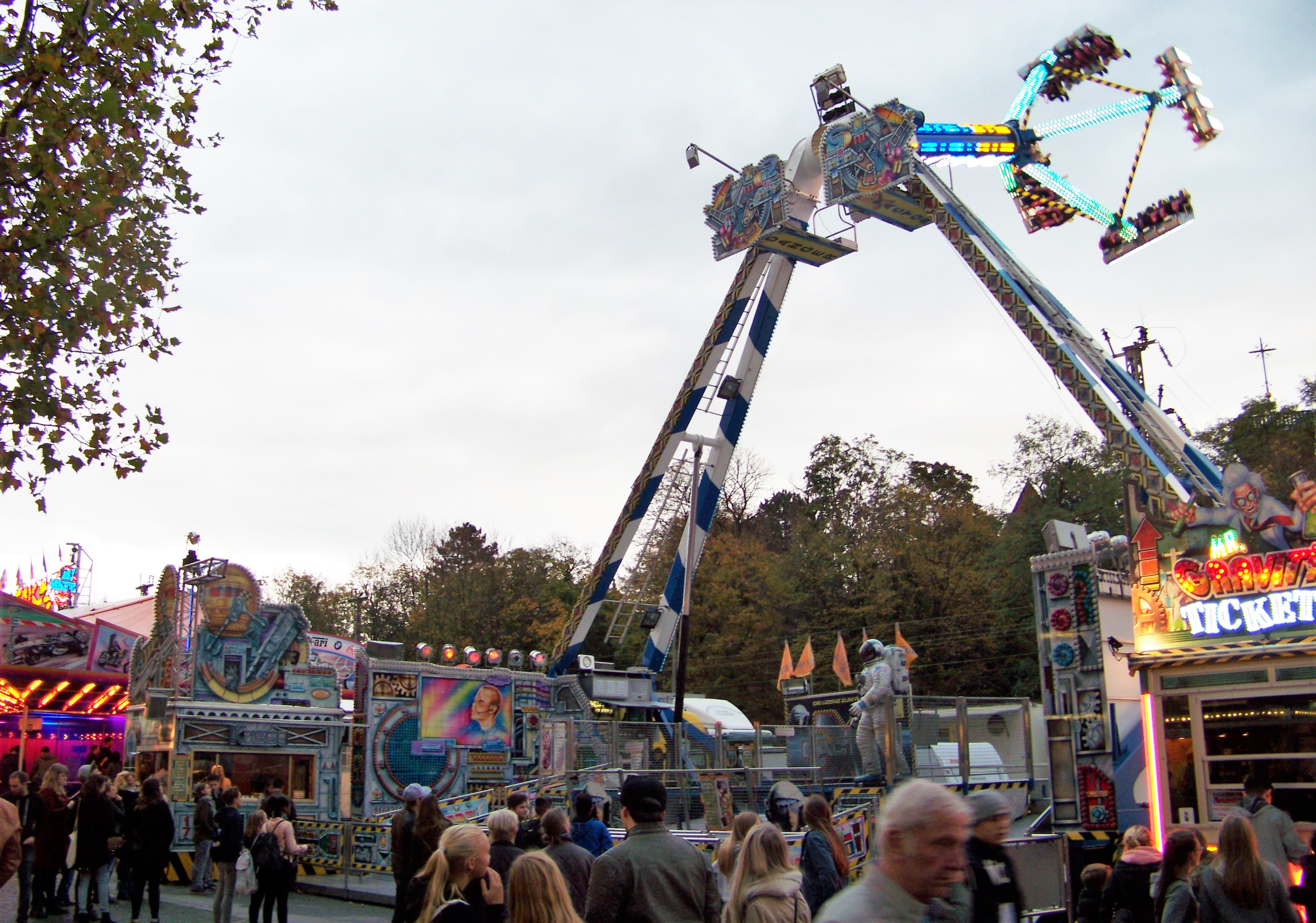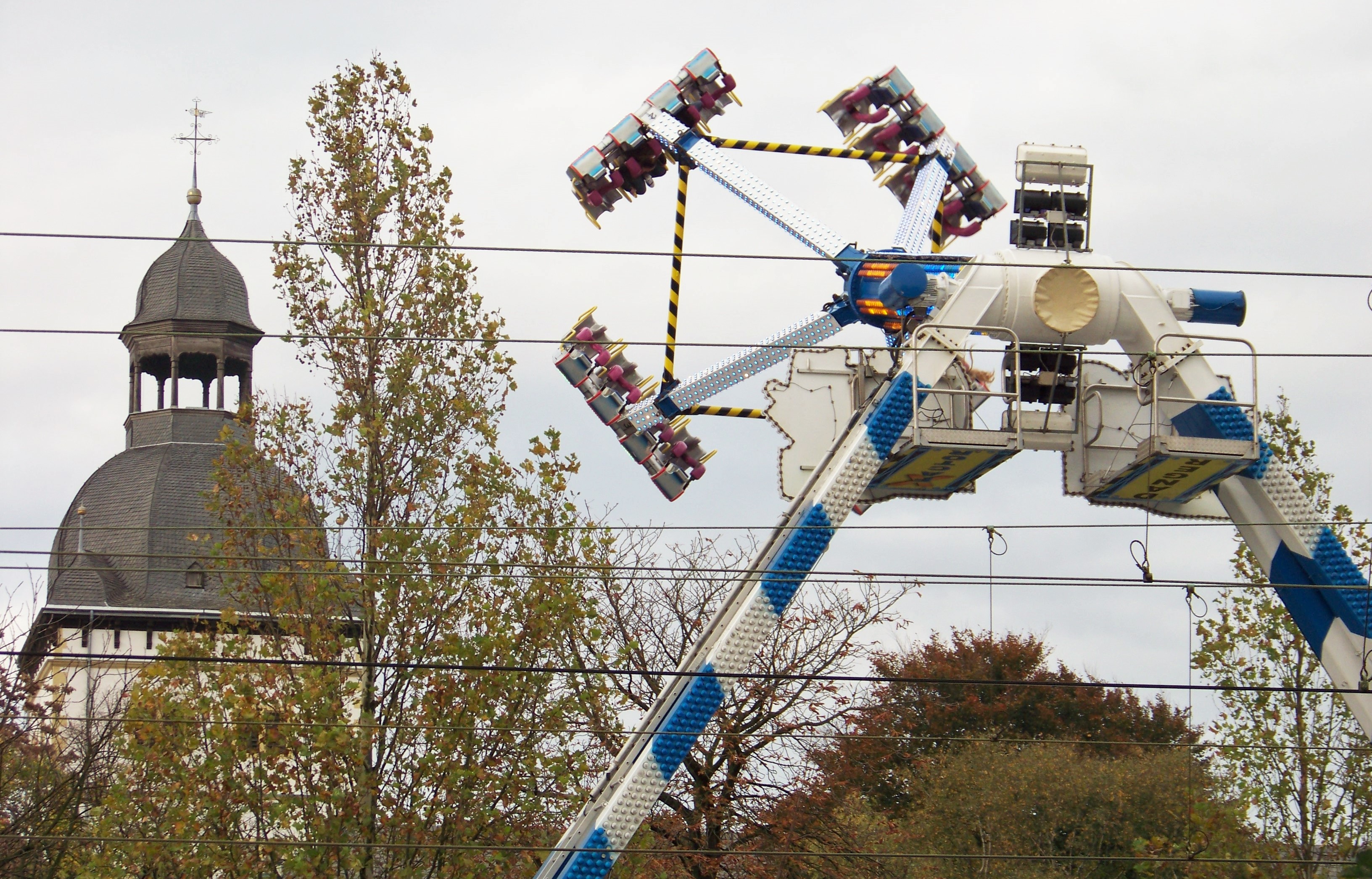 Gestern ging es zur frisch eröffneten Herbstlibori am Paderborner Liboriberg, die gestern bei überwiegend trockenem Wetter durchaus stark besucht wurde. Wie im letzten Jahr fiel mir auch dieses Mal wieder auf, dass hier überdurchschnittlich viel Familienpublikum mit Kinderwägen unterwegs ist. Vielleicht auch ein Grund für die etwas gewöhnungsbedürftige Platzaufteilung bei der diesjährigen Herbstausgabe der Libori. Denn wo im letzten Jahr die drei Thrill-Geschäfte noch gerecht auf die drei Parkplätze am Liboriberg aufgeteilt wurden, jedoch trotz vollem Platz nur leidlich angenommen wurden, sammelt sich dieses Jahr alles, was eher das jugendliche und thrill-suchende Publikum anspricht auf dem oberen Platz. Der untere Kirmesbereich richtet sich, ausschließlich mit familien- und kindergeeignetnen Fahr- und Belustigungsgeschäften ausgestattet, eher an die stark präsente Zielgruppe der Familien mit kleinen Kindern.