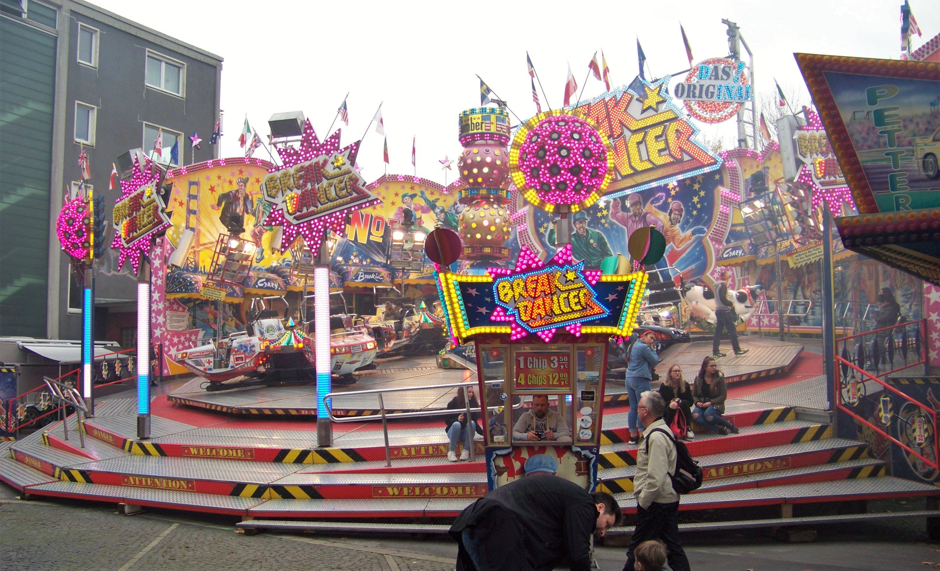 An die beiden Hochfahrgeschäfte schließt sich noch der Zweit-Autoscooter von Petter aus Paderborn an. Den Abschluss am oberen Ende des Liboribergs bildet in diesem Jahr der Break Dancer von Dreher-Vespermann.