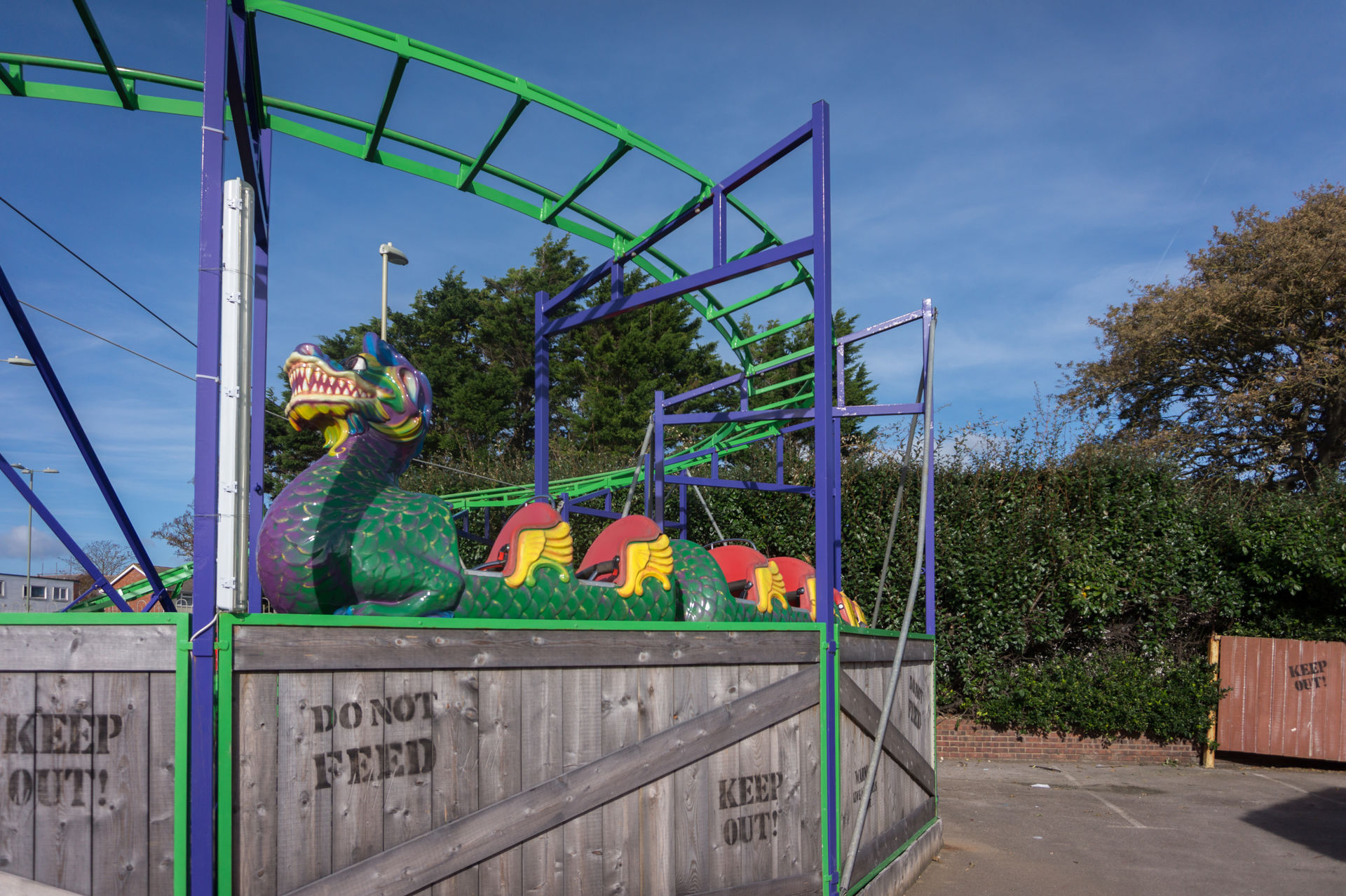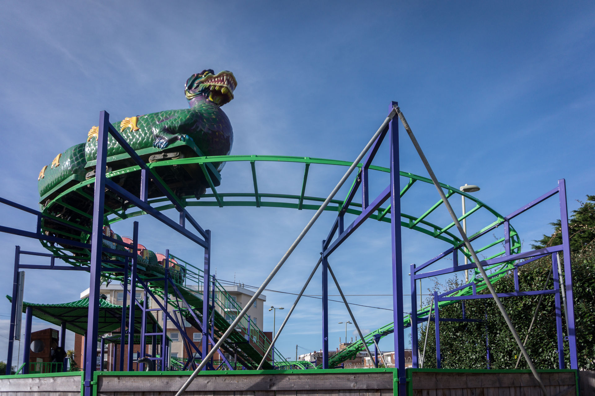 Allen voran die nett gestaltete Kinderachterbahn Super Dragon Roller Coaster bzw. Funlandasaurus.