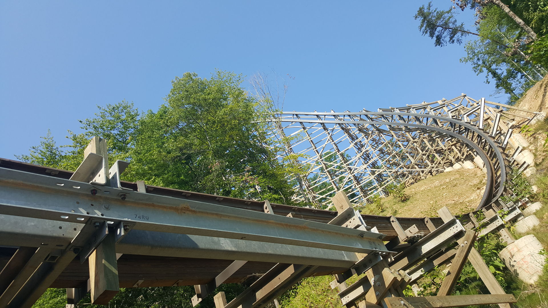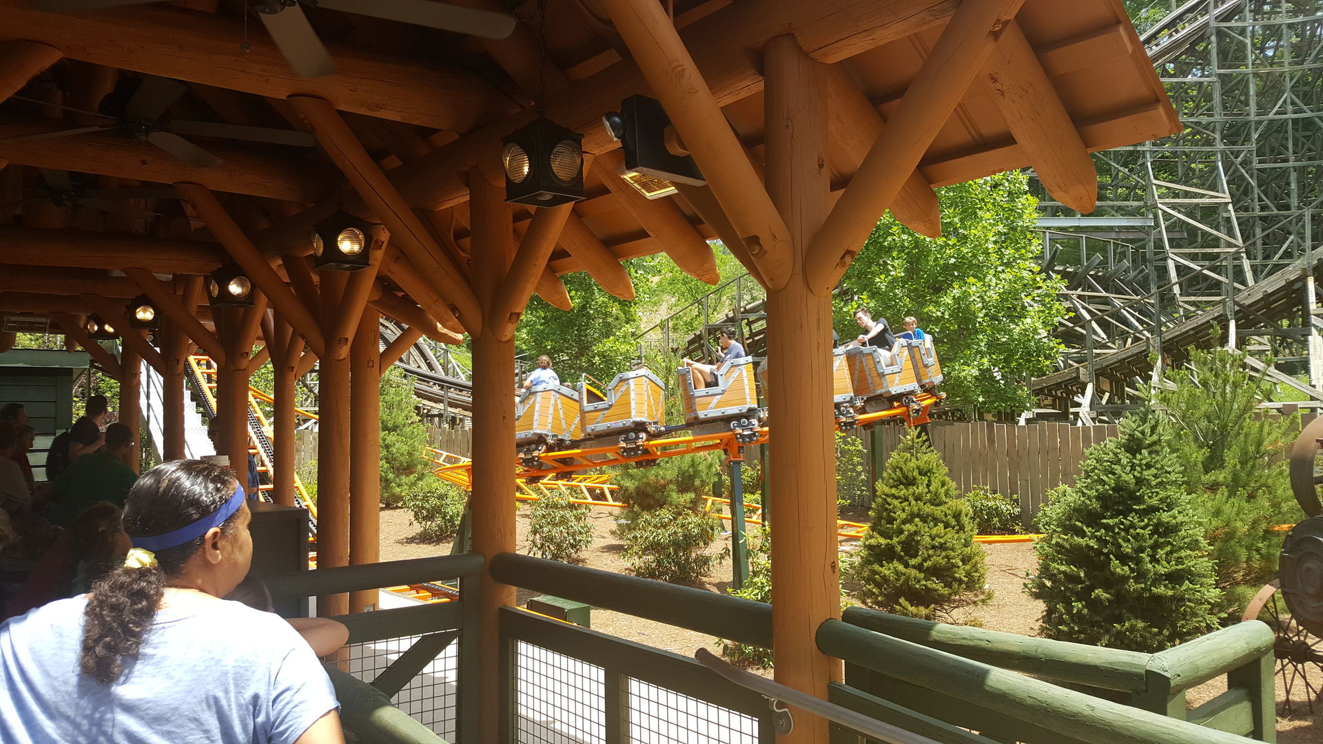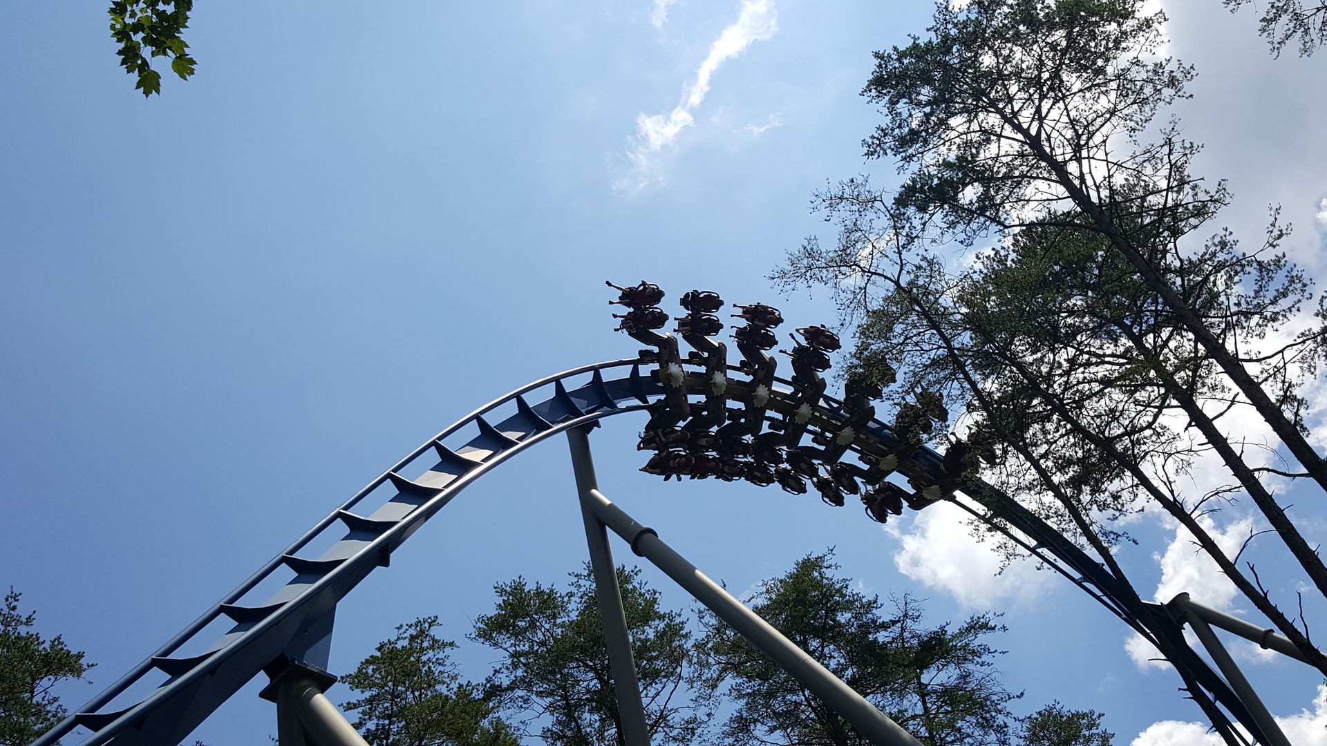 In der Warteschlange vom Mountain Slidewinder bekommt man noch schöne Blicke auf Wild Eagle, welcher erhaben über den Berg segelt.