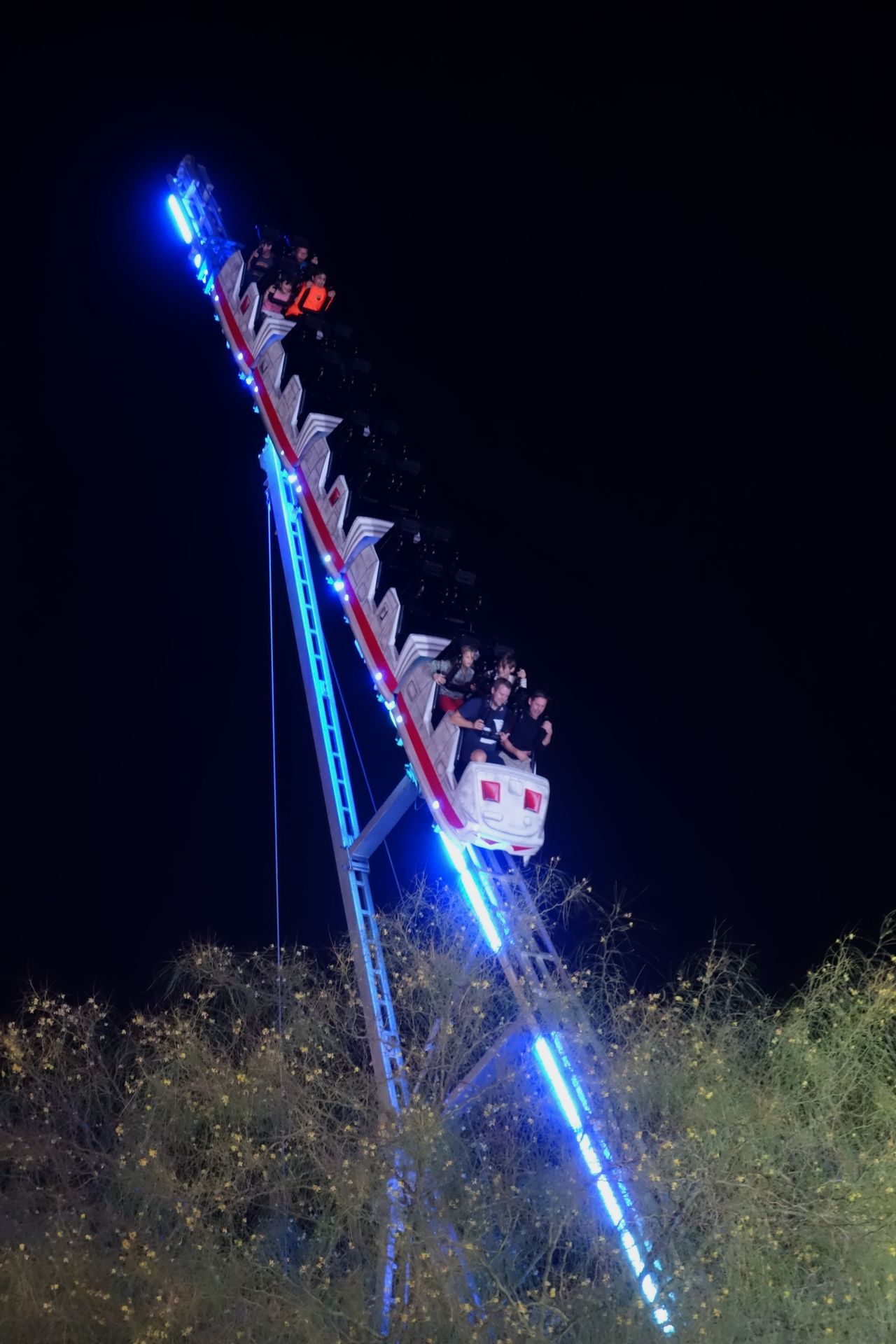 Airtime geht es wieder hinab. Im Tal wird man ganz gut in den Sitz gedrückt, beim Auspendeln samt Richtungswechsel kann man mit ein bisschen Hilfe durchaus etwas von eben diesem Abheben. Und das kann man überraschend oft machen, denn der Zug pendelte gefühlte fünf Minuten, ehe der Operator endlich die Bremse aktivierte, die aber auch recht sanft verzögerte. Eine relativ intensive Fahrt mit absolut angemessenen Fahreigenschaften und einem mehr als gerechtfertigten Preis.