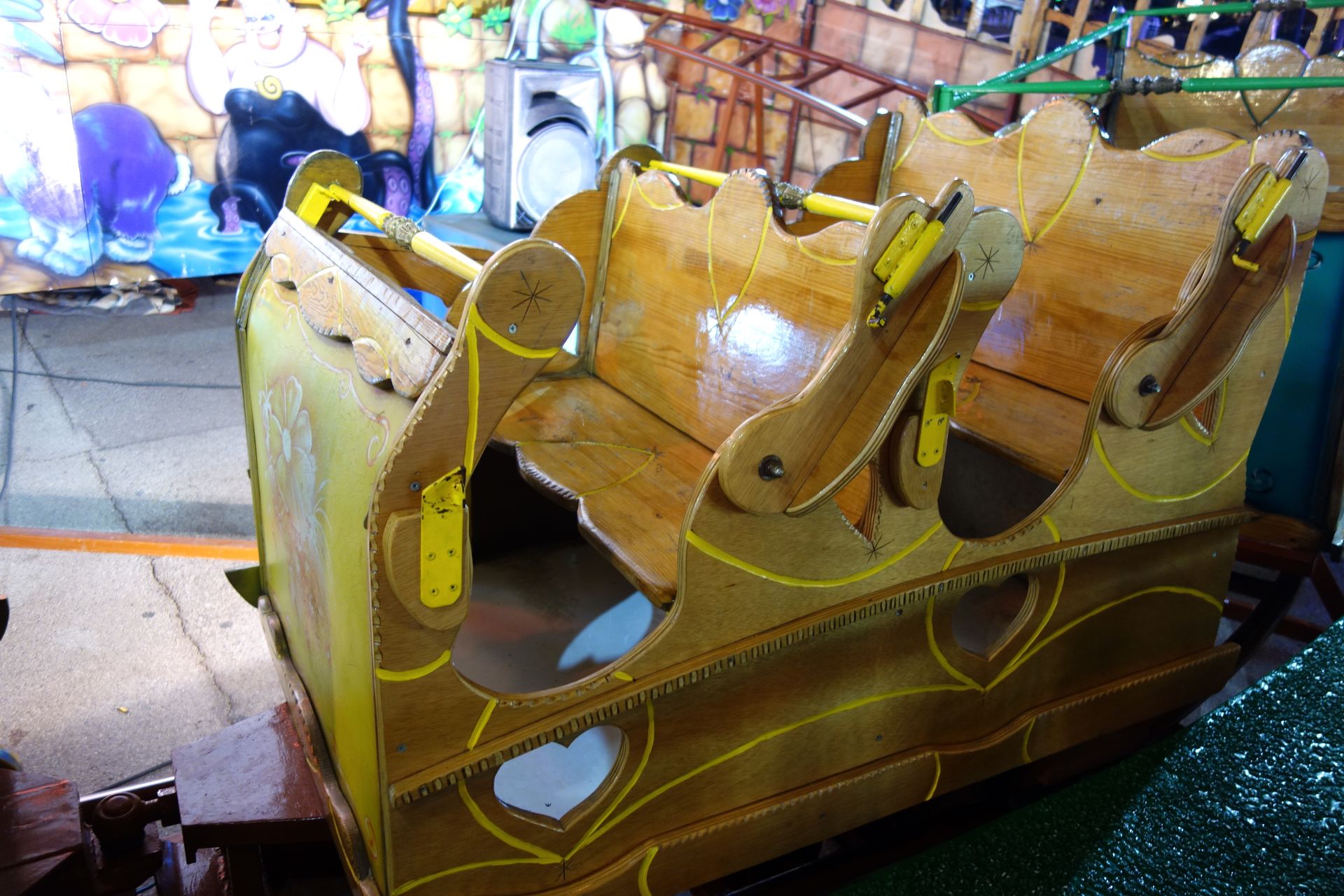 Dessen Decke war in regelmäßigen Abständen mit Schaumstoffpolstern samt Spitzen ausgestattet. Außer dass ich mich bei jeder Durchfahrt leicht ducken musste, erkannte ich darin nicht wirklich einen Sinn. Bis der Zug nach etlichen Runden einfach mitten im Tunnel stehen blieb. Vorne und hinten gingen die Tore zu und dann saß ich da. Ganz allein. Es folgten diverse Lichteffekte, etwas Sound, und als Finale kam die Decke runter. Also wirklich runter. Die Schaumstoffpolster passten genau zwischen die Wagen und reichten auch wirklich bis an die Wagenwand hinab. Die eigentliche Decke lag sozusagen auf meinem Kopf auf. Echt krass und für mich persönlich das Highlight dieses Kirmesbesuchs.