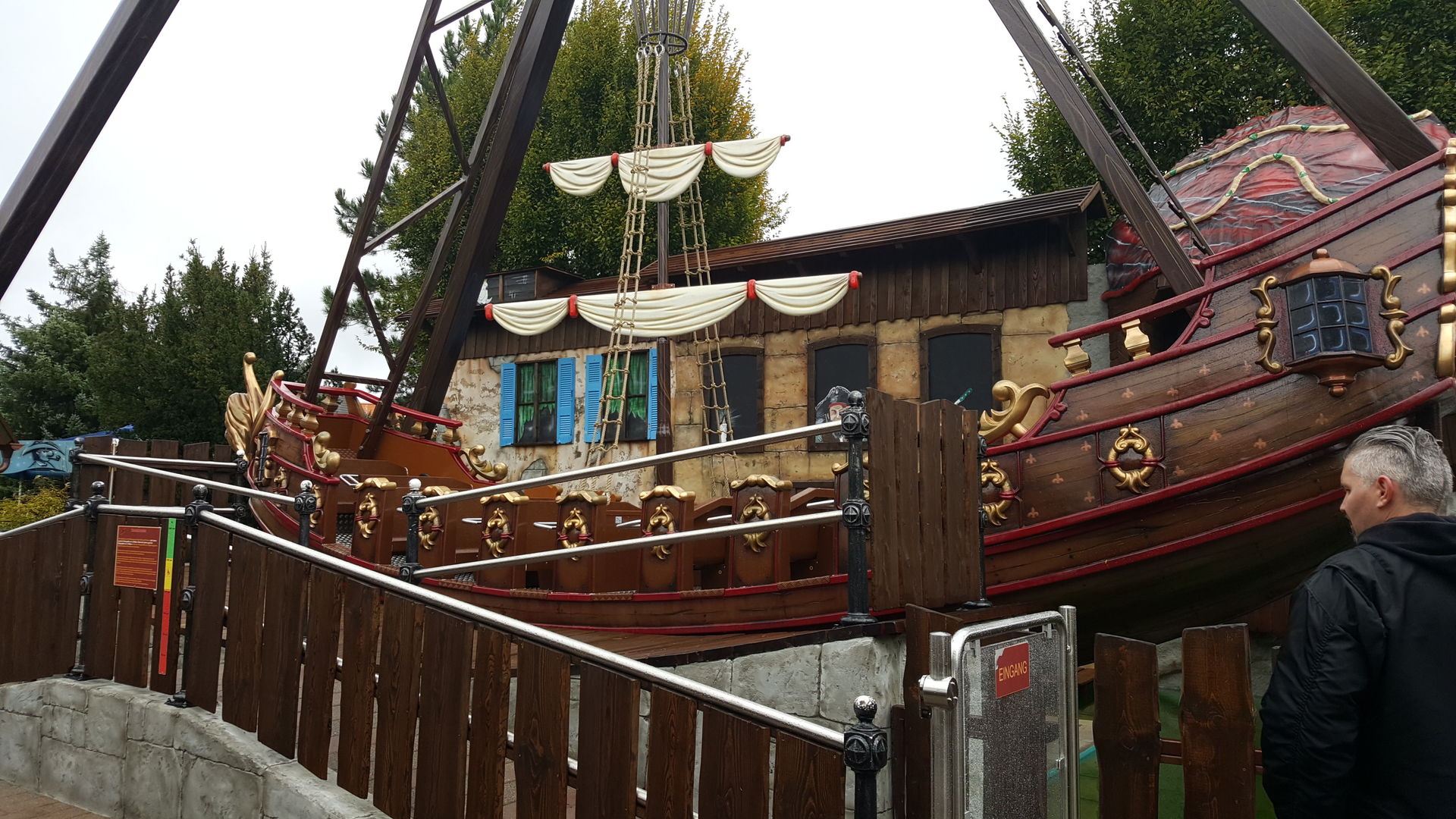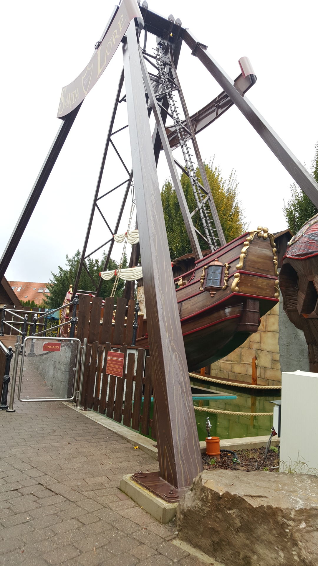 Dann kamen wir auf der anderen Seite vom Park-Eingang an der diesjährigen Neuheit vorbei, der Santa Lore. Eine wahrlich chique Schiffschaukel aus dem Hause Metallbau Emmeln, welche schöne