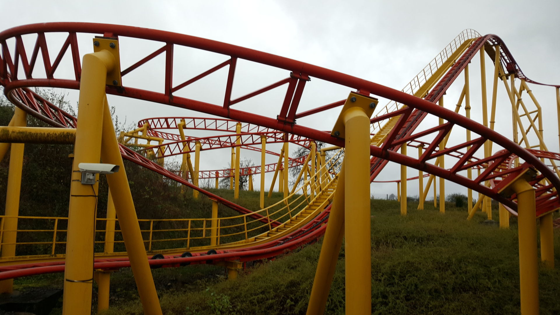 Wir gingen direkt rechts herum zur Hauptattraktion des Parks, welche wir vom Parkplatz auch schon beobachten, aber noch nicht fahren sehen konnten.