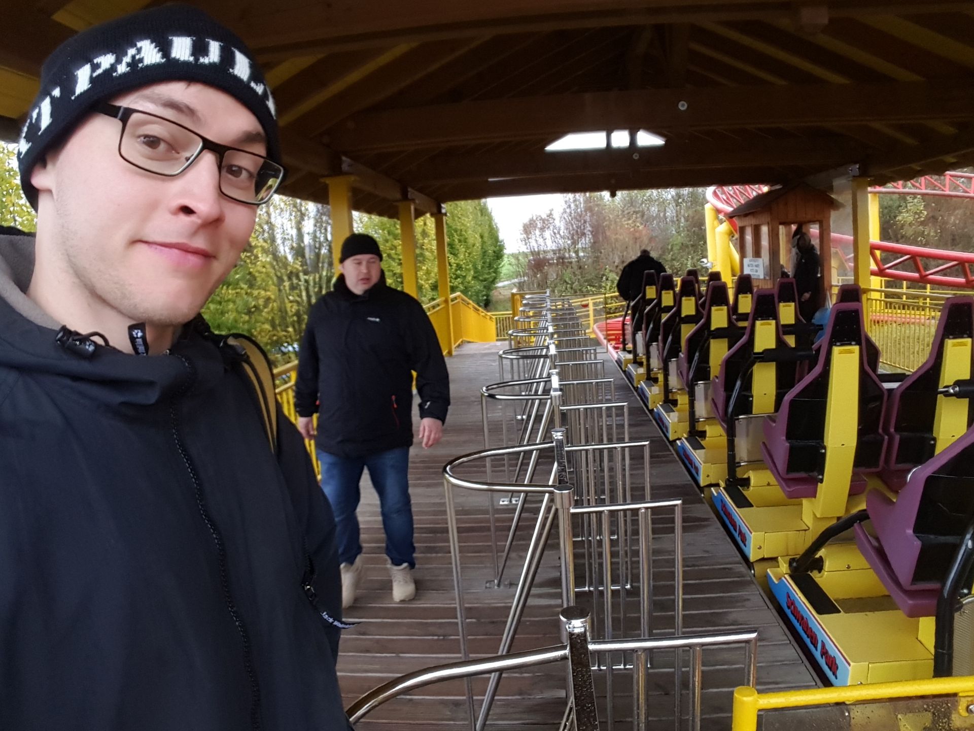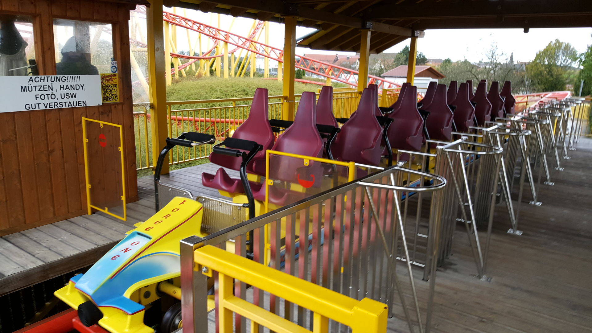 Zierer, nur kleiner, aber auch hier mit gut gelauntem Mitarbeiter (trotz Kälte, Regen und Menschenleere), welcher uns direkt mal satte 5 Runden fahren ließ. Und weil es uns und besonders Holger so sehr gefallen hat, sind wir nach Platztausch (Front -> Back und umgekehrt) nochmal gefahren.