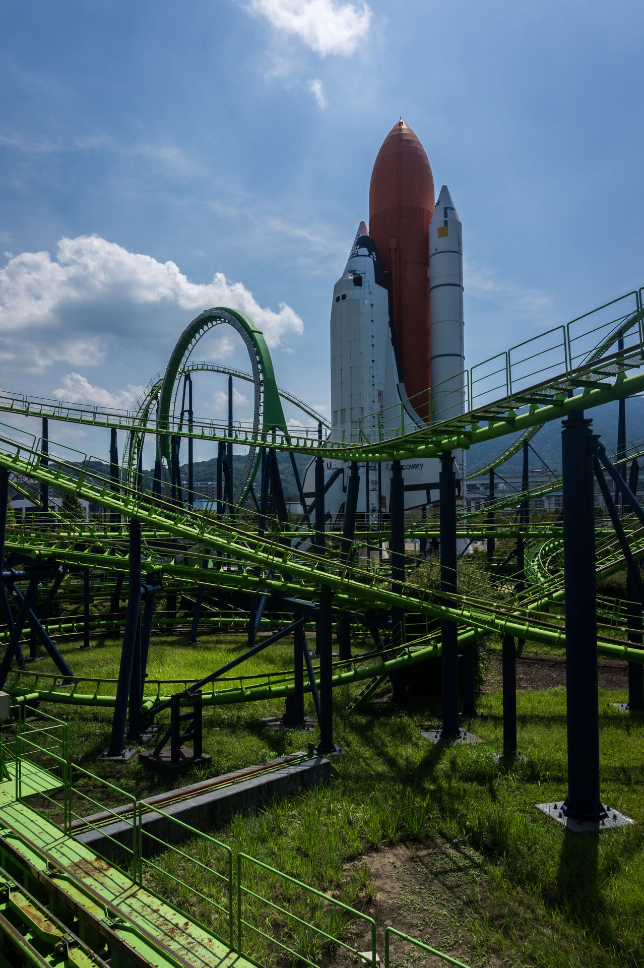 Widmen wir uns nun dem verbleibenden Edutainment-Angebot des Freizeitparks, sprich dem Nachbau des Space-Shuttles Discovery im Maßstab 1:1 - was an sich schon extrem beeindruckend ist und die Raumstation über der Warteschlange der Achterbahn Euro Mir ohne Mühe alt aussehen lässt - und dem Space Museum. Ersteres hat dabei ganz klar den Vorteil von den Besuchern nicht übersehen zu werden, während sich im gut gemachten Museum keine Menschenseele verirrt. Interessanter Weise lief hier ein belangloser Anime im hauseigenen Vorführungssaal und so manch Raum war der Öffentlichkeit gar nicht mehr zugänglich - in den Anfangsjahren des Parks war es also bestimmt einmal eine tolle Attraktion, welche durch ihre Lage mitsamt dem Space-Shuttle eigentlich in Zukunft auch als eigenständige Attraktion weiterhin bestehen könnte.