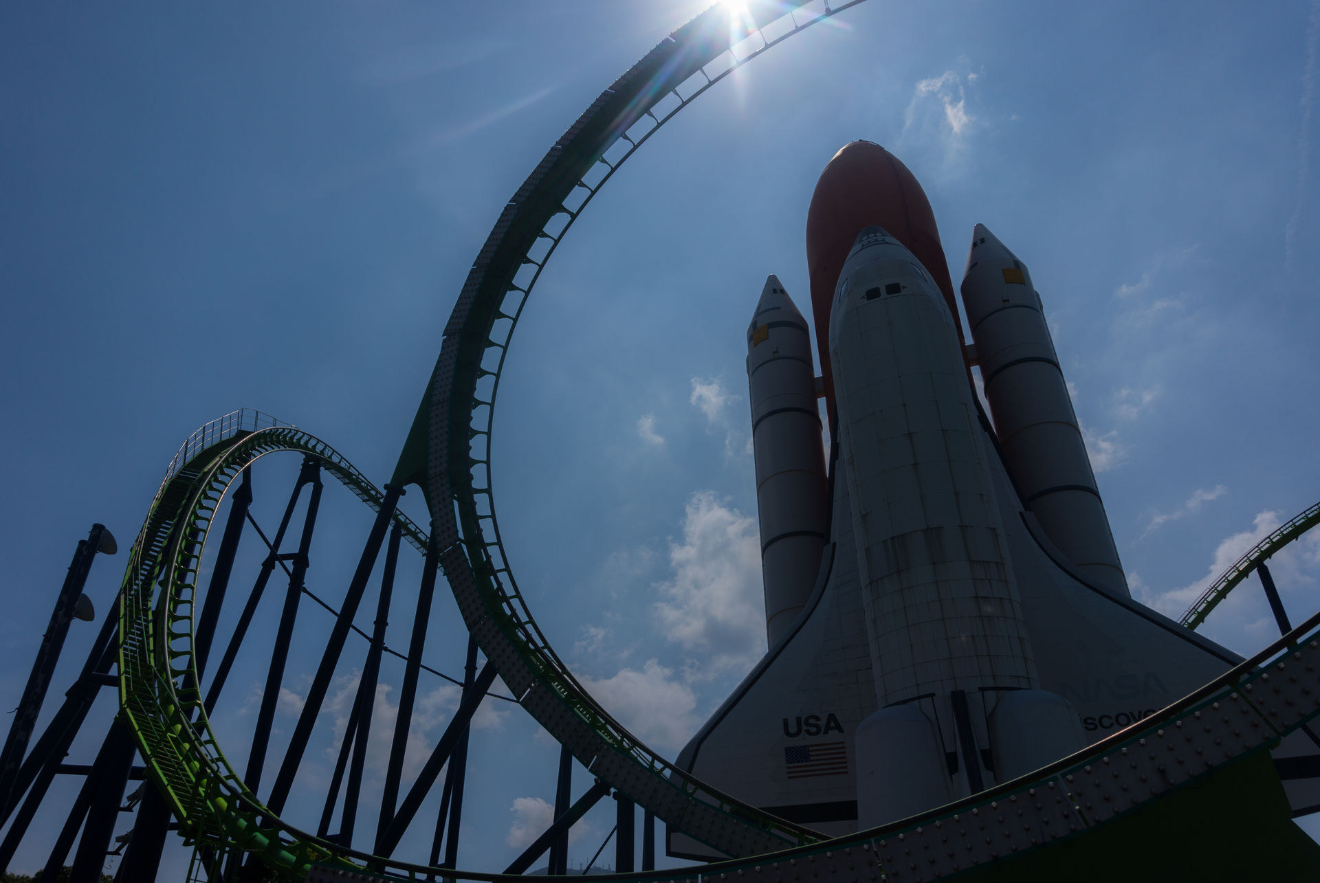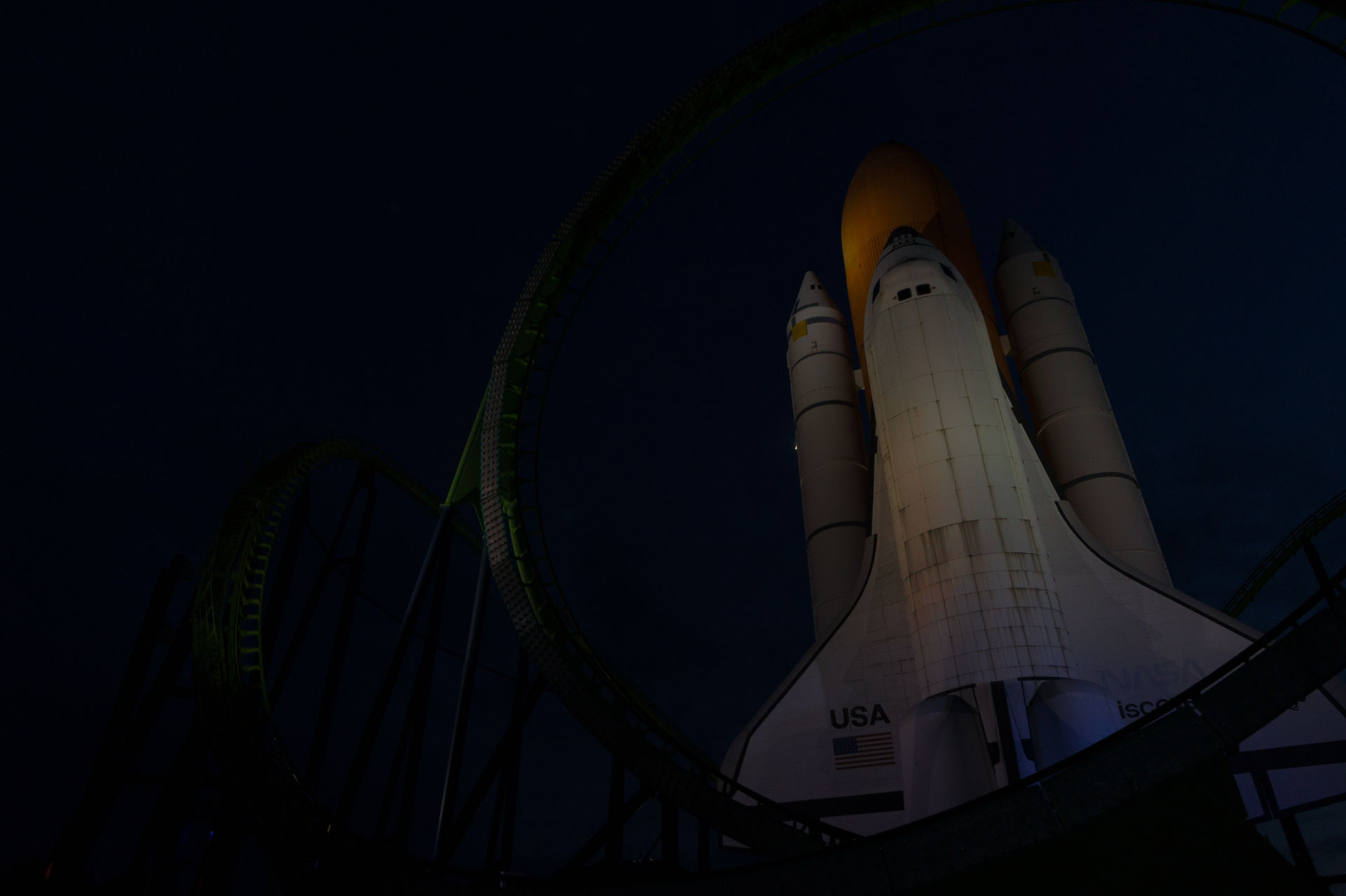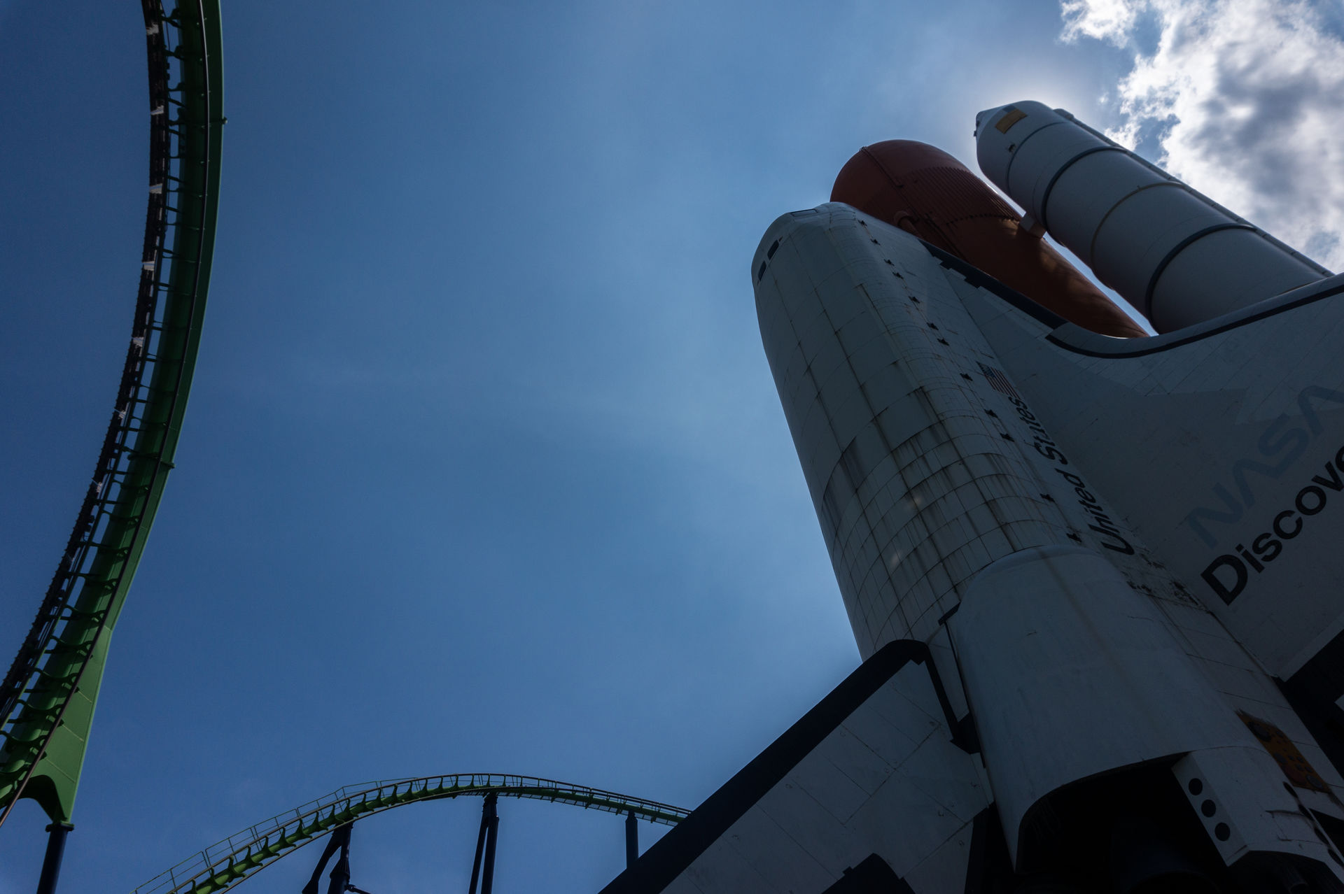 und dessen Showbühne folgen wir den Wegen in Richtung des großen Space Shuttles.