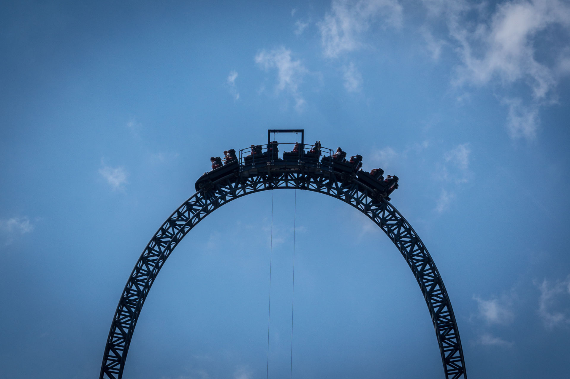 Looping durchfahren - Zeit zum Durchatmen gibt es hier eigentlich nur während der Auffahrt im Lift und in der Schlussbremse. Doch warum bleibt meine Euphorie im Keller?! Die Antwort darauf ist simpel: Die Bügel!