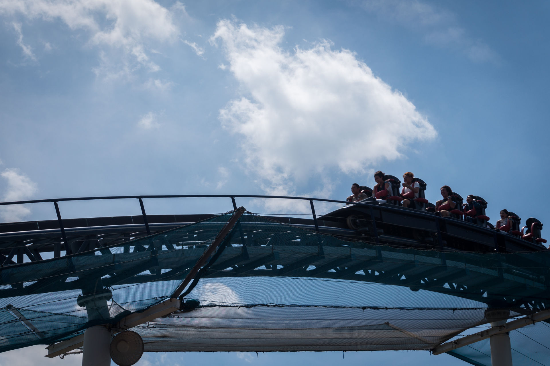 Ebenfalls in diese Kategorie fällt das Wildwasserbahn-Duo Twin Mercury, bei dem man sich entweder auf die Adventure Cruise oder auf die Fun Fun Cruise begeben darf. Während die Adventure Cruise die mutigeren Fahrgäste ansprechen soll, darf man sich in der Fun Fun Cruise mit Wasserpistolen auf einer gemächlicheren Fahrstrecke austoben. Da wir uns jedoch die Beine in der Warteschlange der Abenteuerkreuzfahrt auf Grund der minimalen Anzahl an Personenbeförderungsmitteln in den Bauch standen, verzichteten wir jedoch auf weitere Fahrten.