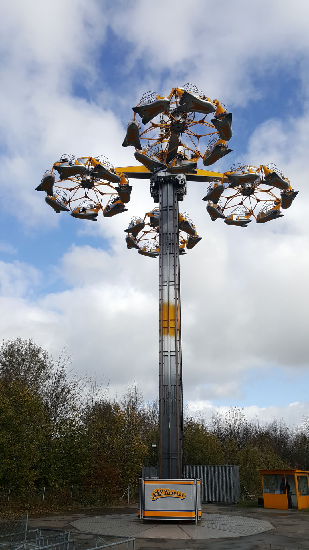 Sky Spin, von der ich beim morgendlichen Vorbeigehen noch behauptete, dass sie die beste Bahn des Parks sein könnte, war ich jedoch maßlos enttäuscht! So eine fiese Fahrt habe ich noch nie auf einem Maurer Spinner erlebt! Langeweiligere, ja. Spinlose, auch. Aber wie die Chaisen hier über die Schienen holperten, war nicht mehr feierlich!