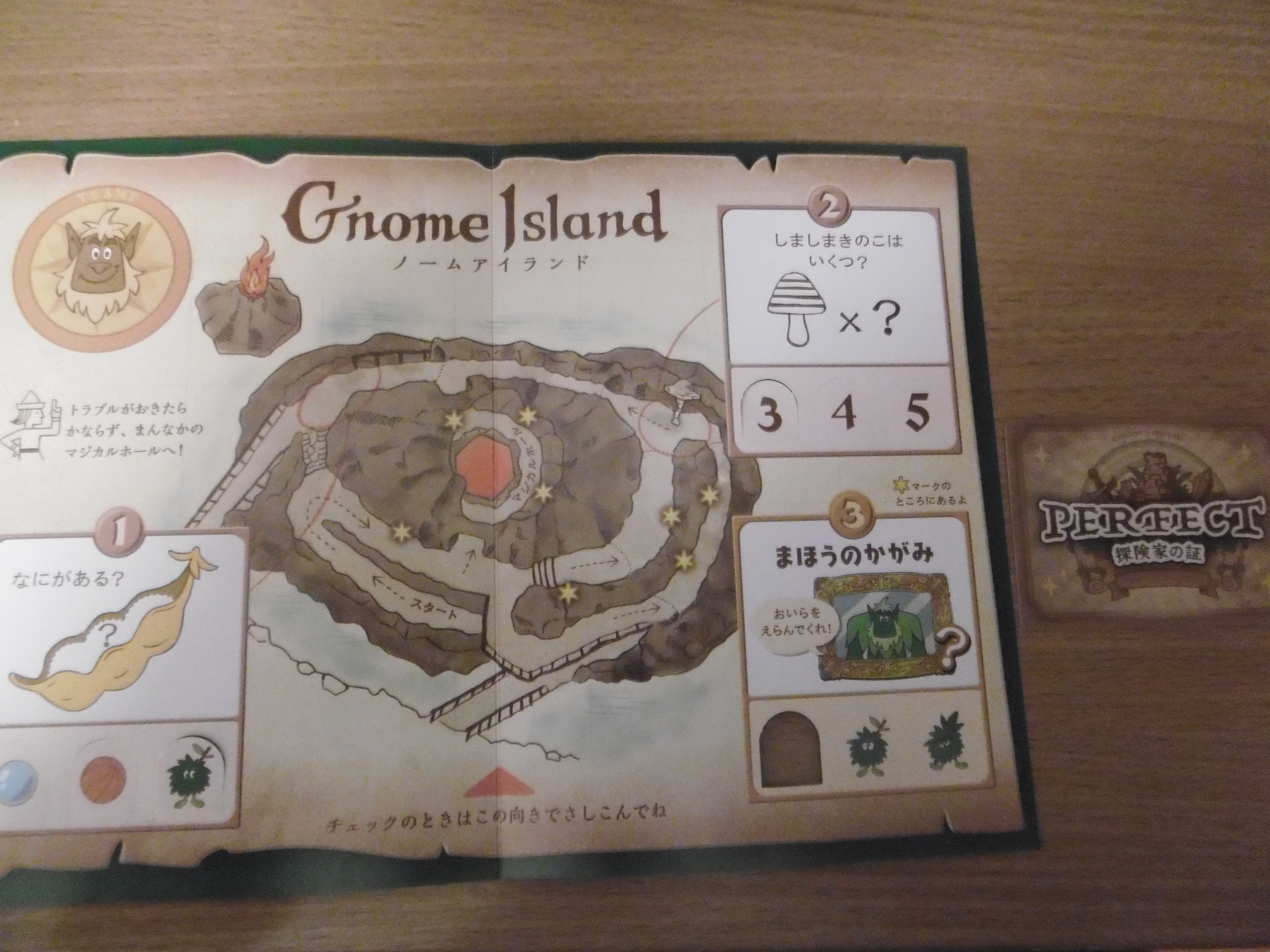 Vor Betreten der Attraktion bekamen wir von einer Mitarbeiterin mit hübschen "Herr der Ringe"-Klamotten und Gnom-Ohren eine „Adventure Map“ ausgehändigt und durften dann einer Preshow beiwohnen. Neben uns stand ein Japaner, dessen Gesichtsausdruck mir suggerierte, dass er sich ernsthaft gefragt hat, ob wir verstanden haben, was wir überhaupt tun müssen. Haben wir natürlich nicht, was uns auf dem Trip aber nie davon abgehalten hat es einfach zu versuchen. So musste ich in verschiedenen Spielen auf der Insel bspw. herausfinden, was für Bestandteile in einer Hülsenfrucht waren (letzteres; s. nächstes Bild) und die Lösung nach hinten umknicken. Im Innern der Insel mussten wir dann im Kontinuum noch versuchen in einer vorgegebenen Zeit Bälle in den Vulkan zu werfen. Augenscheinlich hat das geklappt.