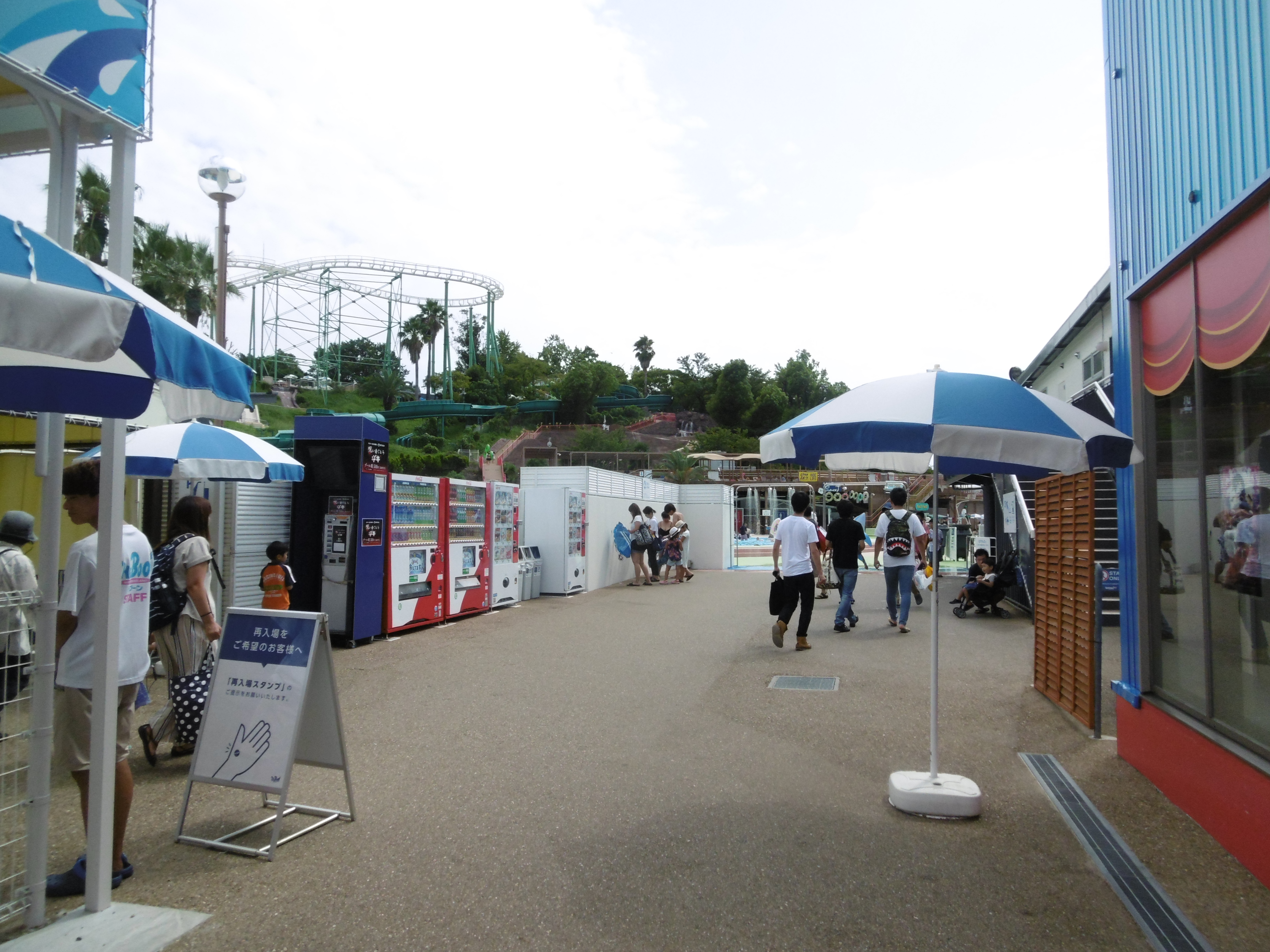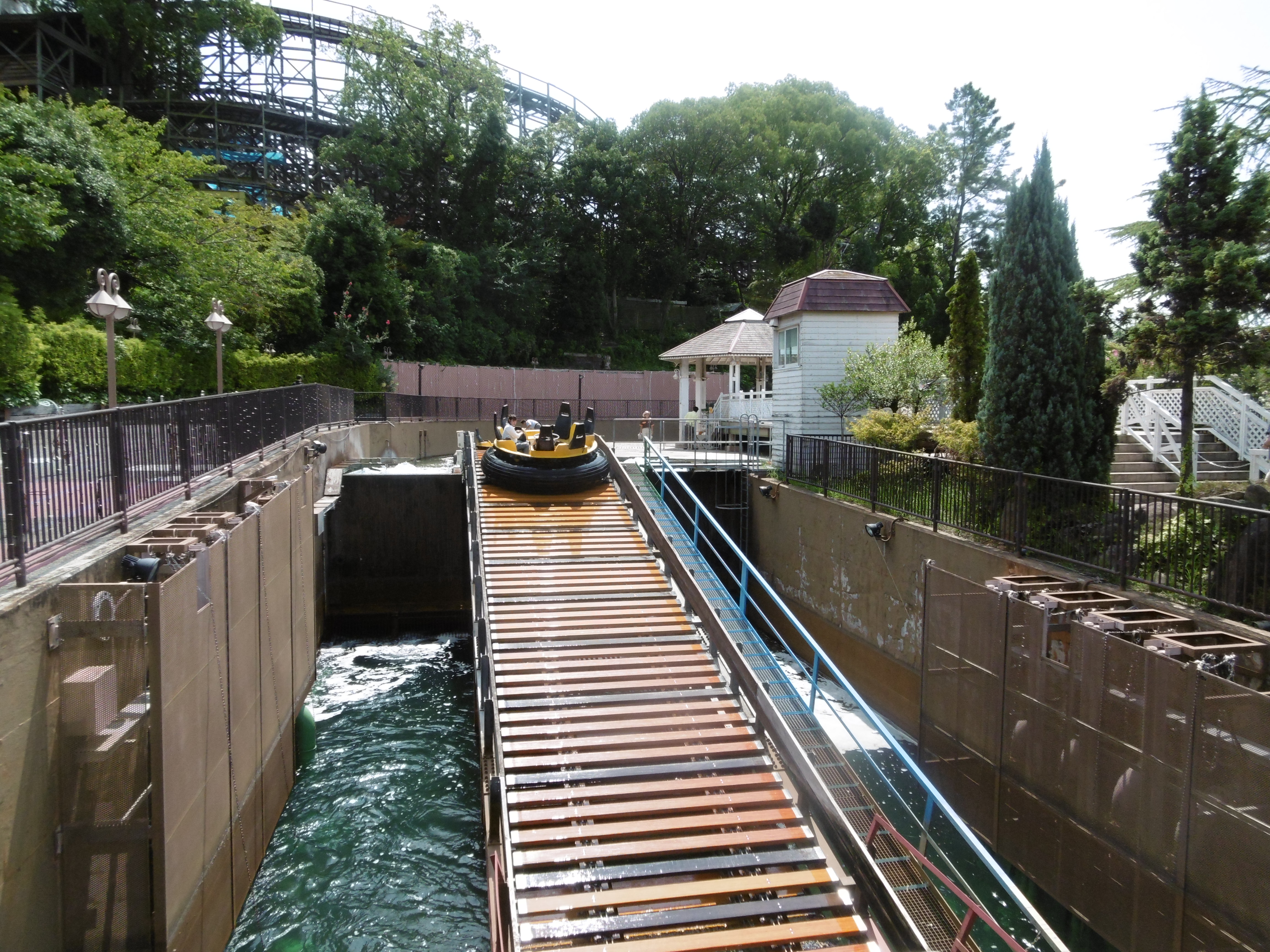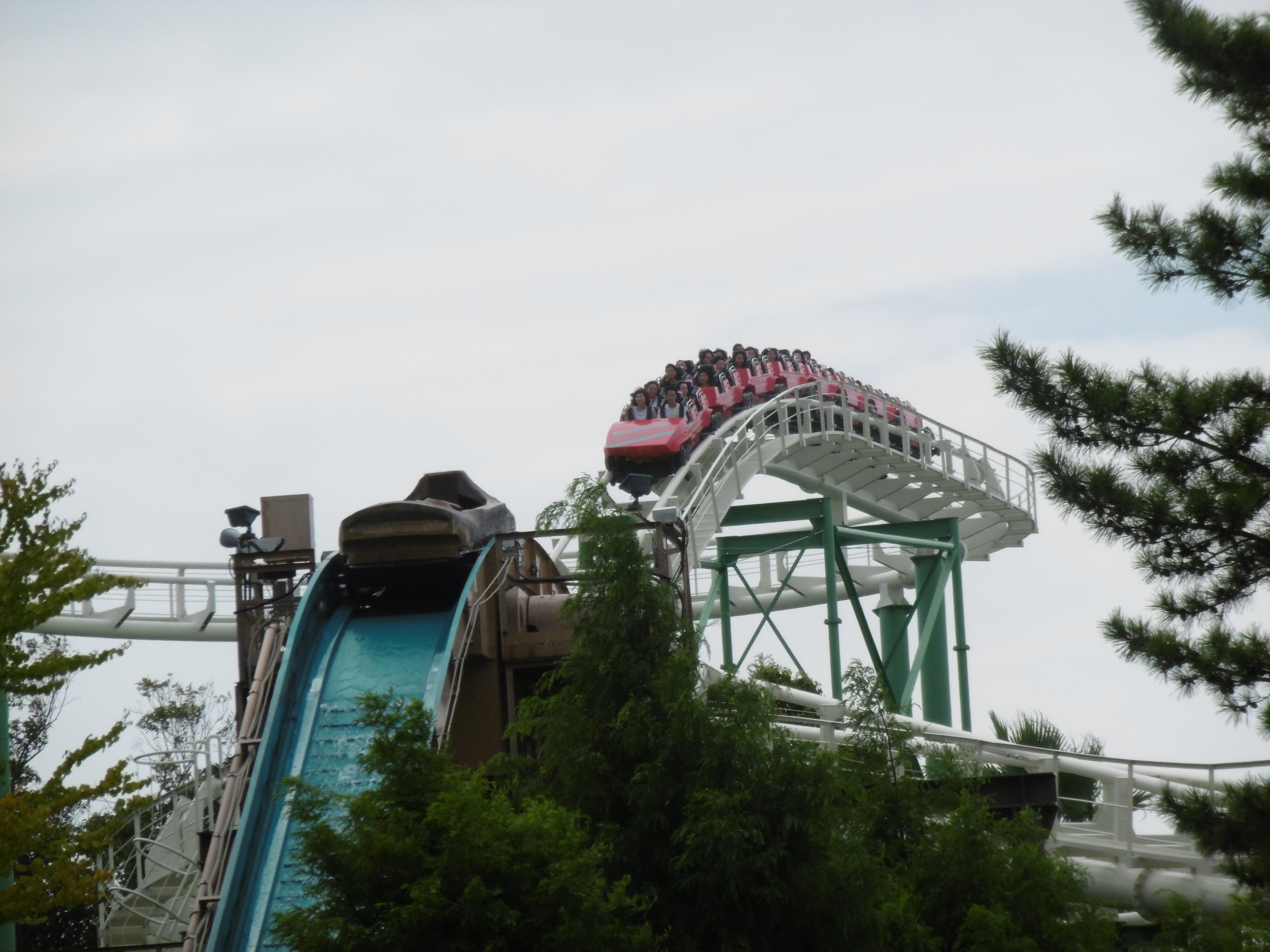 Während der Freizeitpark belebt, aber keineswegs voll war tummelten sich die Japaner im aufpreispflichtigen Wasserpark The Boon. Dieser bietet neben einem sehr langgezogenen, aber sehr flachen, Lazy River, zwei Bodyslides, eine Reifenrutsche, ein hangverlegter Crazy River, sowie eine interessant wirkende hangverlegte Breitbandrutsche (nur für Kinder) und ein kleines 25m Becken just unterhalb der Wendekurve der Achterbahn Red Falcon.