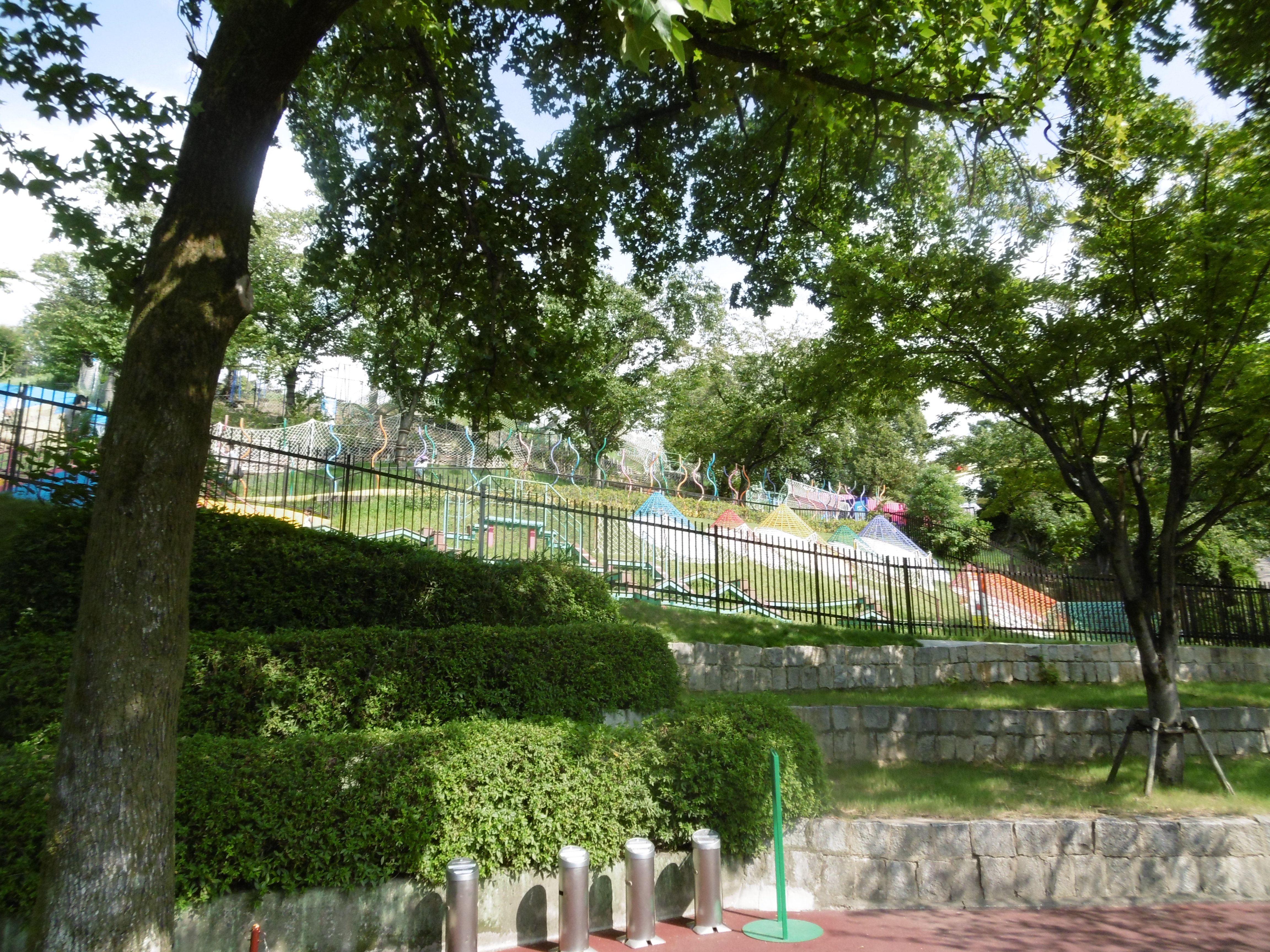 … bis zur Station Hirakata-koen. Einmal über den Bahnübergang, nach wenigen Metern an der großen Kreuzung rechts abbiegen und schon ist ein Freizeitpark zu sehen.