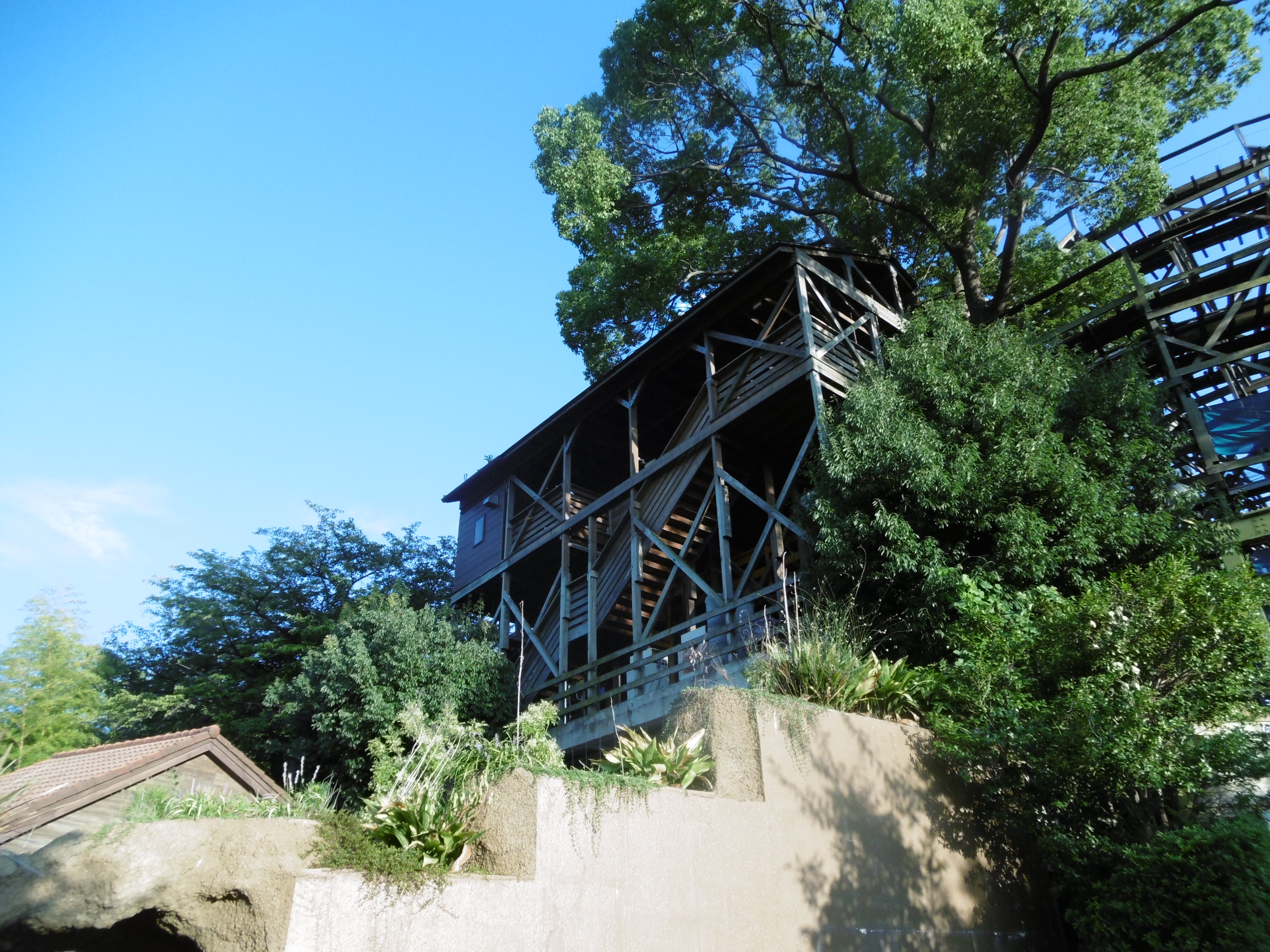Einmal den Berg hinauf biegen wir vor der hölzernen Hütte der Feen nach links ab und erreichen einen kleinen Zoobereich.