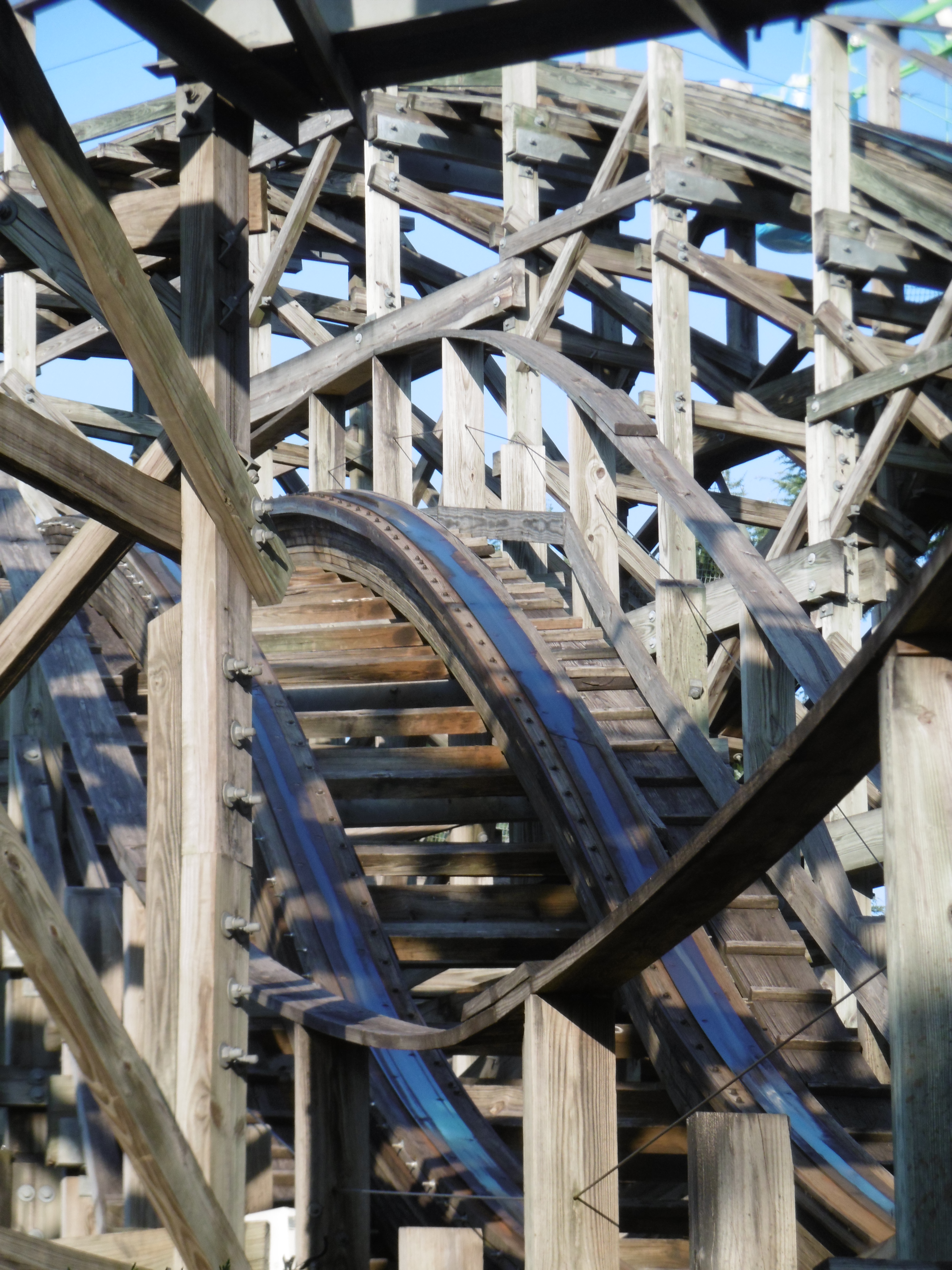 Meine zweite Bahn von Senyo nach dem tollen Boogie-woogie Space Coaster und mit einem besonderen Banking. Wie im linken Hintergrund zu sehen, ist die Backbone waagerecht und das eigentliche Banking wird erst durch eine Verlängerung der äußeren Verbindung hergestellt.