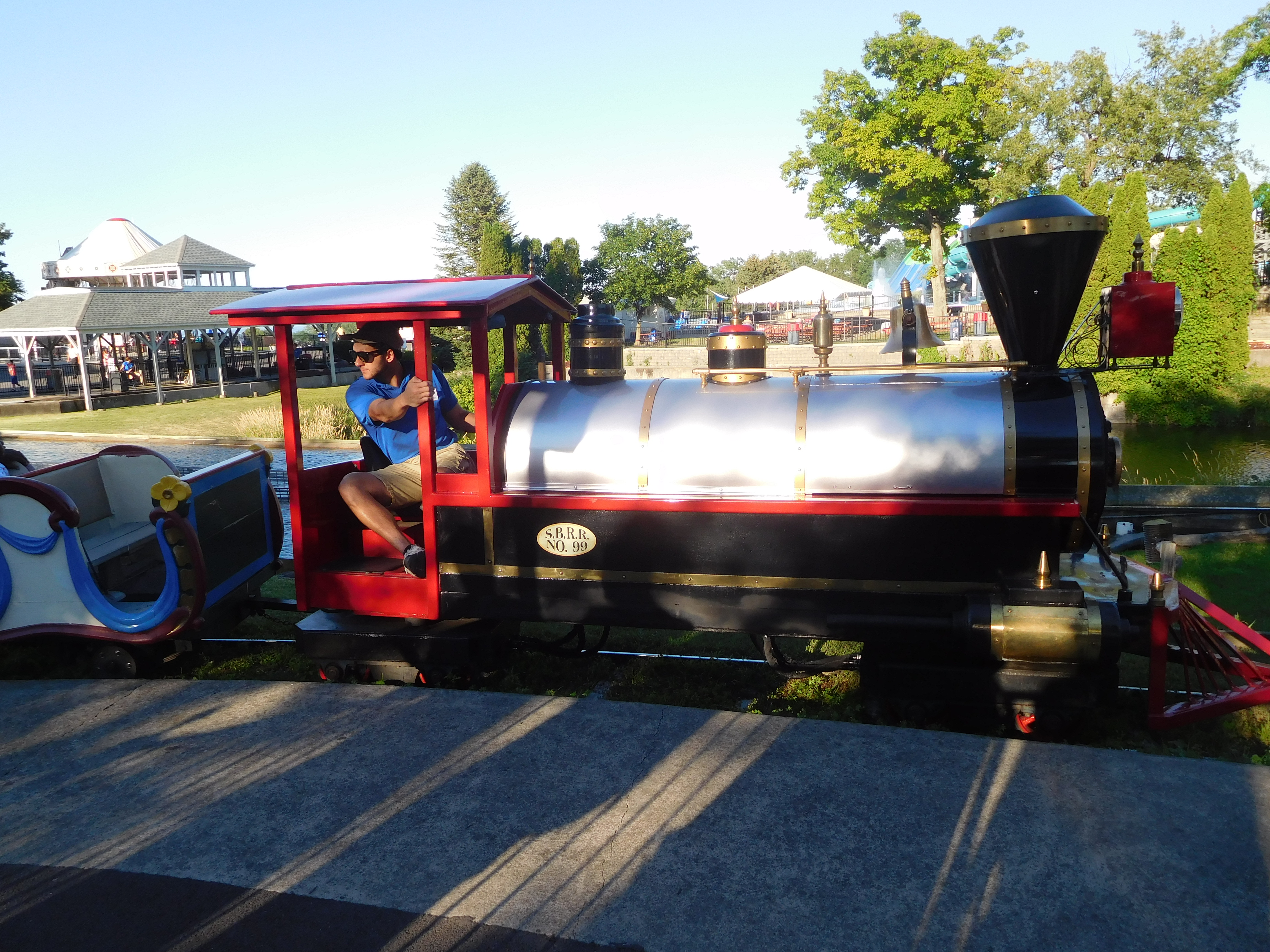 Wobei ein gewisses Vorurteil dann doch da war. Auf dem Weg zum Park hatte Dirk natürlich wie gewohnt ein paar Worte über den Park verloren. Auf Anfrage von Dirk bezüglich Zusatzprogramm usw stellte sich der Park quer. Sie wollten auf keinen Fall, dass wir am Independence Day kommen, da dort große Besucherzahlen erwartet werden. An einem anderen Tag würde es gehen. Doch Dirk konnte das auch schlecht umplanen, da der Tourplan vollgepackt war. Da der Park uns aber partout nicht entgegenkommen wollte, probierte Dirk zumindest Gruppeneintrittspreise zu ergattern. Das klappte leider genauso wenig. Somit musste Dirk wohl oder übel für jeden normale Eintrittstickets kaufen. Diese haben allerdings satte 32 Dollar gekostet! Für so einen kleinen Park und gerade im Vergleich zum Conneaut Lake Park vormittags mit nur 10 Dollar eine ganz schöne Hausnummer.