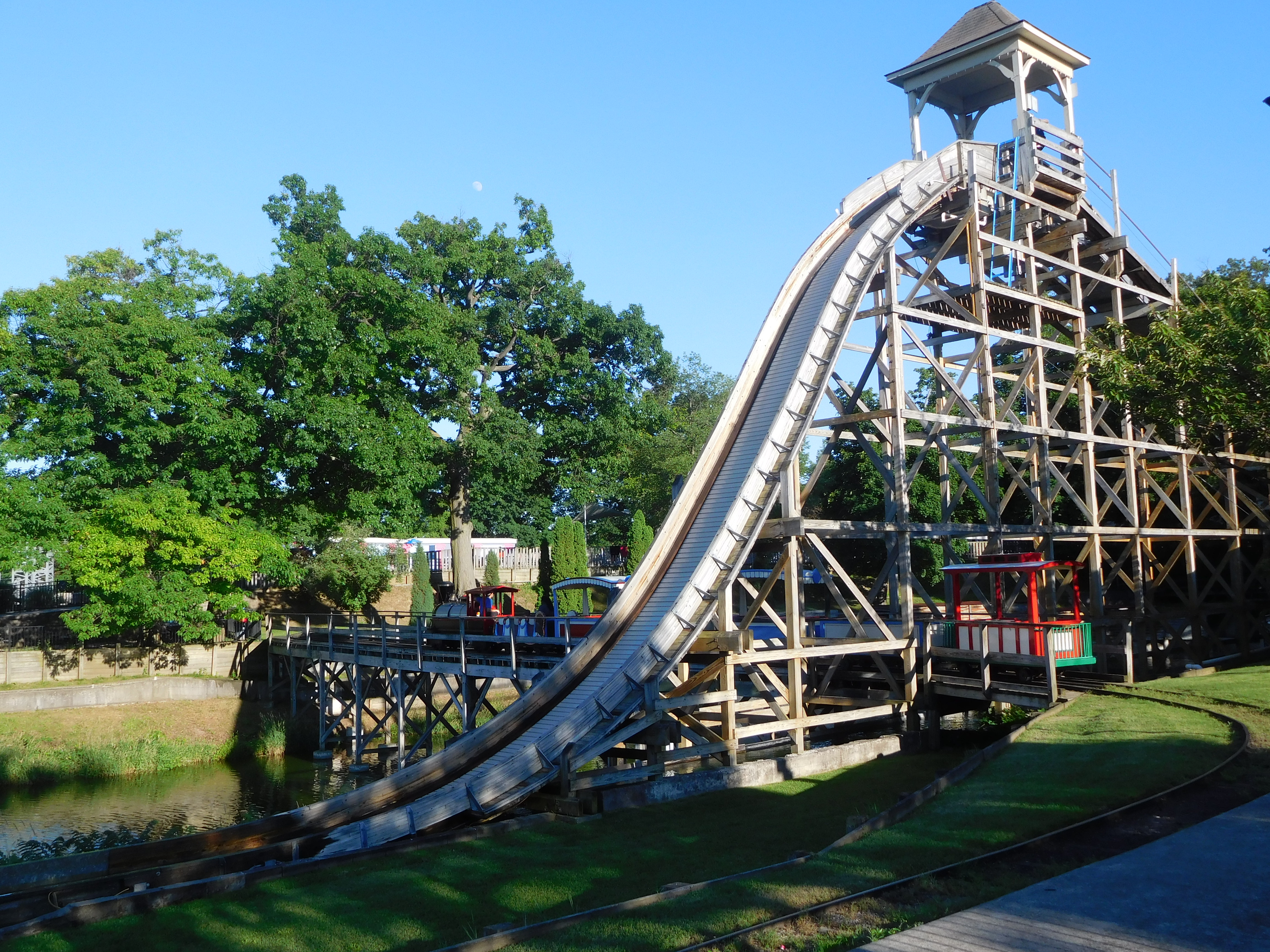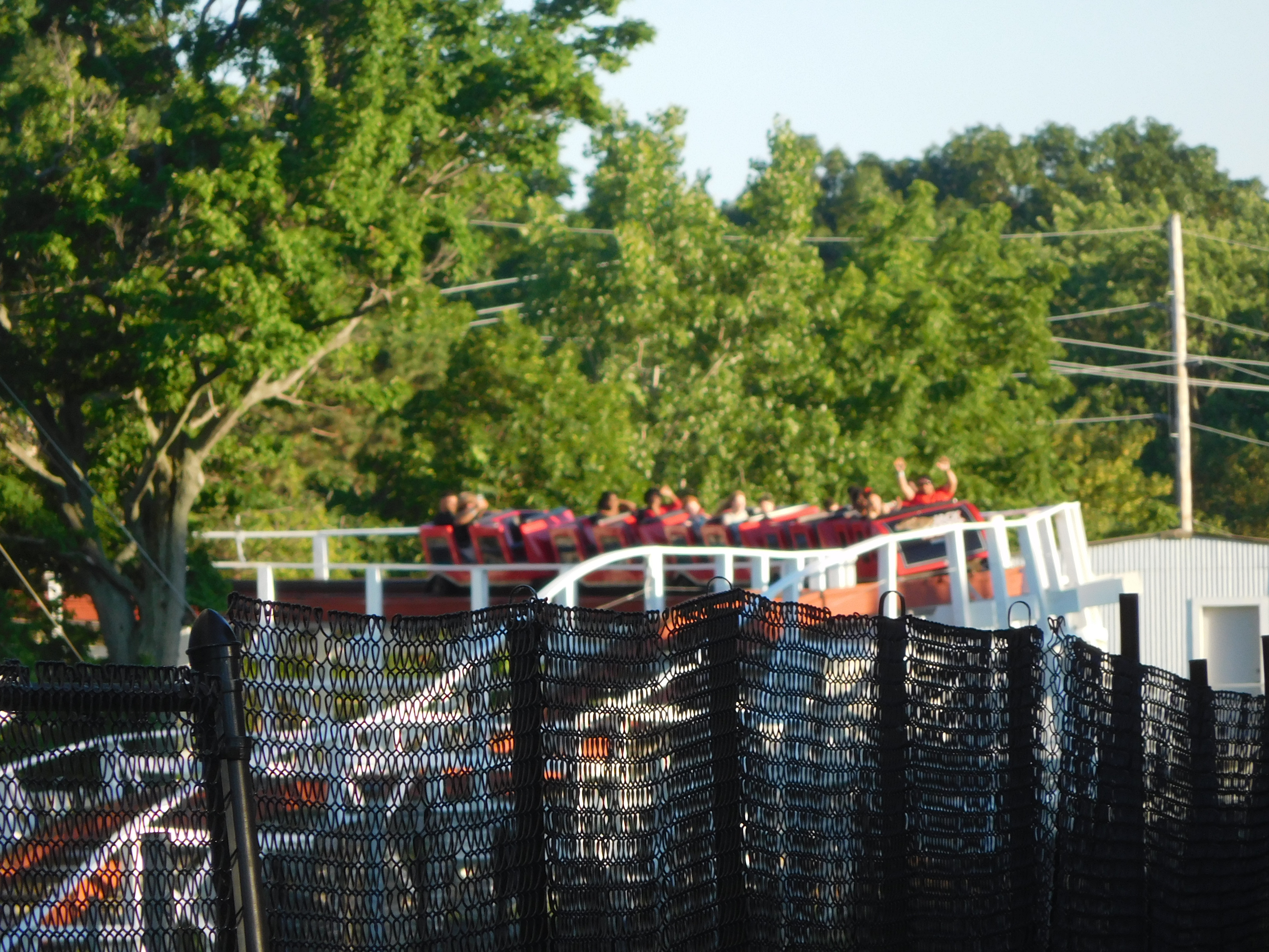Es handelt sich hier um einen Terrain Coaster, der etwas kleiner als Blue Streak am Vormittag ist.