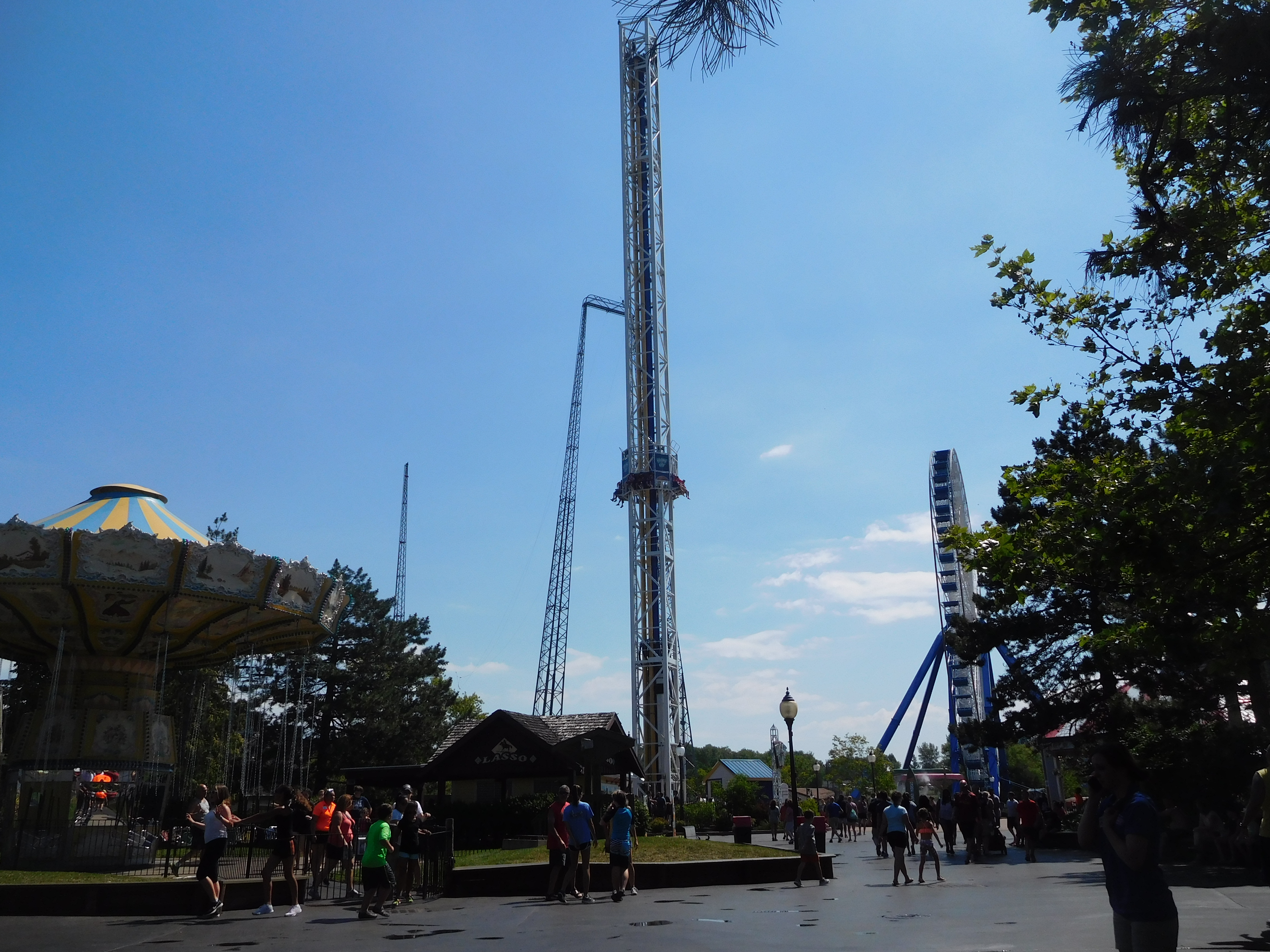Mit 56m hat der Turm eine ordentliche Höhe und somit gibt es auch hier einen schön spaßigen Abschuss nach oben mit Schwebemoment und schöner Aussicht.