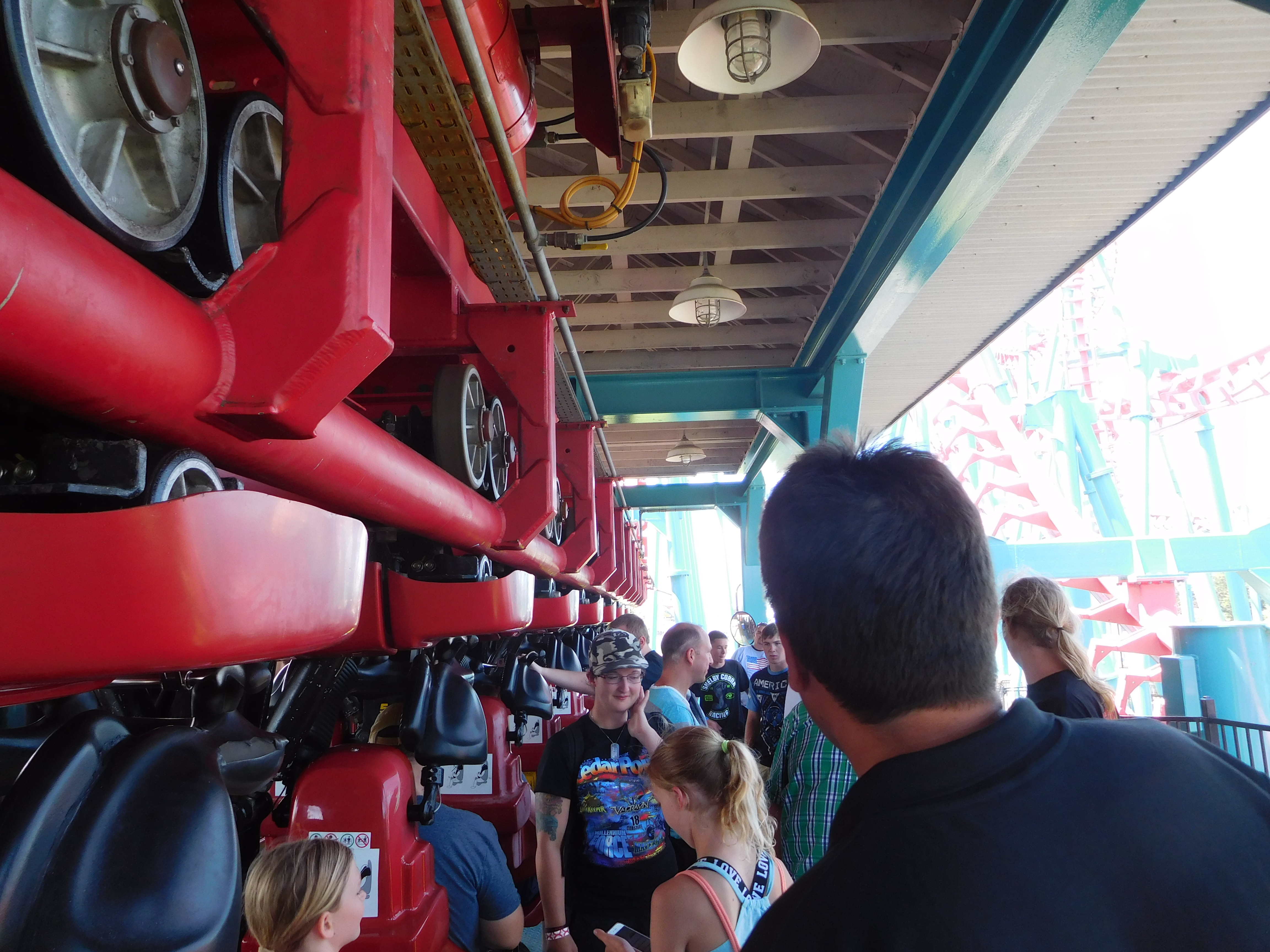 Mittlerweile ein wenig eingearbeitet fertigten die Ride Operator nun recht ordentlich ab. Solange es keine Probleme gibt, läuft das auch einigermaßen dort. Einmal hatte sich jemand im Zug übergeben, doch das wurde relativ schnell beseitigt. Der Zug wurde nochmal auf eine Leerfahrt geschickt und dann konnte es auch wieder weiter gehen.