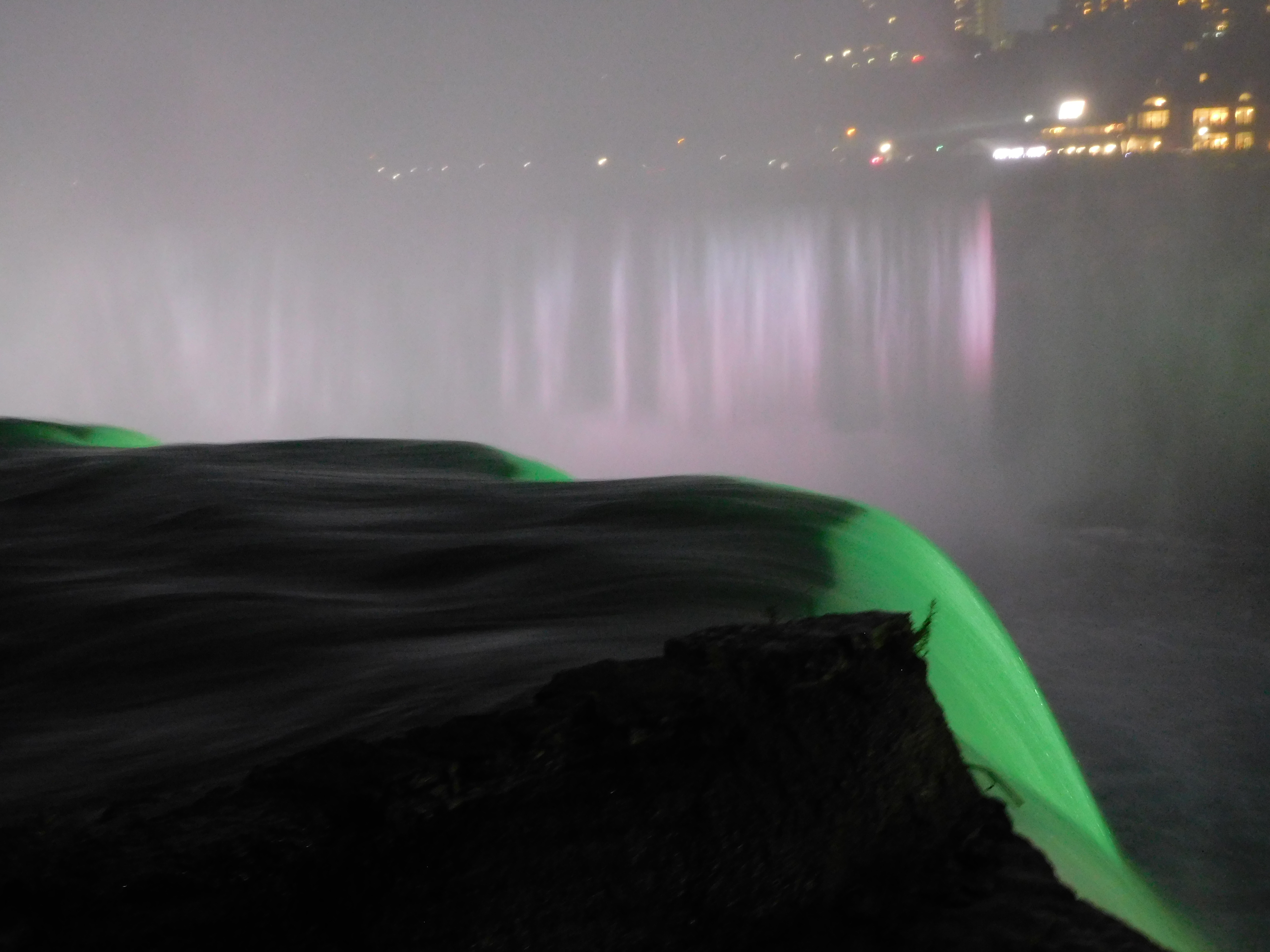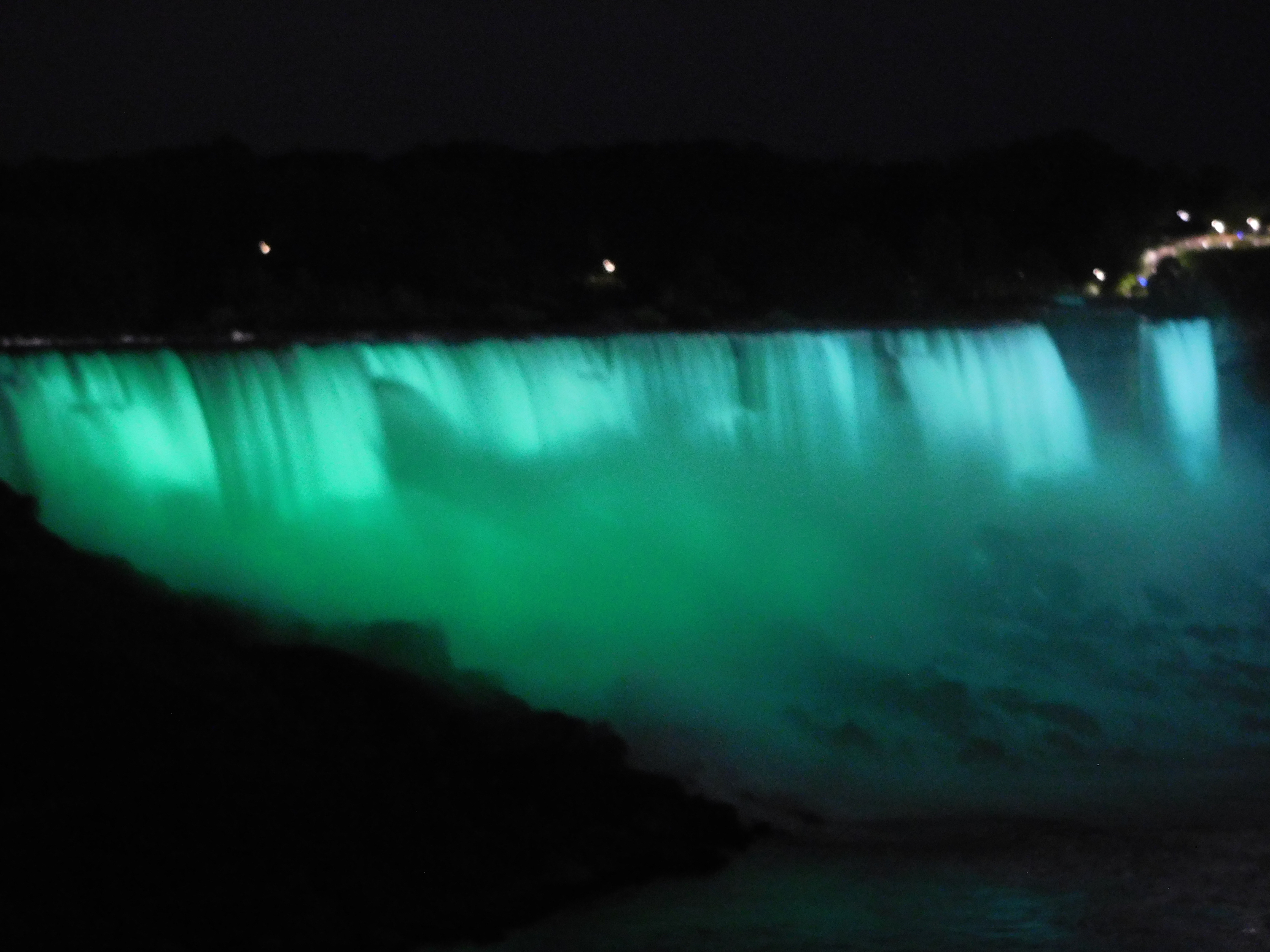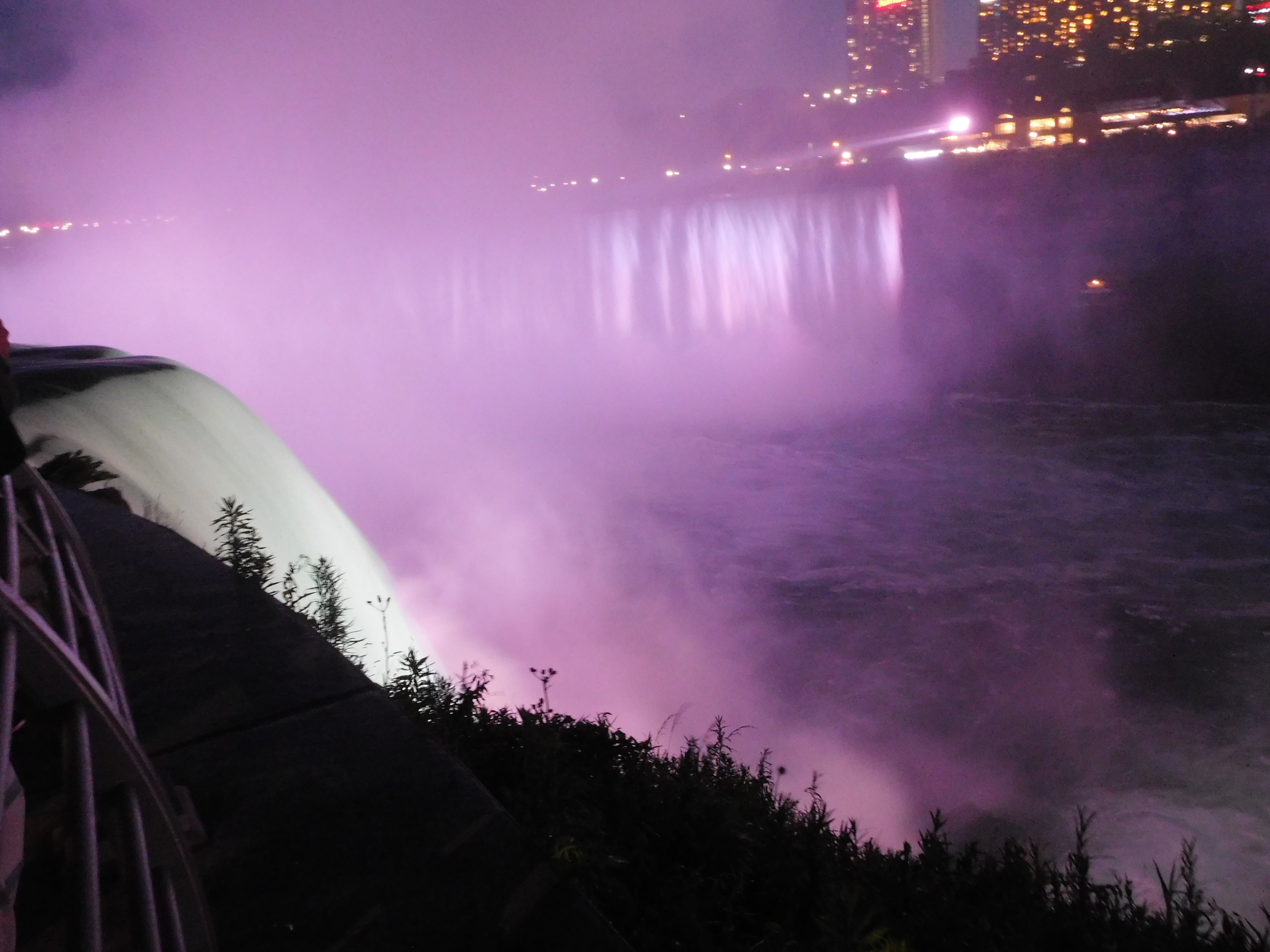 Nach der Grenzüberfahrt war das Hotel nur noch wenige 100m entfernt. Ein Hotel direkt bei den Fällen hätte vermutlich ein Vermögen gekostet, wir waren im Travellodge Hotel vielleicht einen knappen Kilometer davon entfernt. Aus diesem Grund schloss ich mich einer großen Gruppe an, die sich nochmal abends auf den Weg zu den Fällen machte. Wenn man schon mal hier ist, möchte man das auch nutzen.