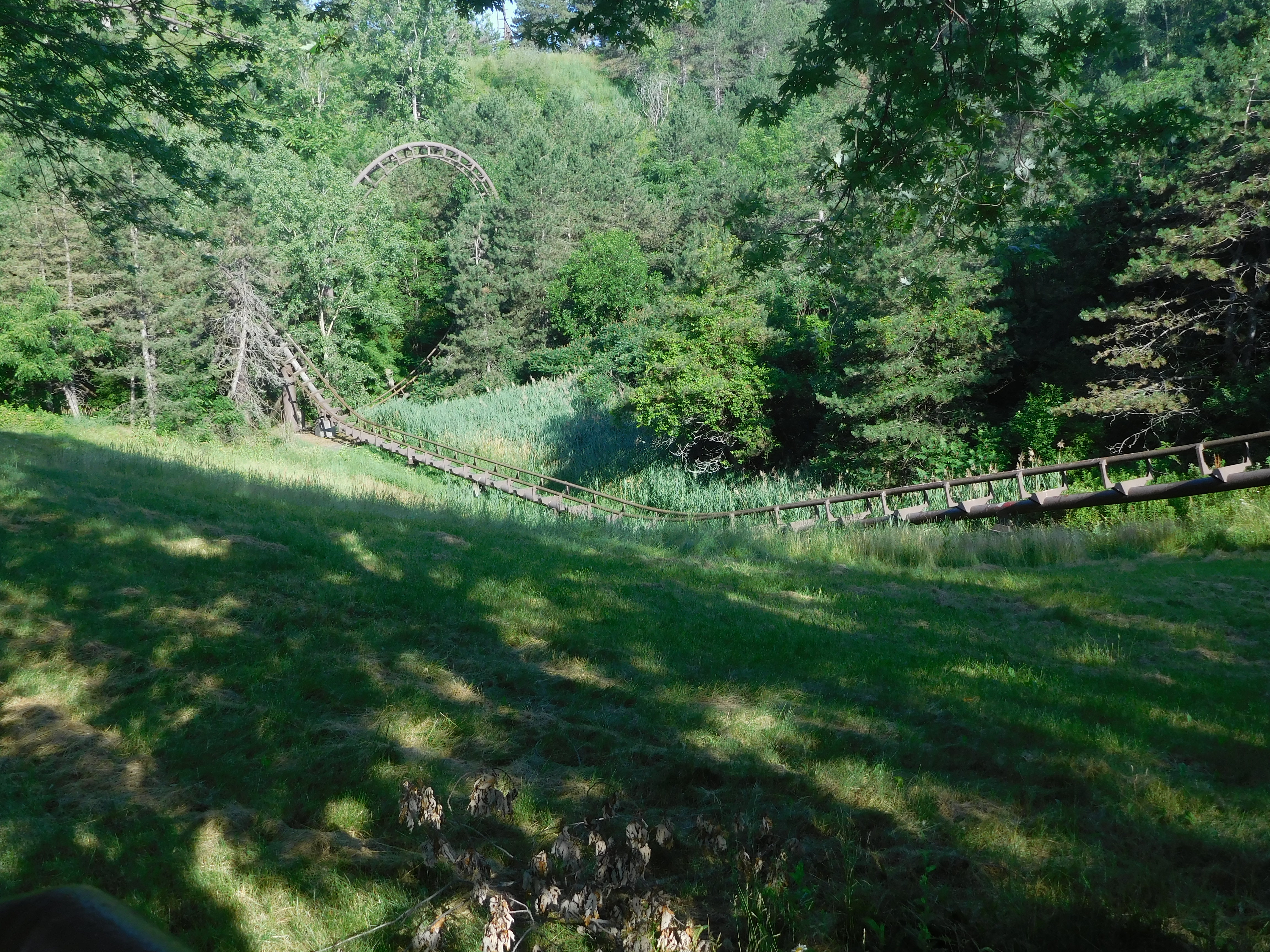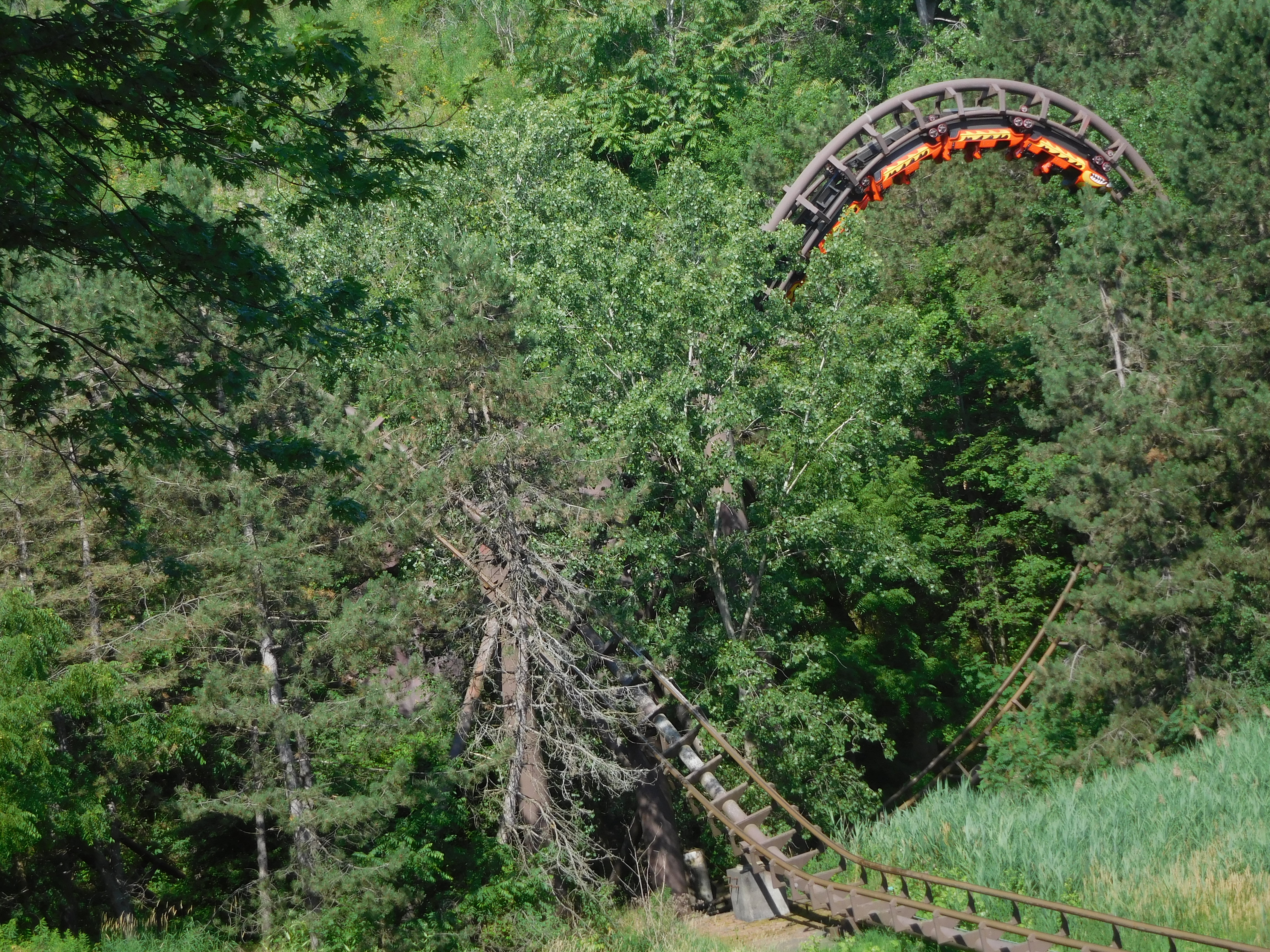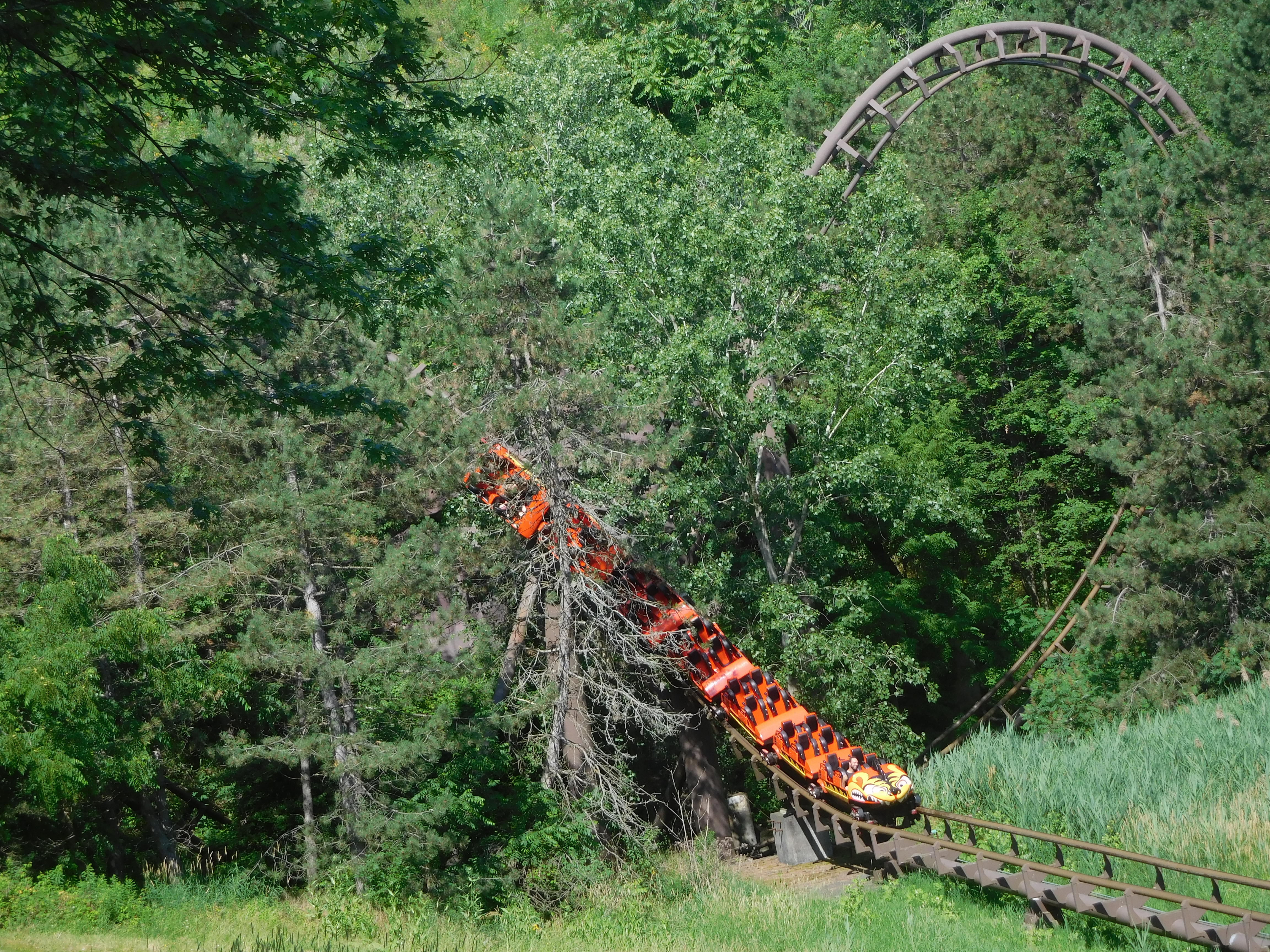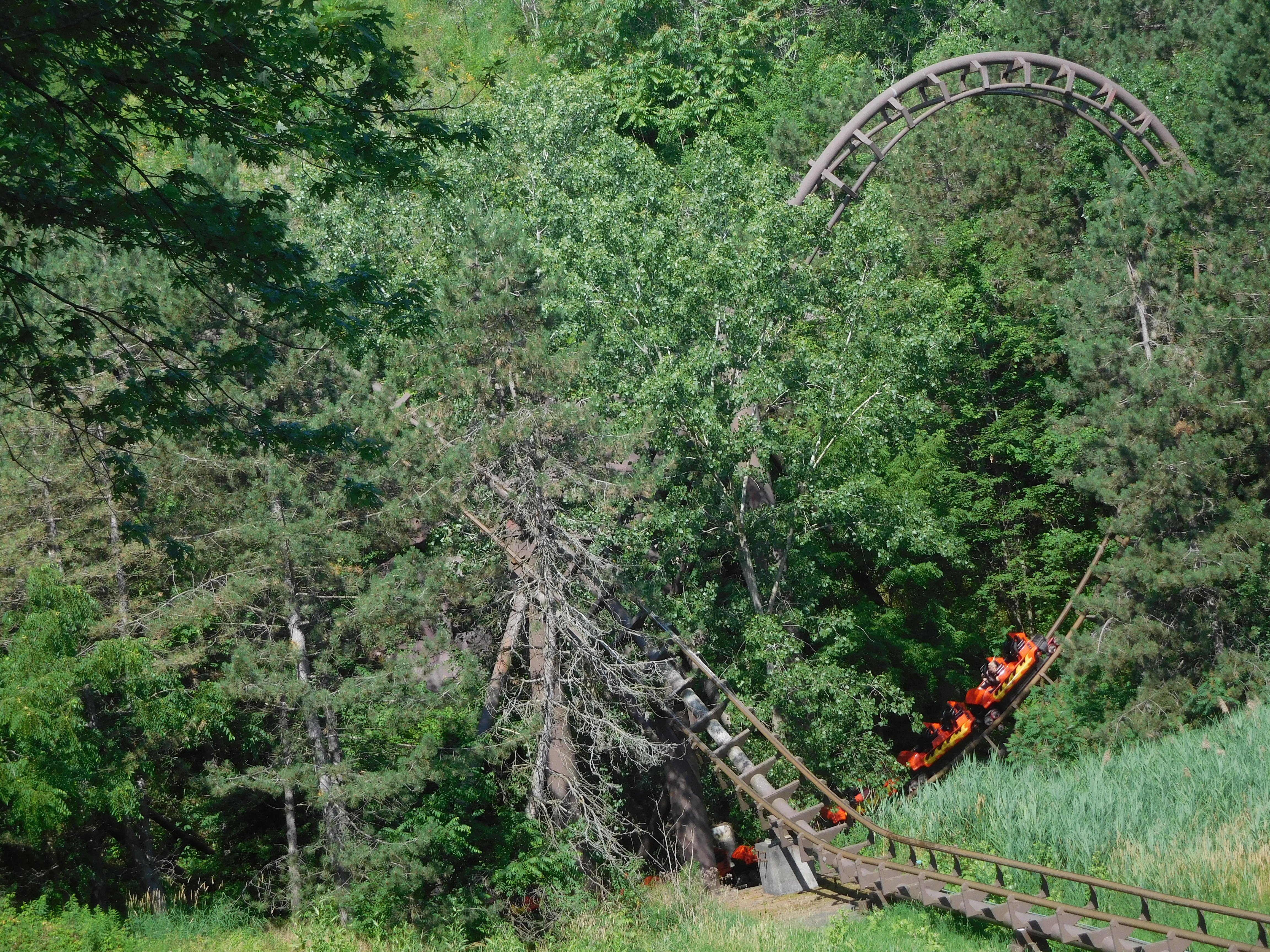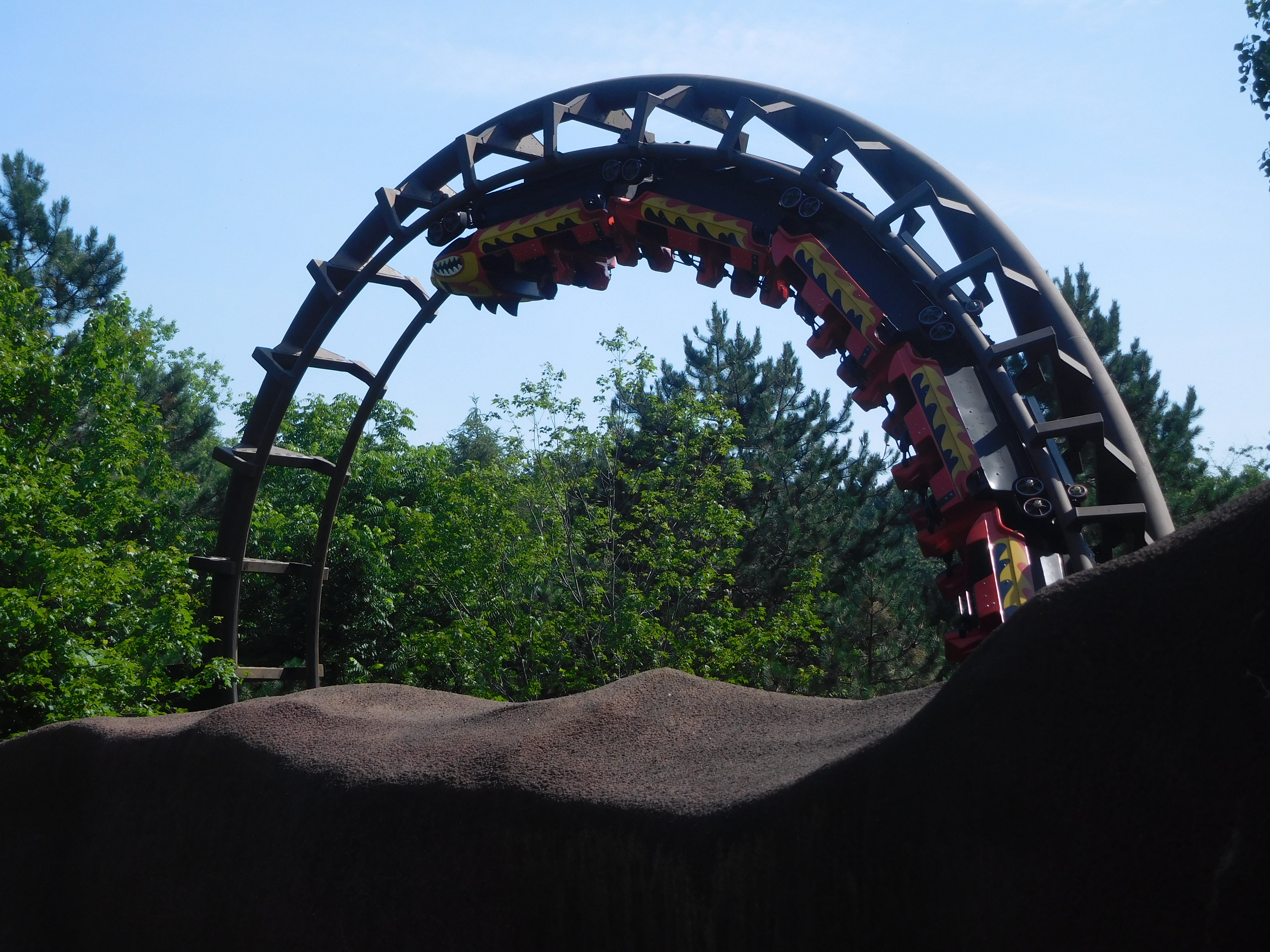 Looping Coaster von Arrow mit Terrain-Layout. Dabei werden bis zu 57m Höhe erreicht und das auf einer Strecke von knapp 1,7km. Ziemlich beeindruckende Rahmendaten, wobei durch mehrere Bremsungen nur maximal 80 km/h erreicht werden. Da es ein Terrain Coaster ist, gibt es eine super Aussicht, allerdings sind die Schienen nie wirklich weit vom Boden entfernt, trotz der Höhe.