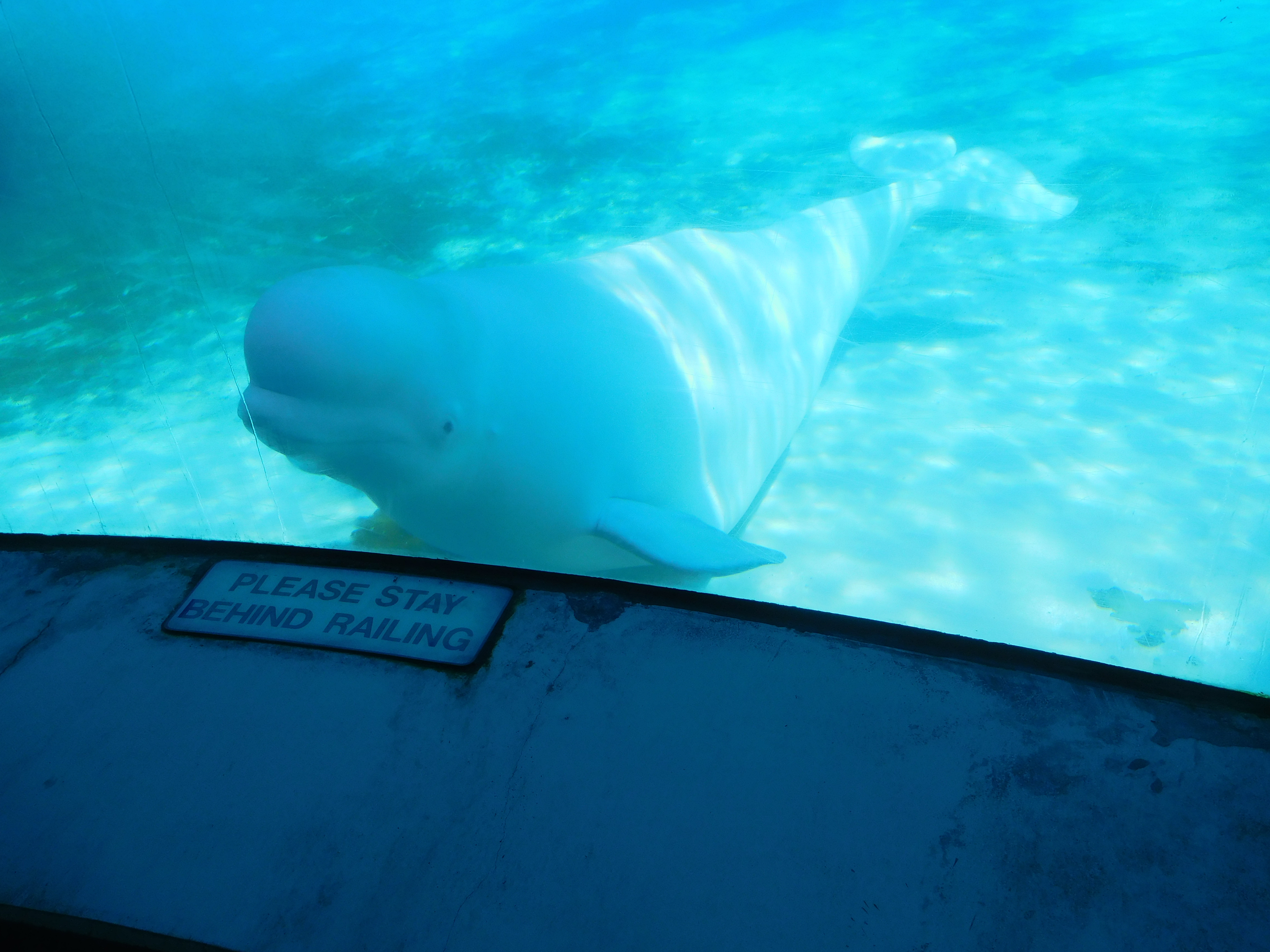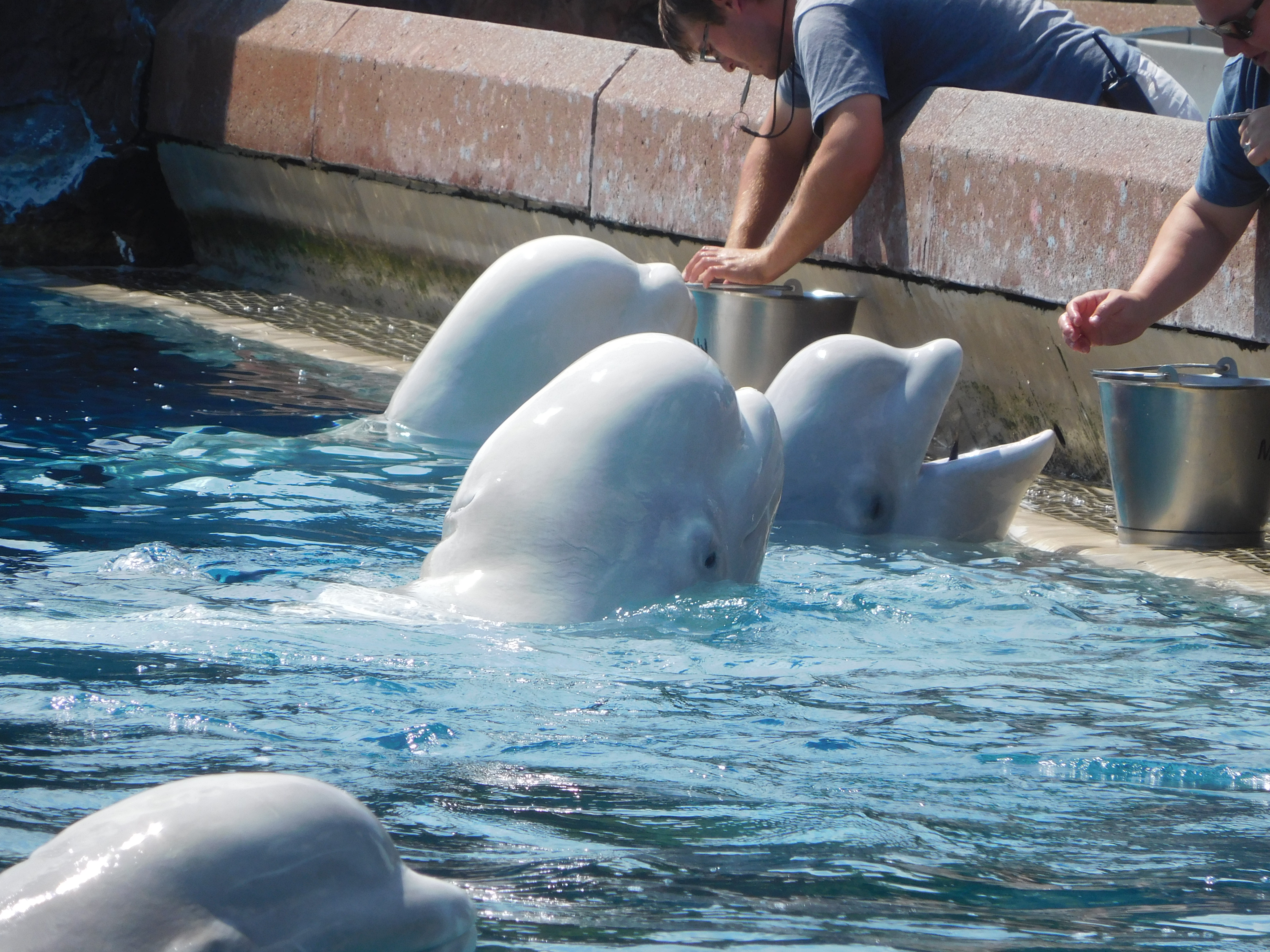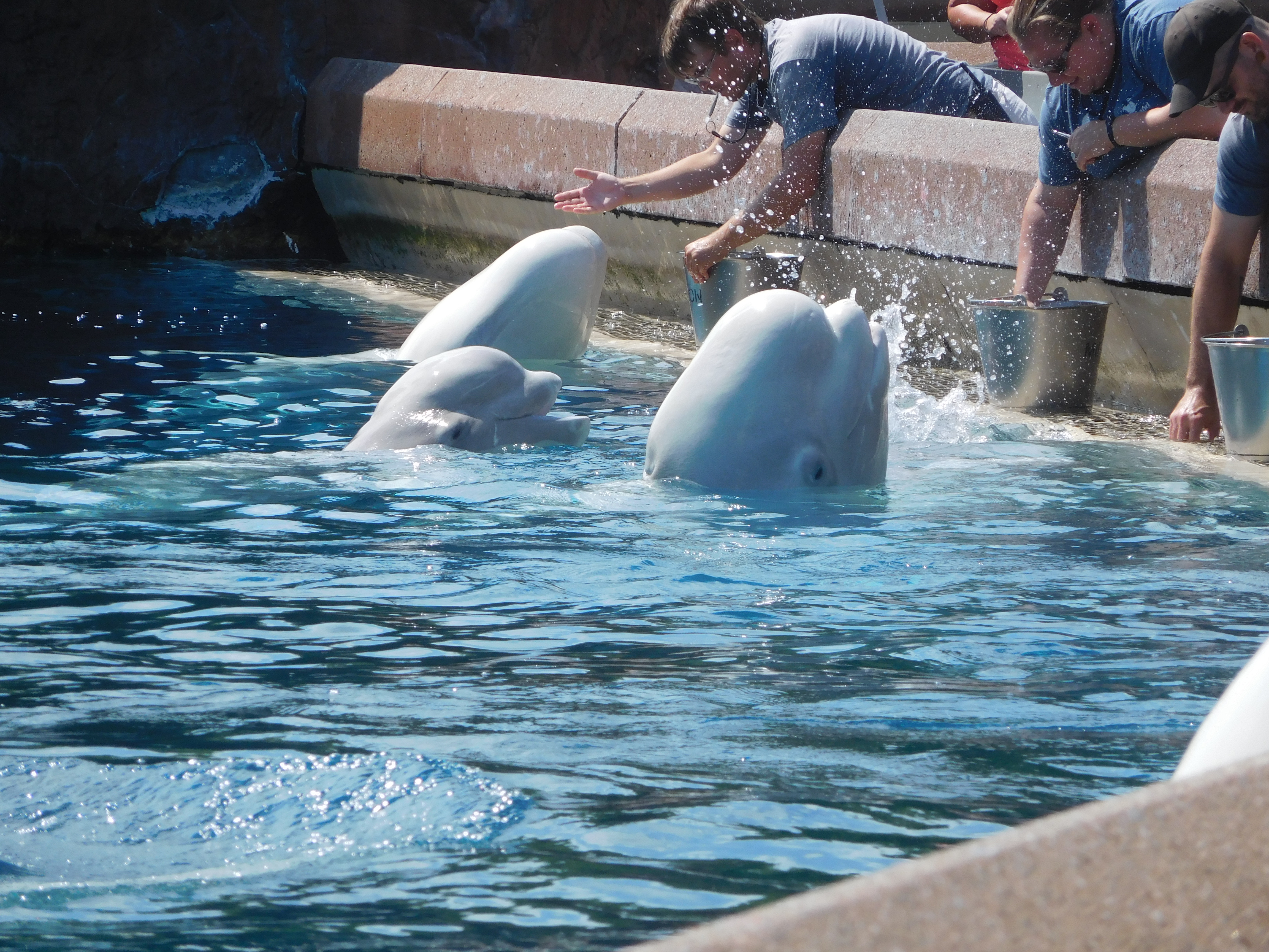 Auf der anderen Seite konnten wir draußen dann noch eine Fütterung der Beluga-Wale miterleben.